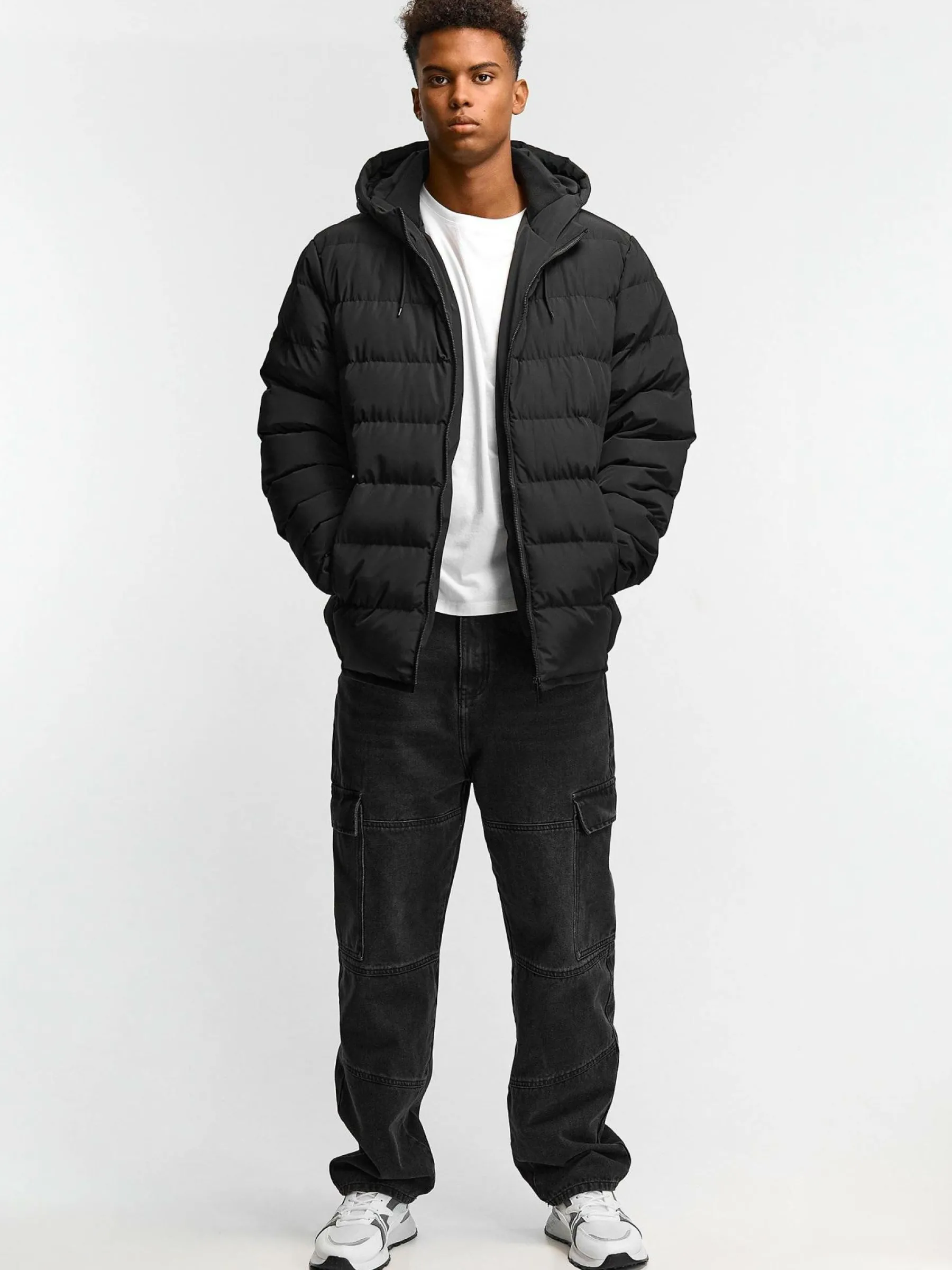 Kolor: czarnyKrój: pikowaneTyp: kurtka zimowaRekaw: długi rękawDługość: krótkiPattern style: pojedynczy kolorDeta…