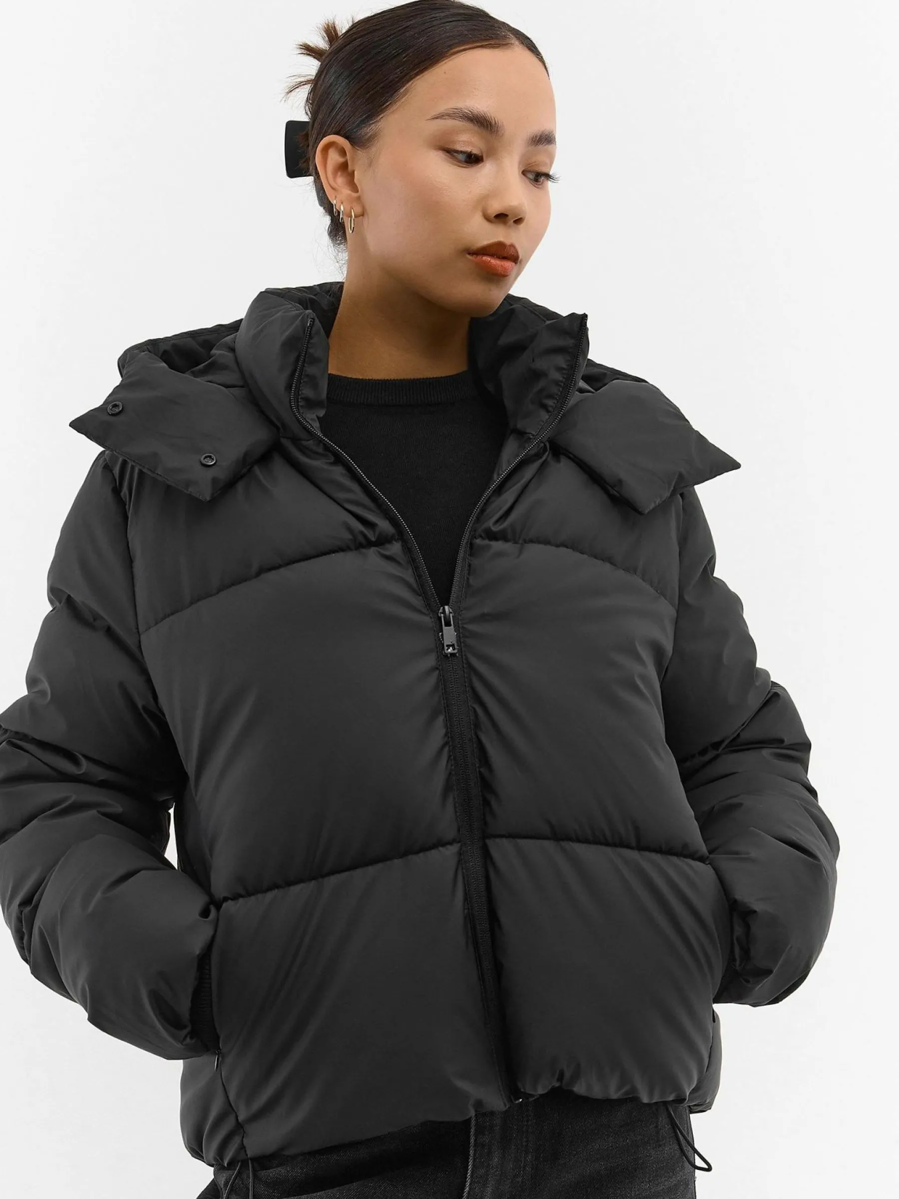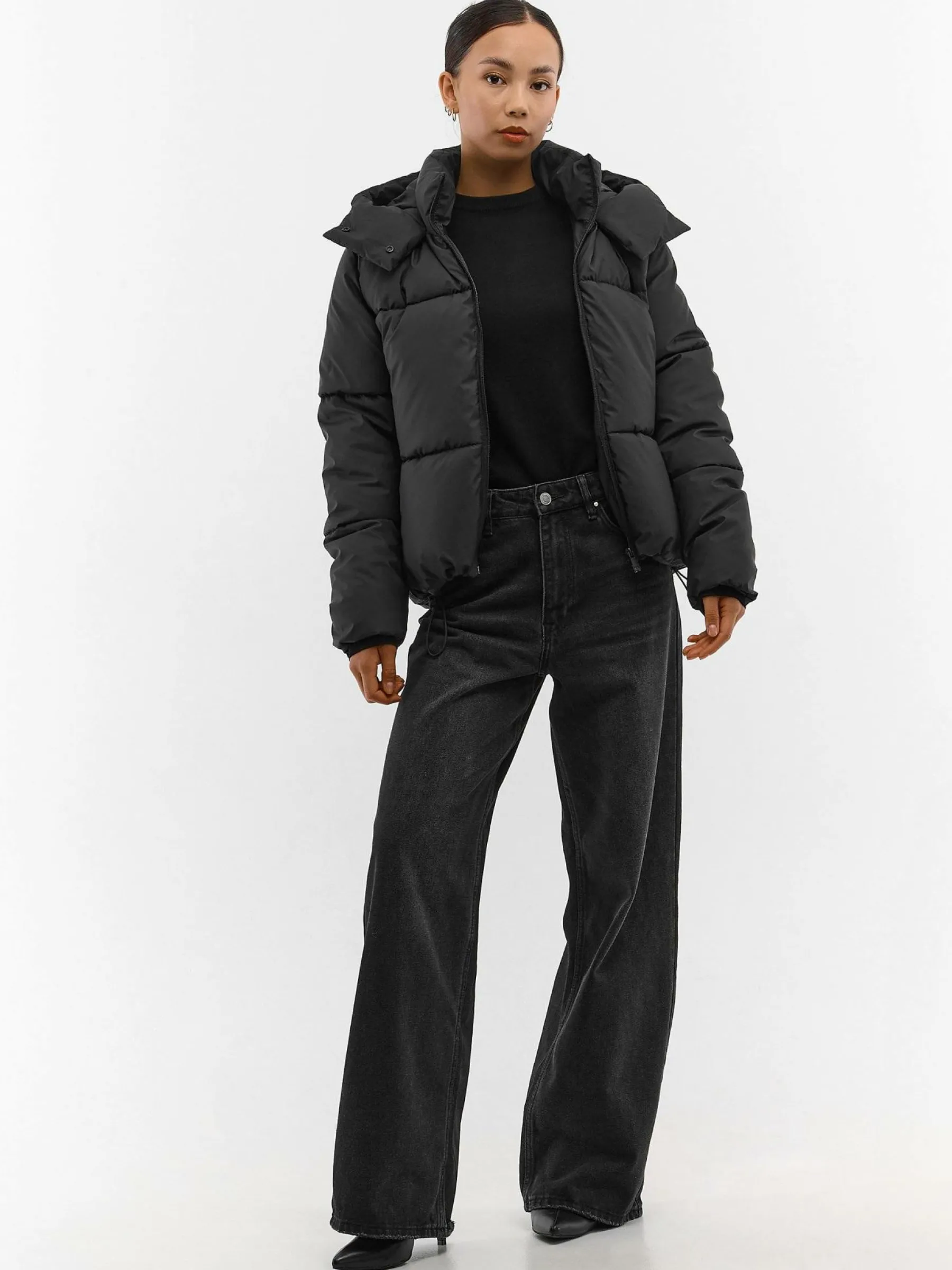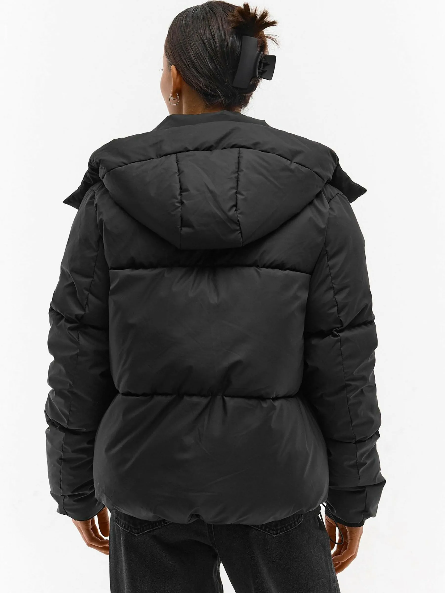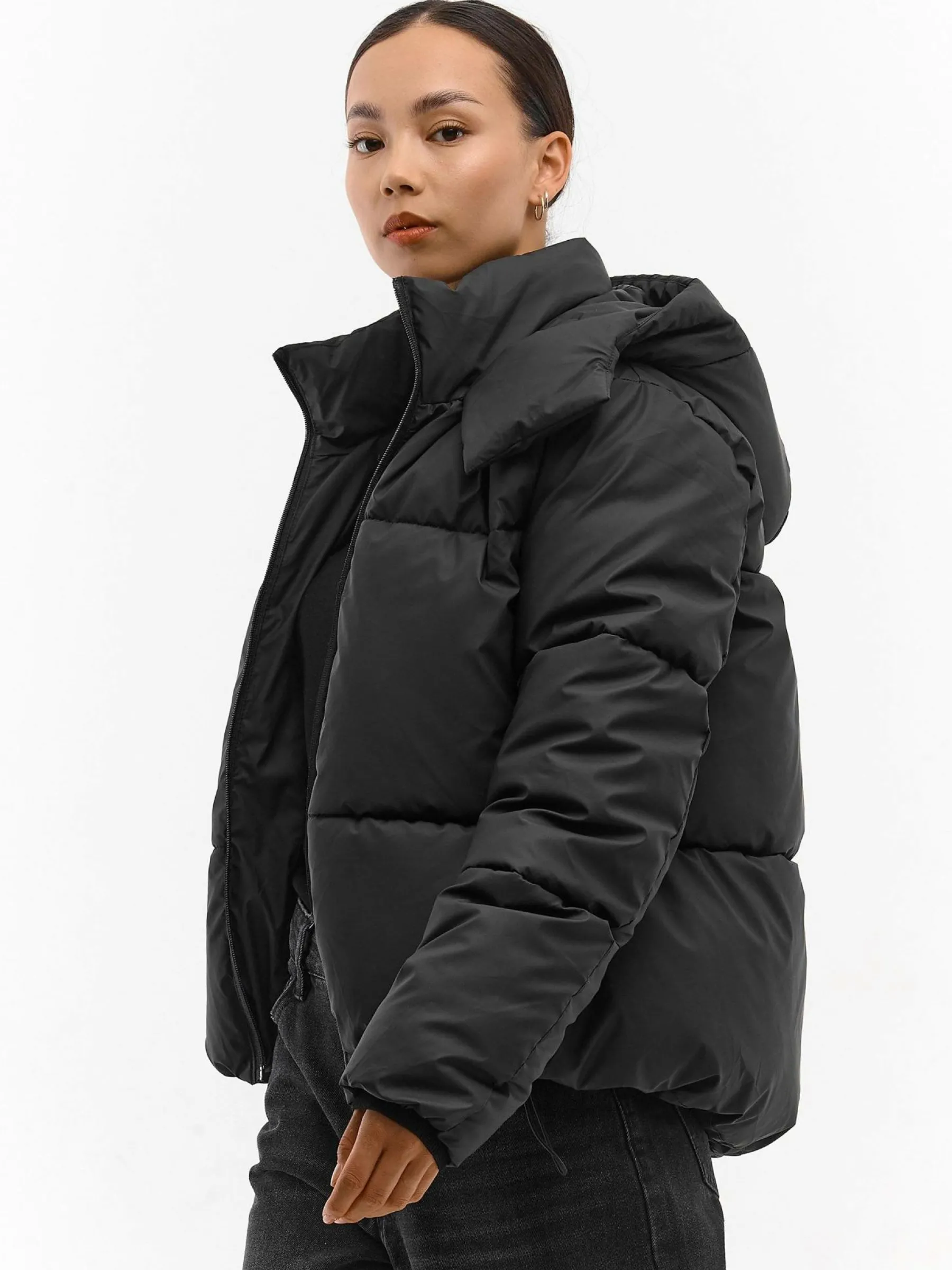 Kolor: czarnyKrój: pikowaneTyp: kurtka zimowaRekaw: długi rękawDługość: krótkiPattern style: pojedynczy kolorDeta…