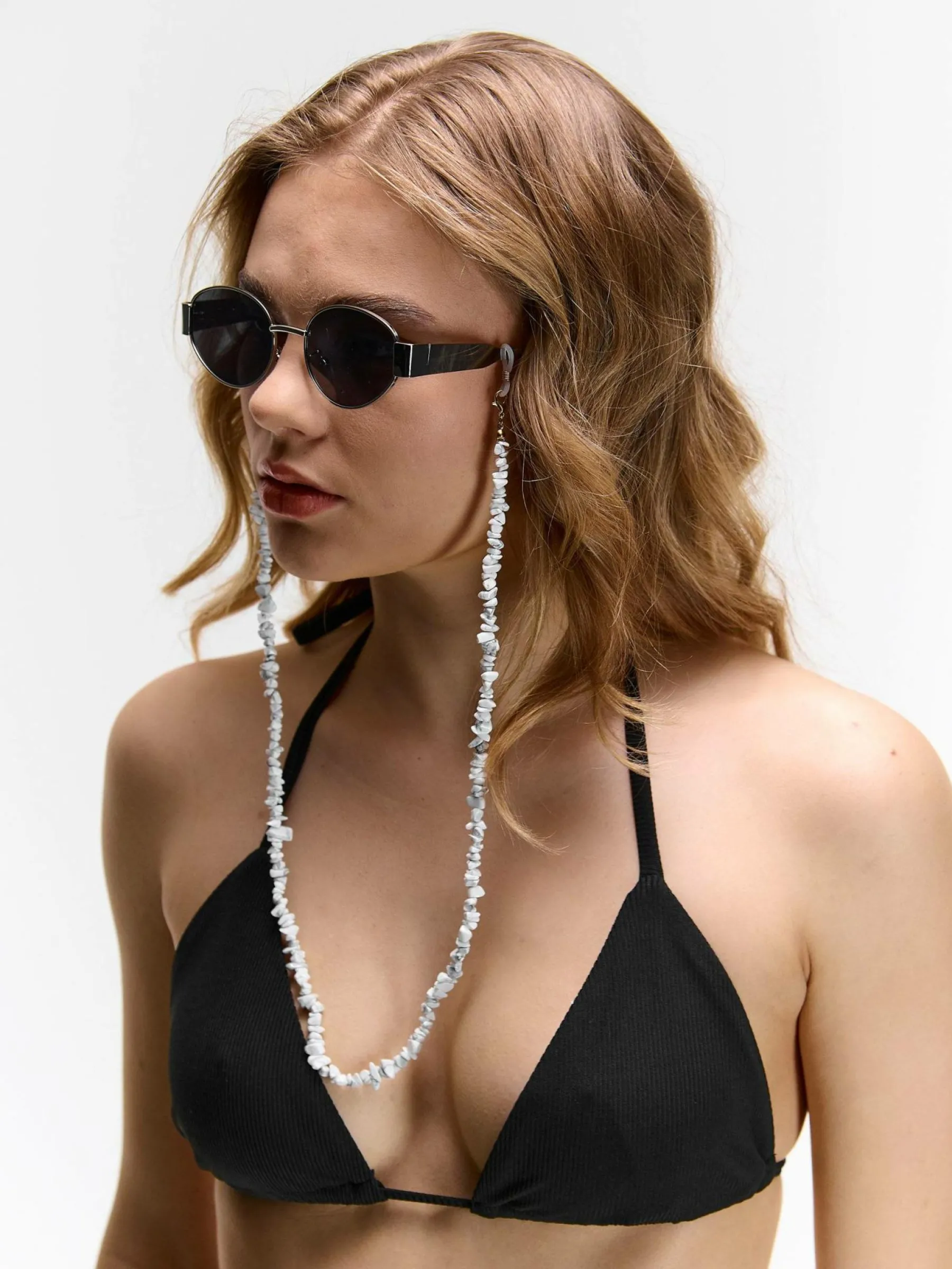 Kolor: białyTyp: łańcuszek do okularówPattern style: pojedynczy kolorDetal: z kamieniamiPłeć: kobietyOkazja: odzie…