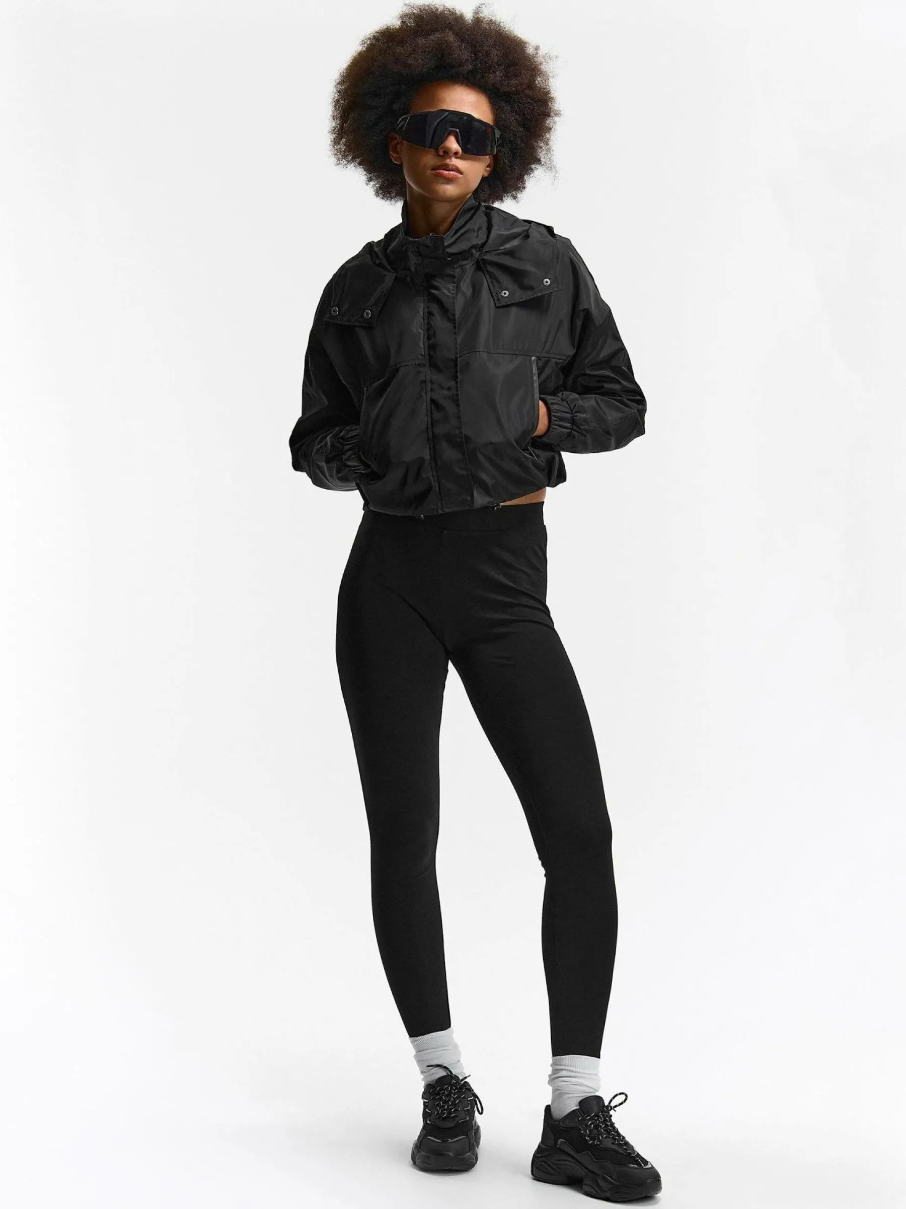 Zalecamy zakup rozmiaru większego niż zazwyczaj nosisz.Kolor: czarnyKrój: slim, z wysokim stanemTyp: legginsyDługoś…