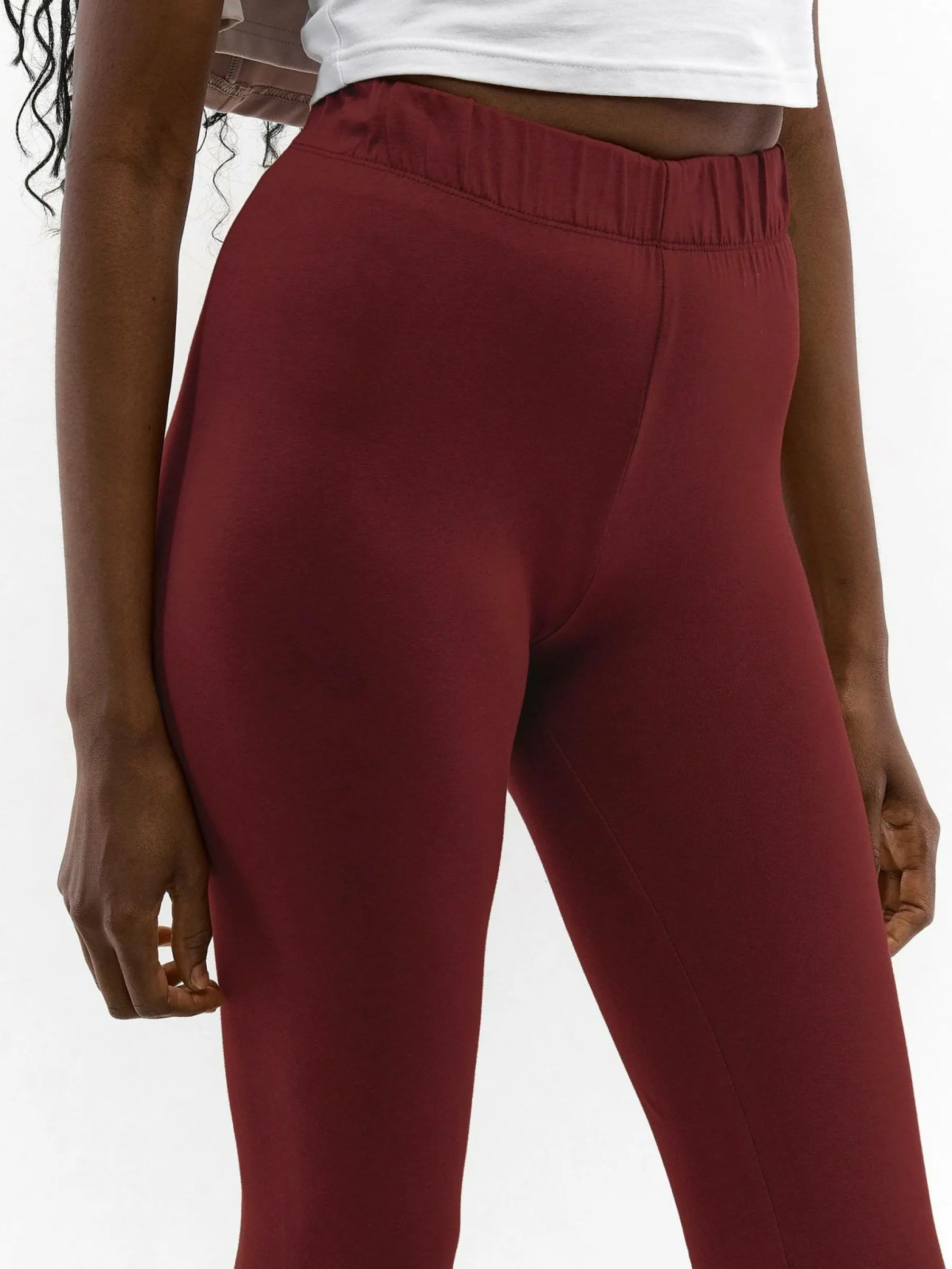 Kolor: burgundyKrój: slimTyp: legginsyDługość: dlugiePattern style: pojedynczy kolorDetal: z elastyczną opaskąMate…