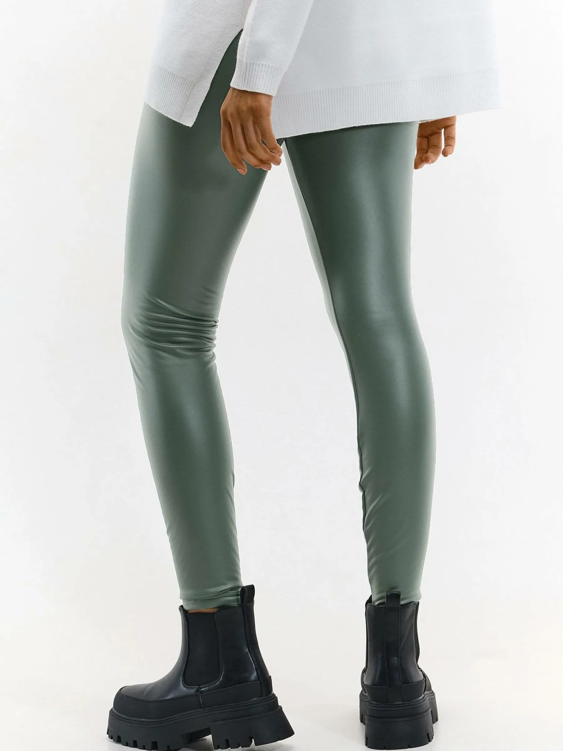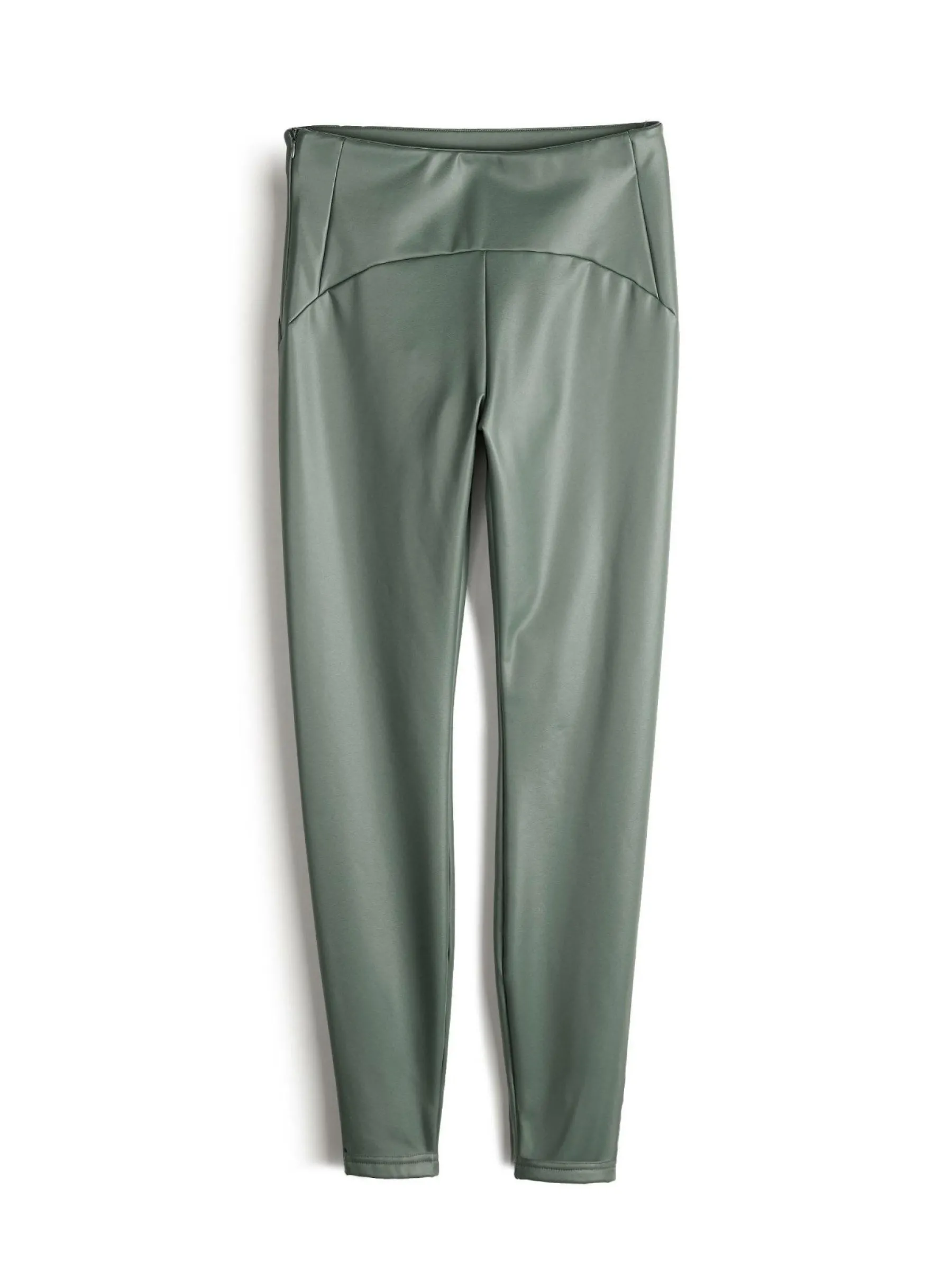 Kolor: zielonyKrój: slim, z wysokim stanemTyp: legginsyDługość: dlugiePattern style: pojedynczy kolorDetal: na zamek…