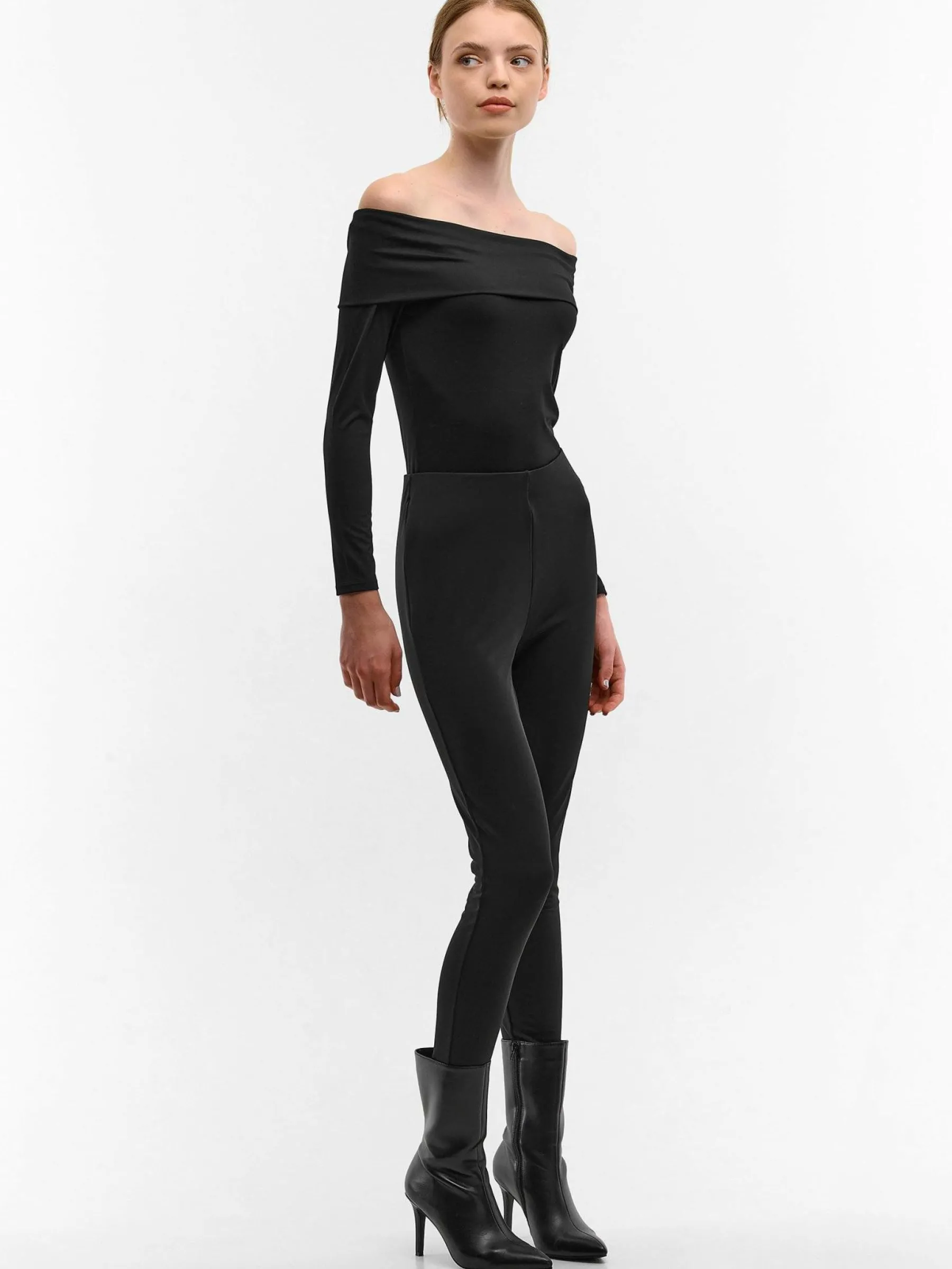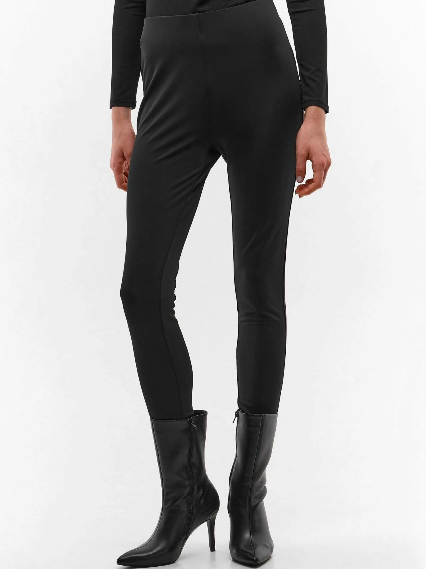 Kolor: czarnyKrój: slimTyp: legginsyDługość: dlugiePattern style: pojedynczy kolorDetal: z elastyczną opaskąMateri…