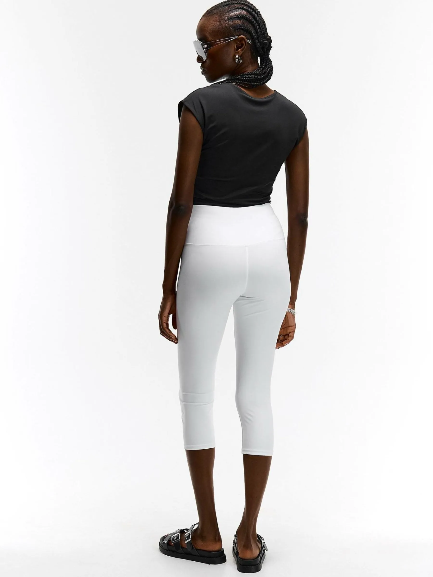 Kolor: białyKrój: slim, z wysokim stanemTyp: legginsyDługość: trzy czwartePattern style: pojedynczy kolorDetal: z e…