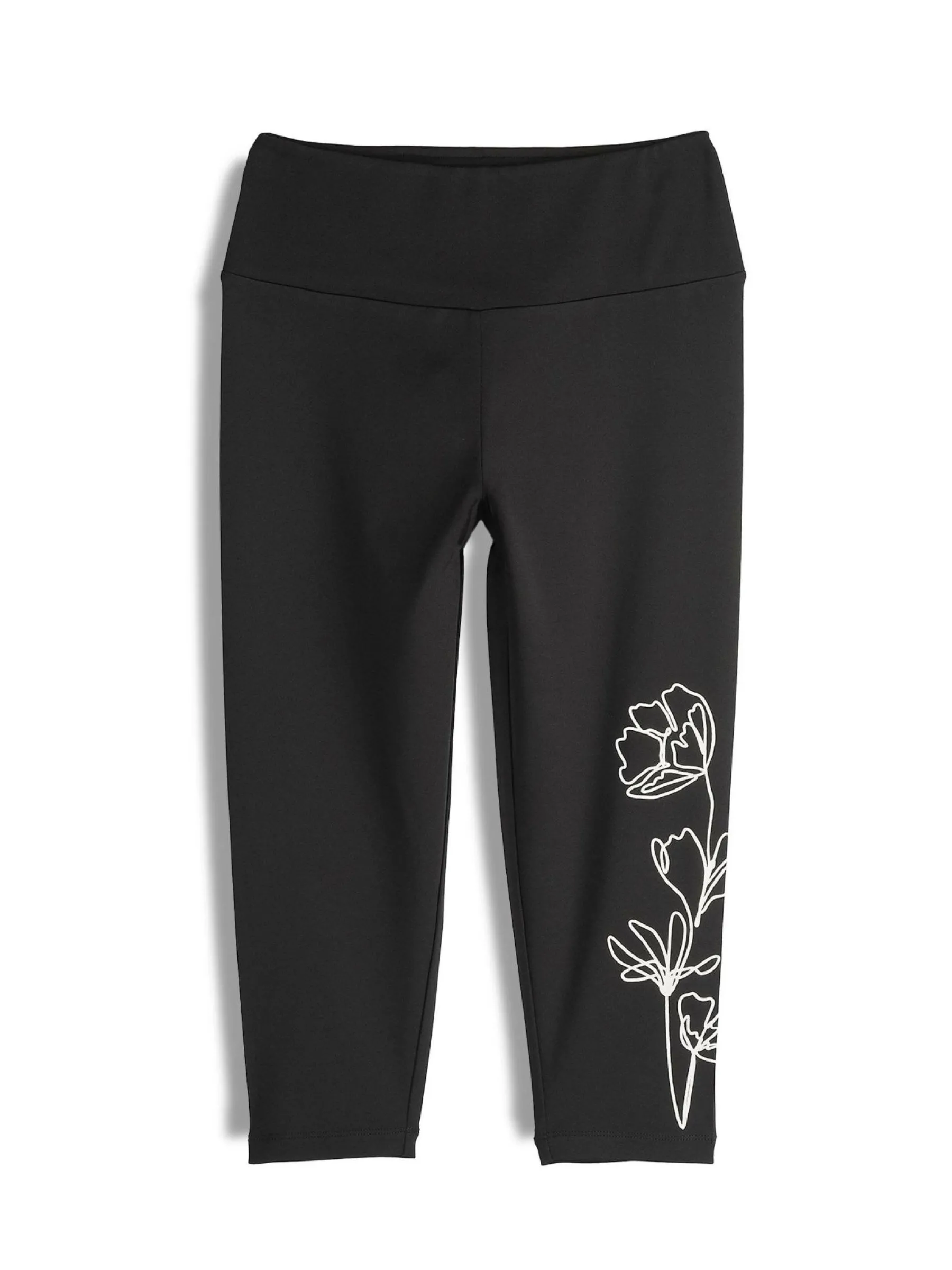 Kolor: czarnyKrój: slim, z wysokim stanemTyp: legginsyDługość: trzy czwartePattern style: z nadrukiemDetal: z elasty…