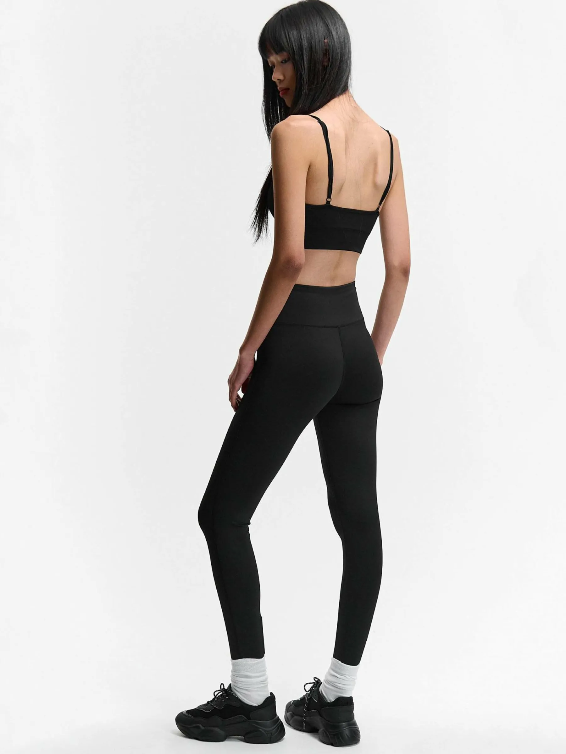 Kolor: czarnyKrój: slim, z wysokim stanemTyp: legginsyDługość: dlugiePattern style: pojedynczy kolorDetal: z elastyc…