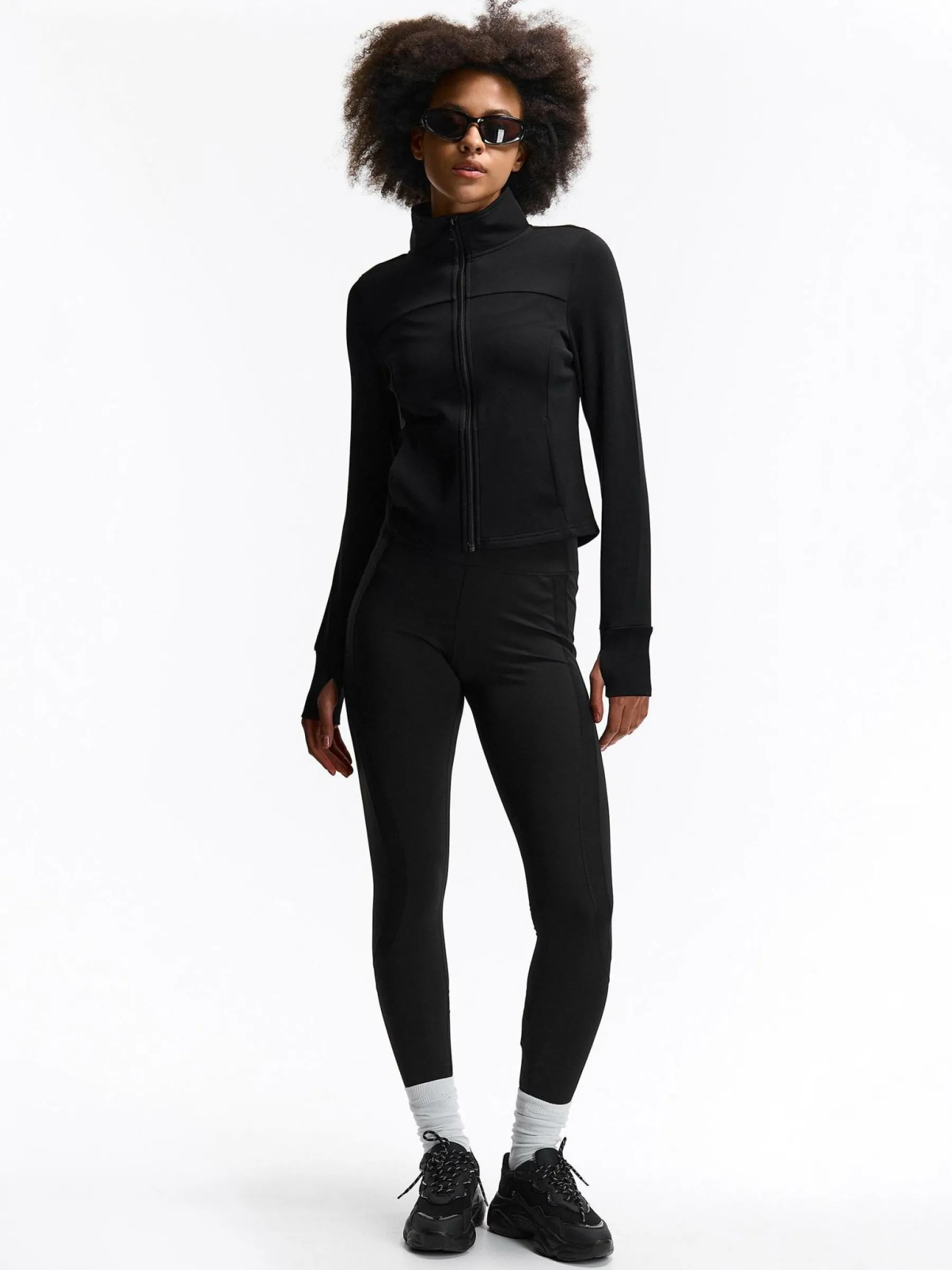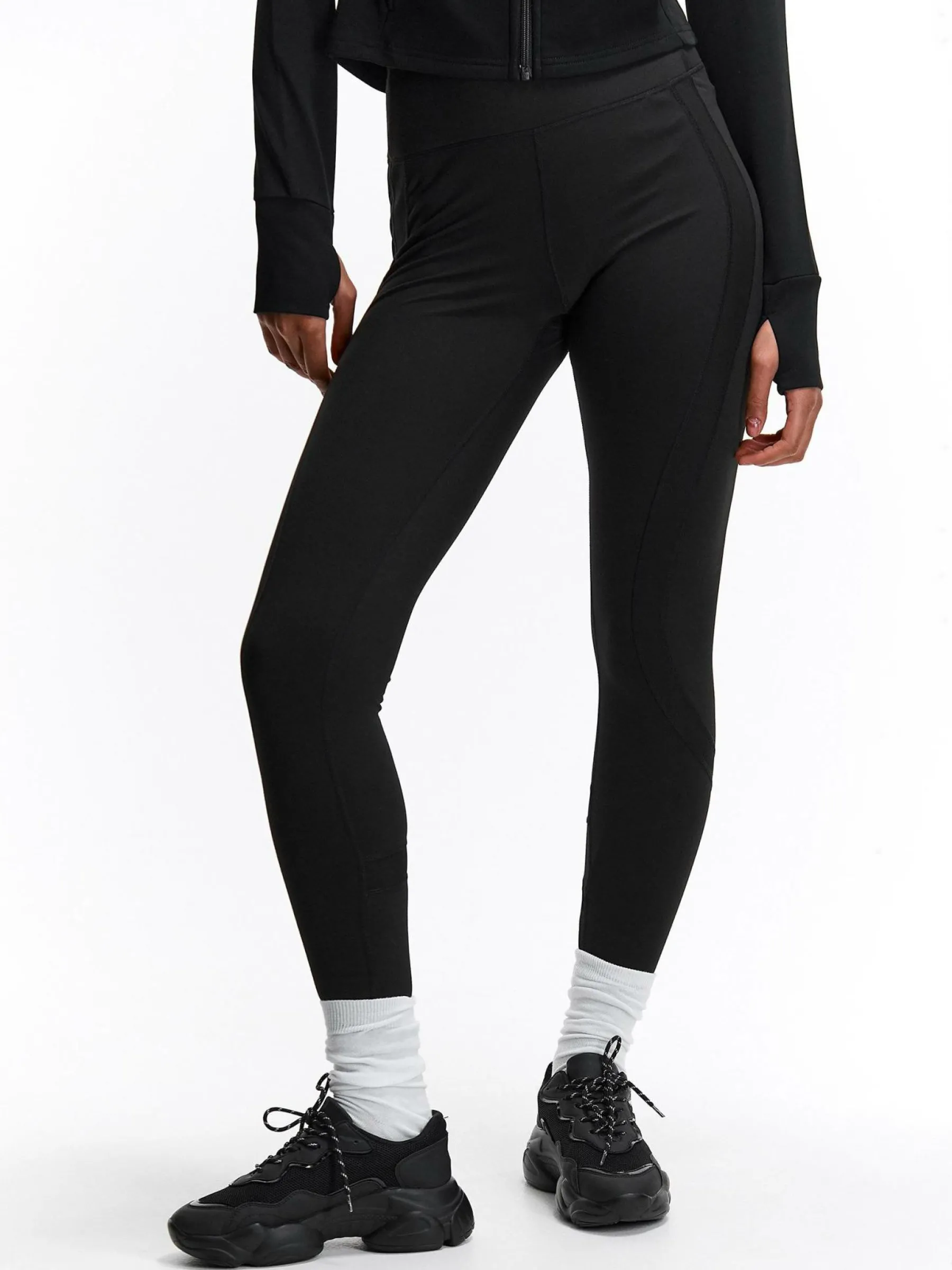 Kolor: czarnyKrój: slim, z wysokim stanemTyp: legginsyDługość: dlugiePattern style: pojedynczy kolorDetal: z elastyc…