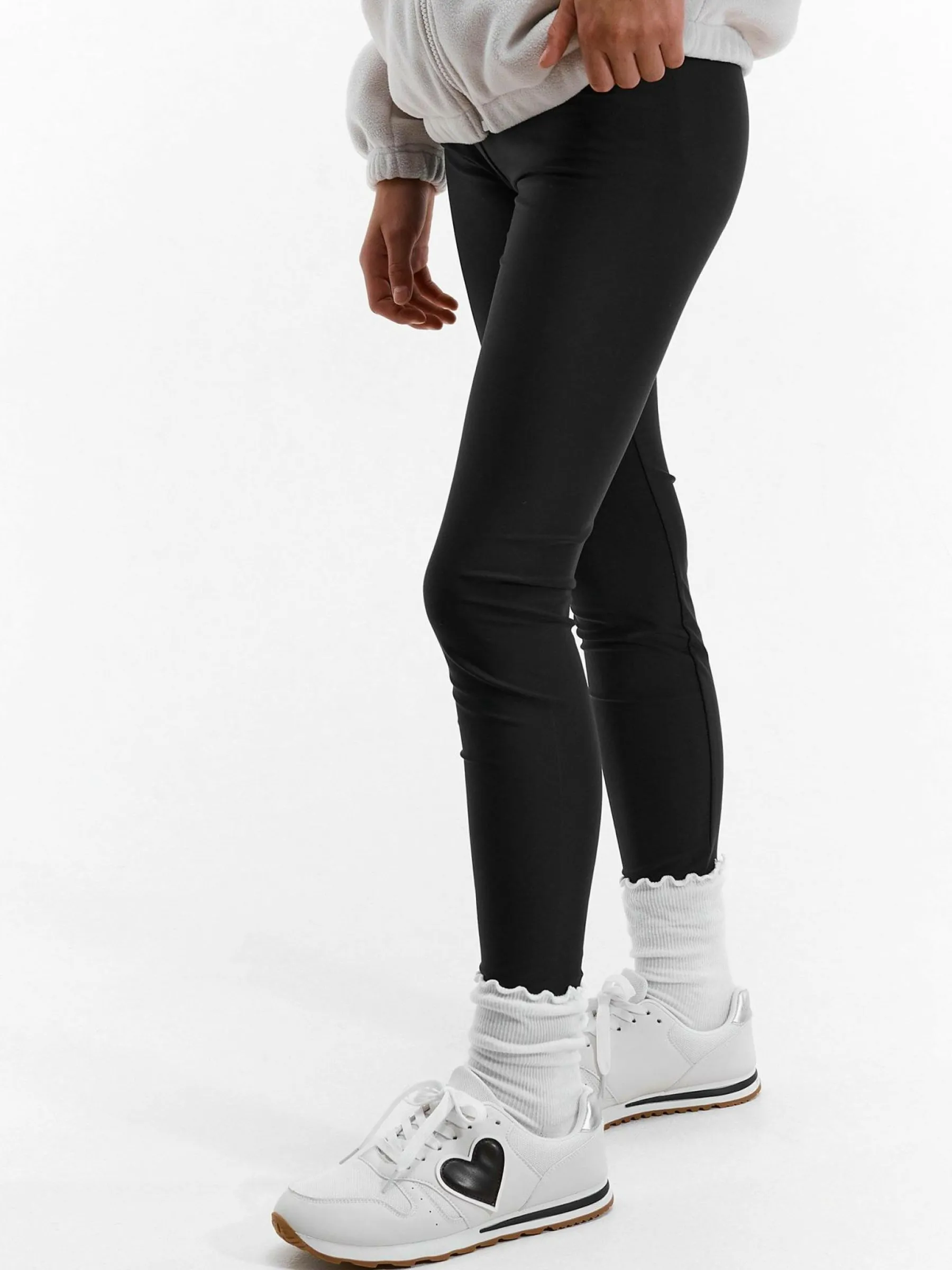Kolor: czarnyKrój: slimTyp: legginsyDługość: dlugiePattern style: pojedynczy kolorDetal: z elastyczną opaskąMateri…