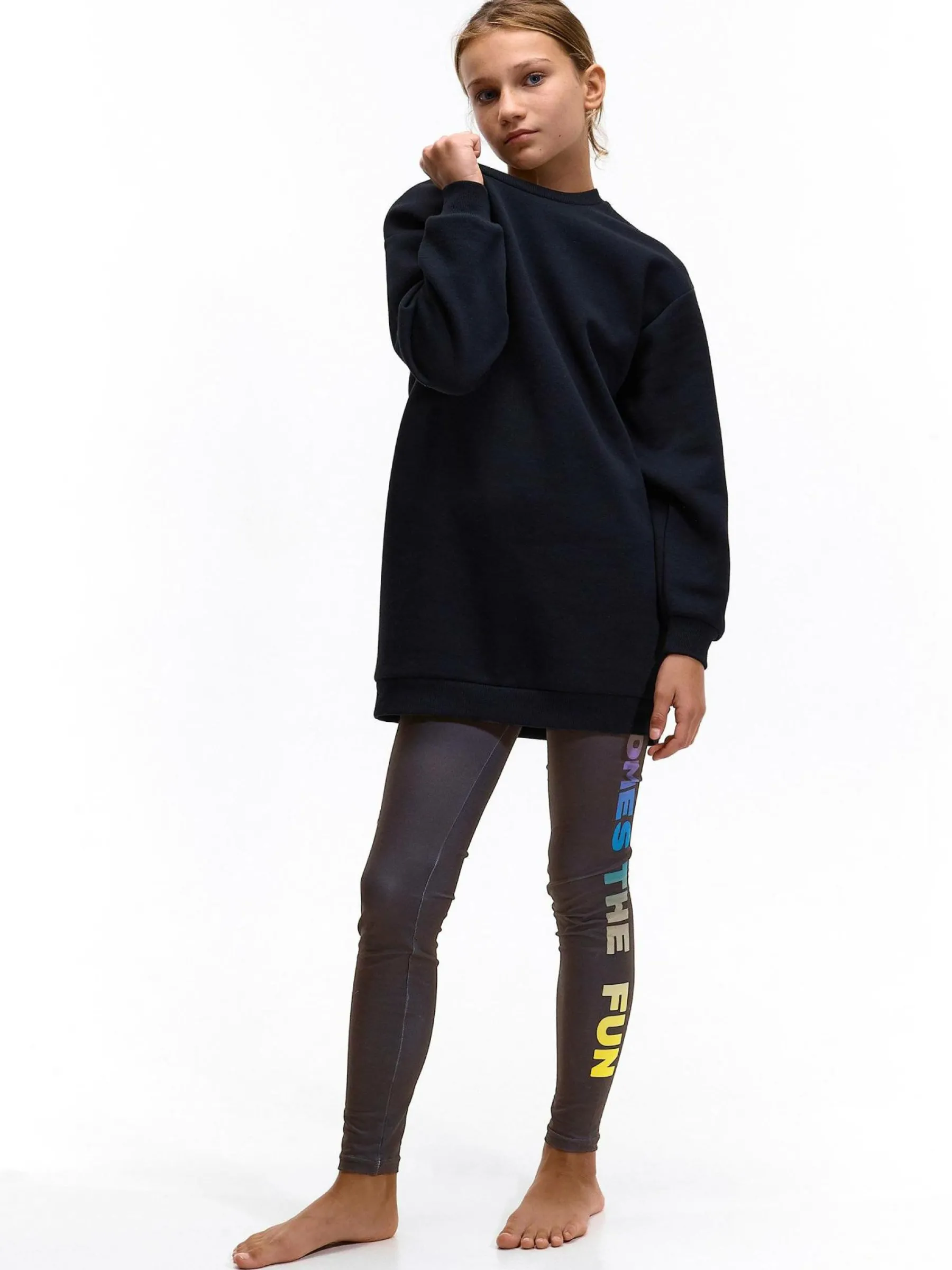 Kolor: czarnyKrój: slimTyp: legginsyDługość: dlugiePattern style: z nadrukiemDetal: z elastyczną opaskąMateriał: …