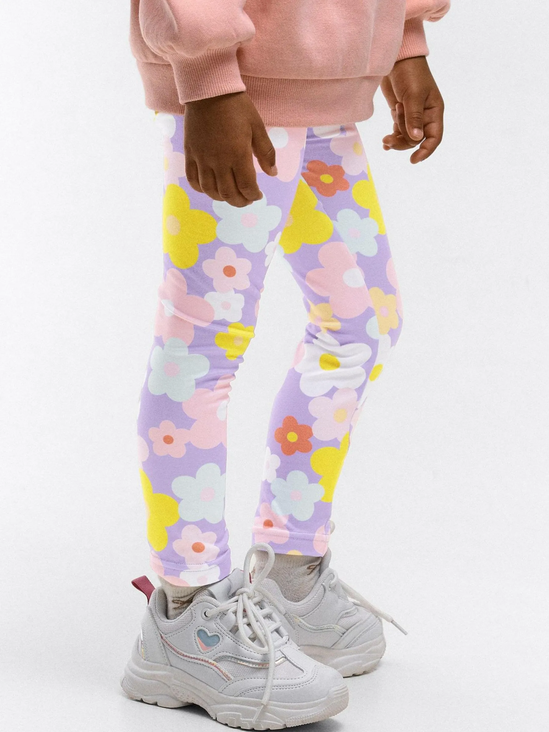 Kolor: purpurowyKrój: slimTyp: legginsyDługość: dlugiePattern style: z nadrukiem, kwiatoweDetal: z elastyczną opask…