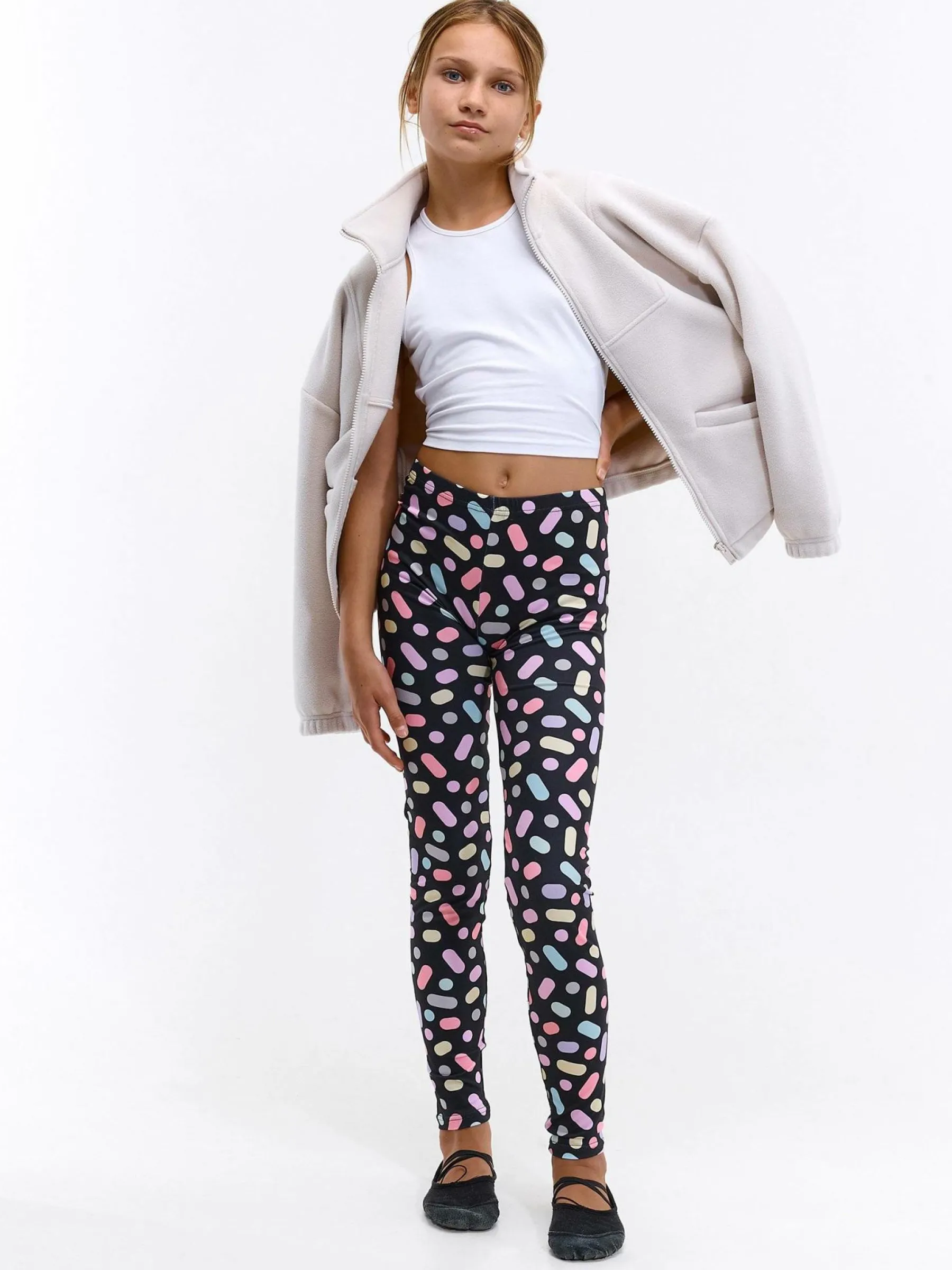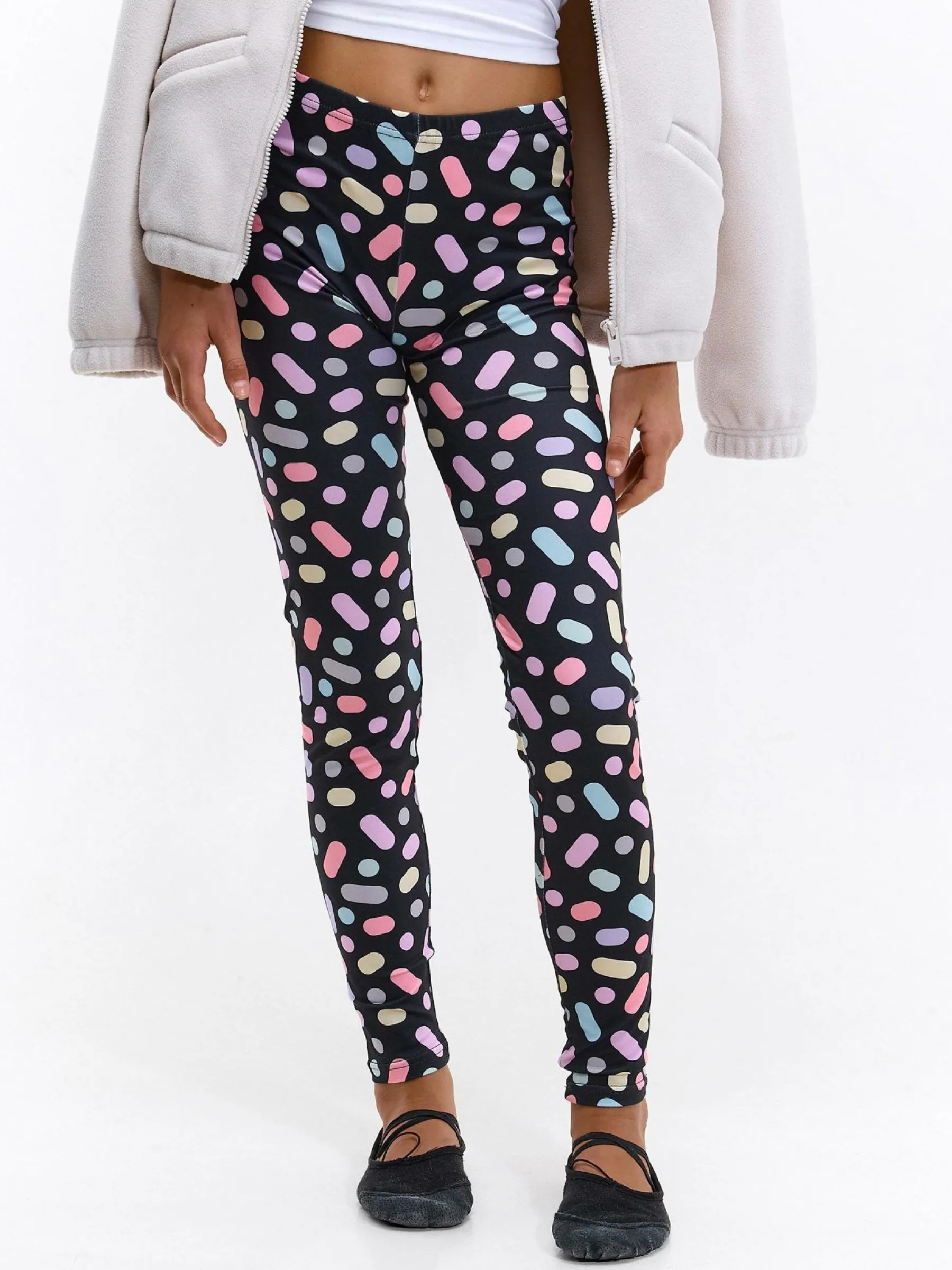 Kolor: czarnyKrój: slimTyp: legginsyDługość: dlugiePattern style: z nadrukiemMateriał: syntetycznePłeć: dziewczyn…