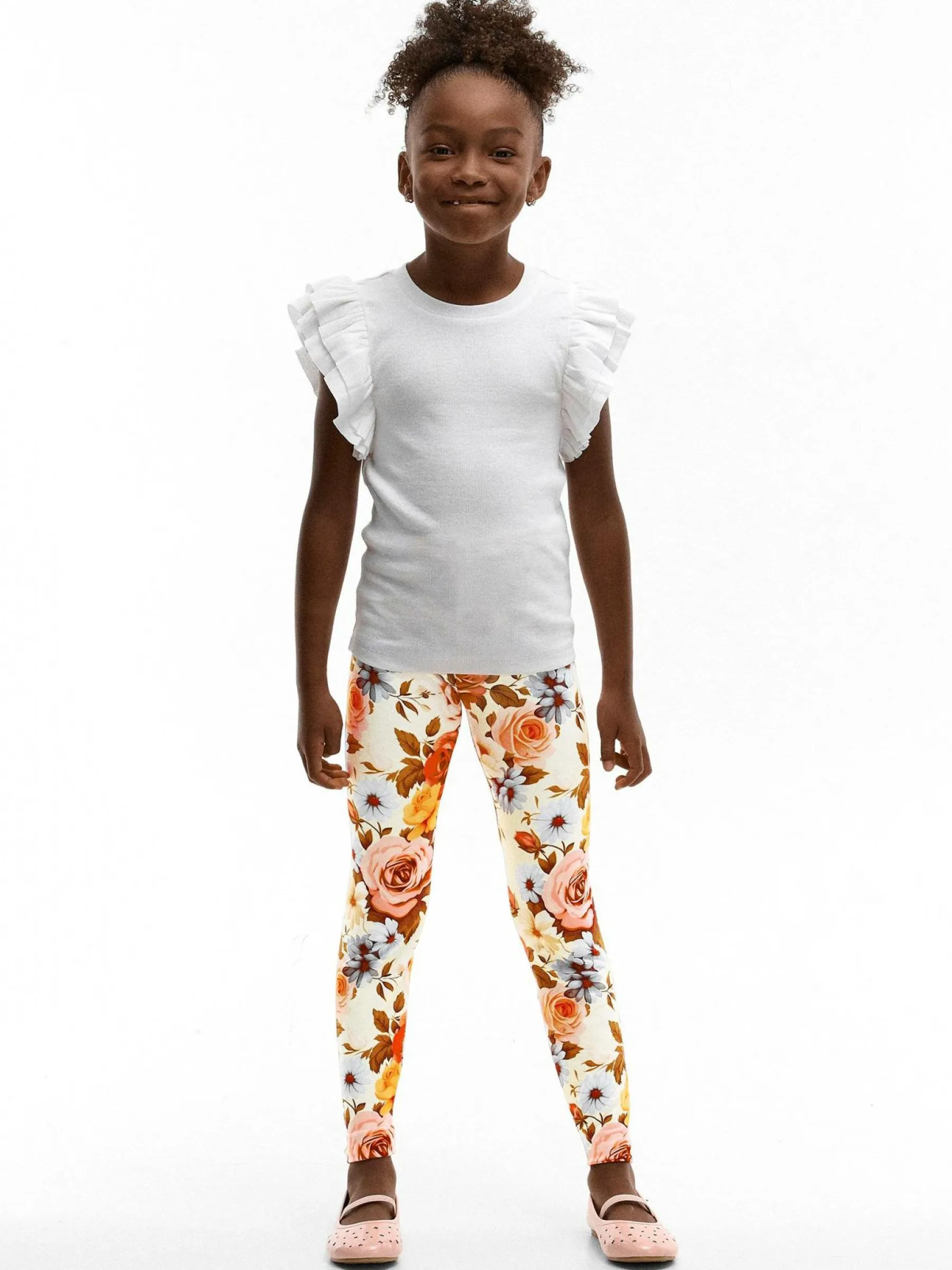 Kolor: białyKrój: slimTyp: legginsyDługość: dlugiePattern style: z nadrukiem, kwiatoweDetal: z elastyczną opaskąM…