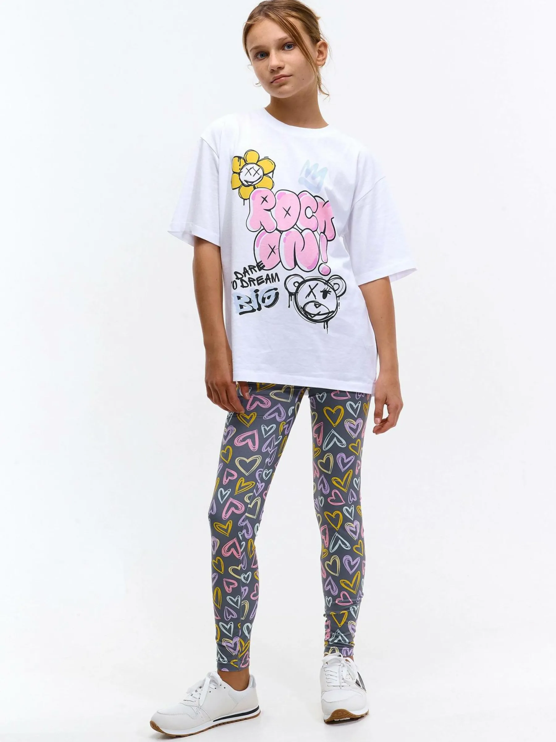 Kolor: szaryKrój: slimTyp: legginsyDługość: dlugiePattern style: z nadrukiemDetal: z elastyczną opaskąMateriał: s…