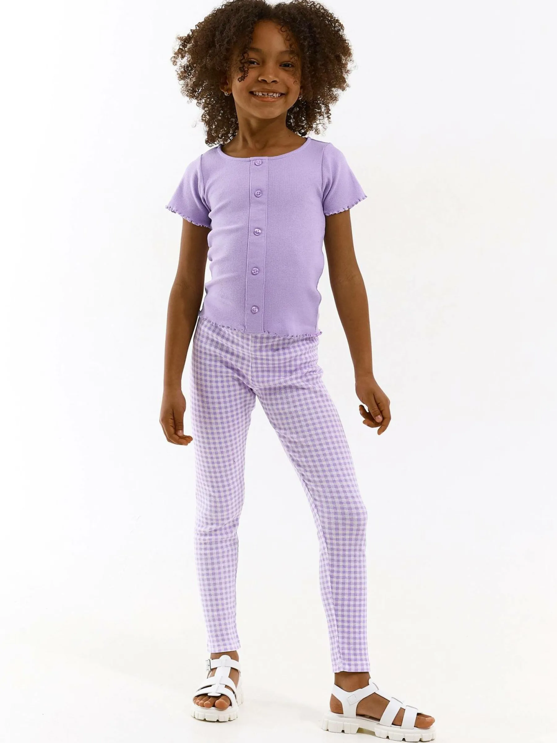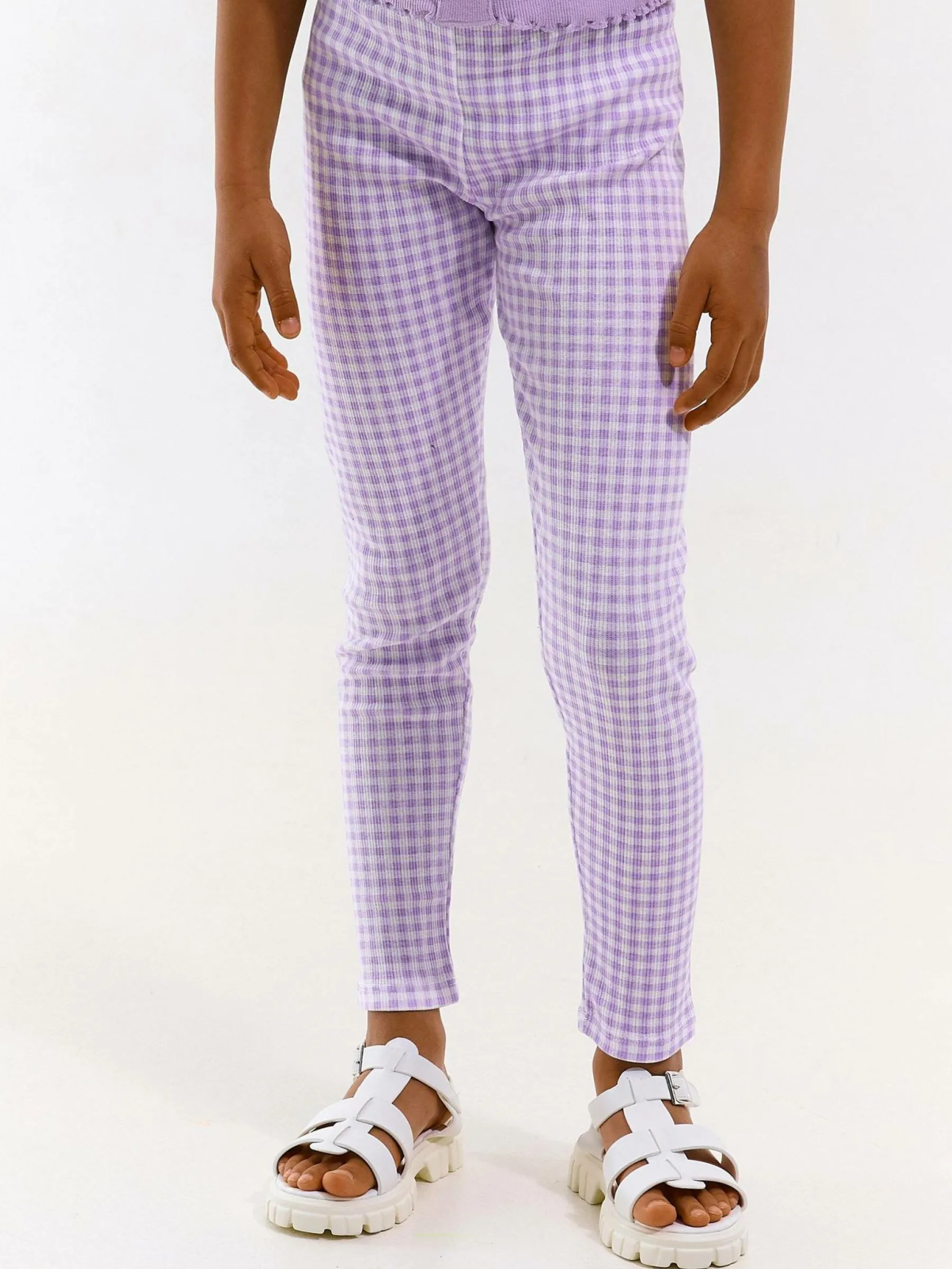 Kolor: purpurowyKrój: slimTyp: legginsyDługość: dlugiePattern style: w kratkęMateriał: syntetycznePłeć: dziewczy…