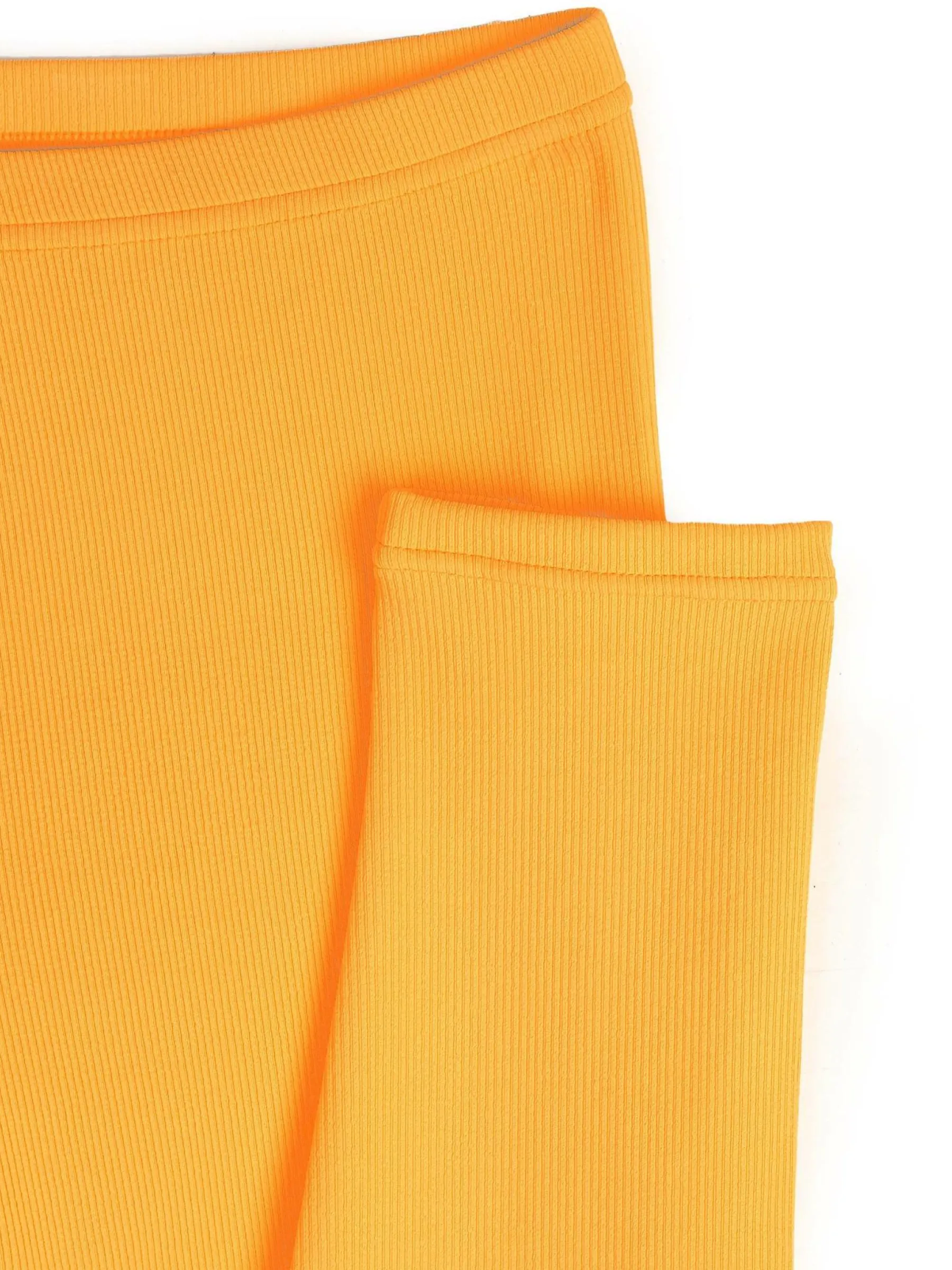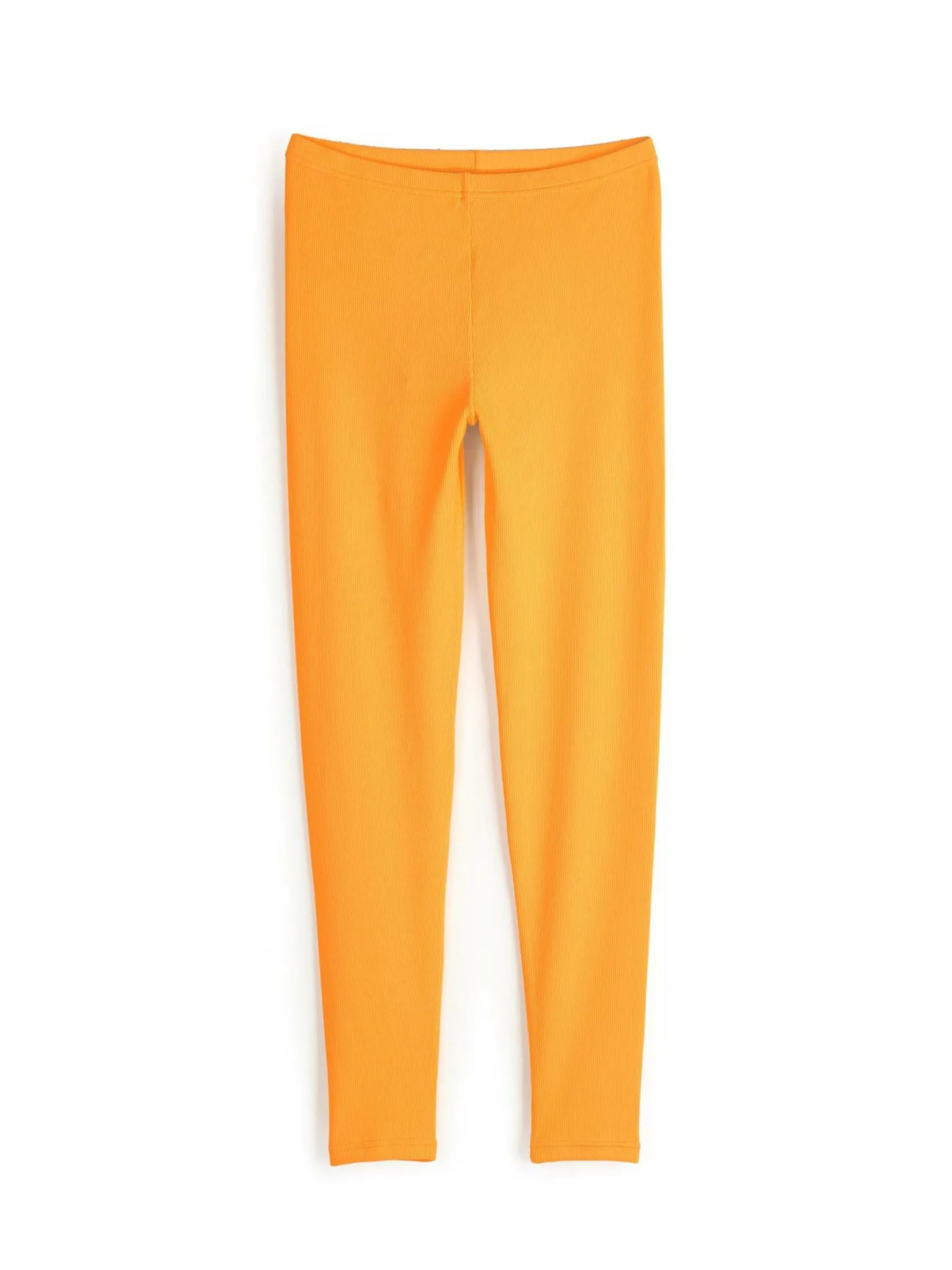 Kolor: pomarańczowyKrój: slimTyp: legginsyDługość: dlugiePattern style: pojedynczy kolor, żebrowanyDetal: z elasty…