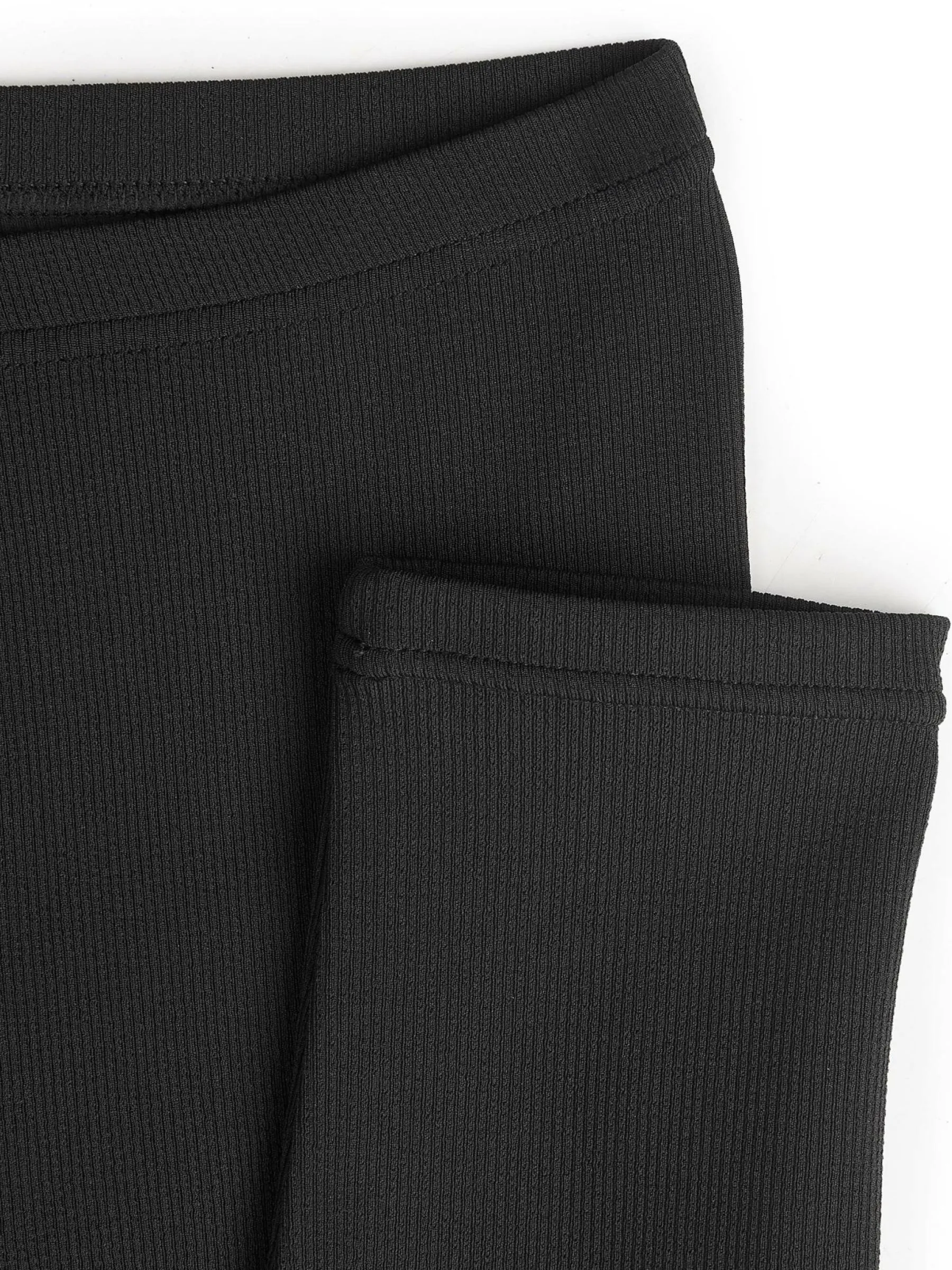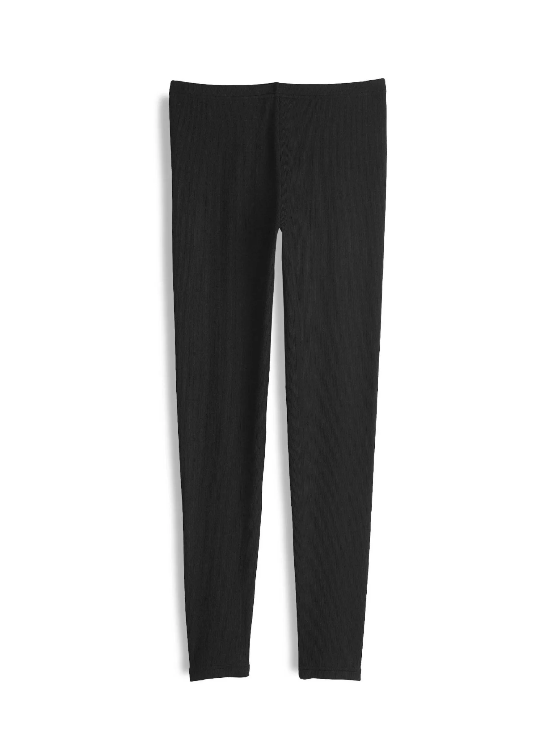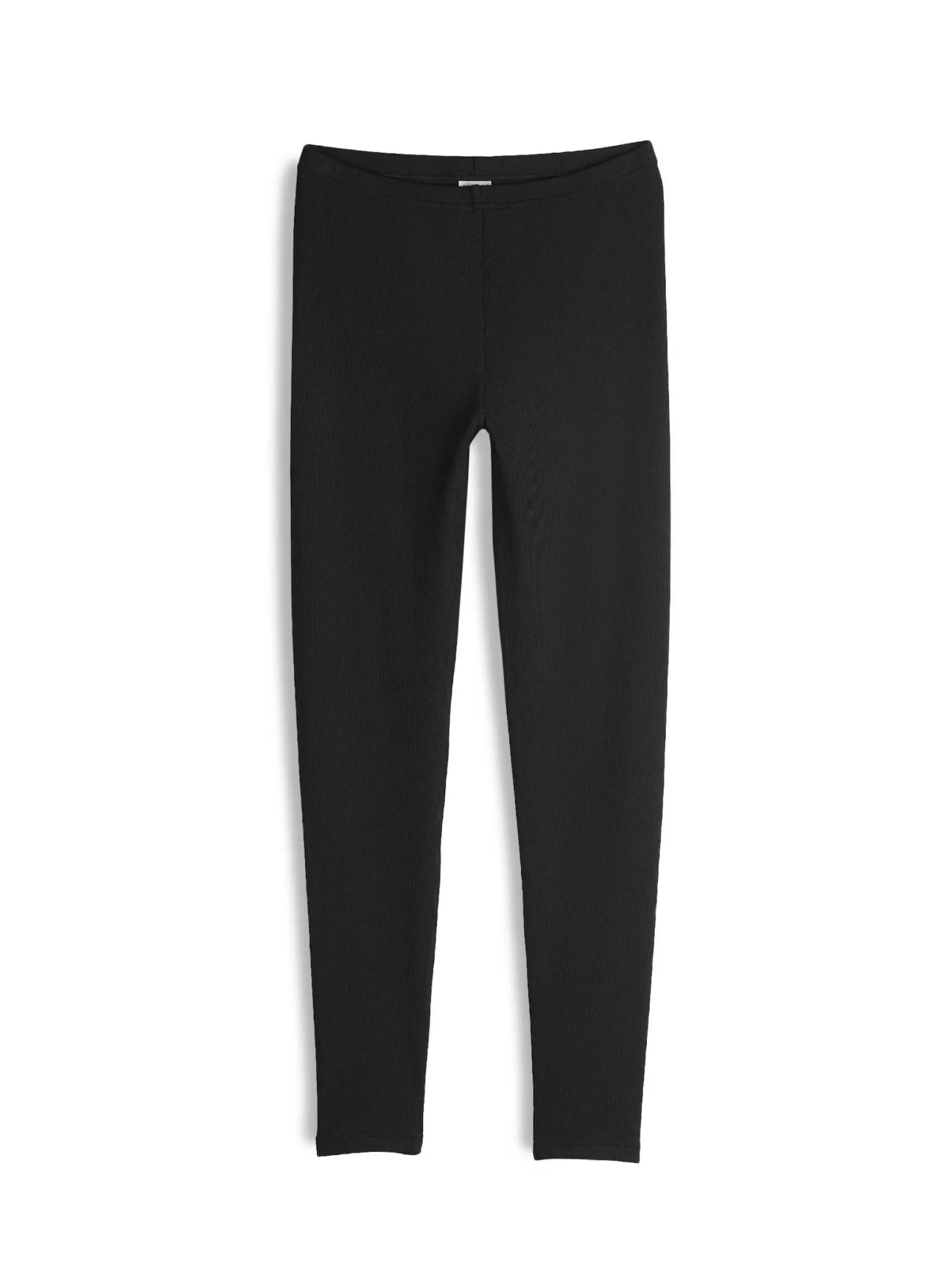 Kolor: czarnyKrój: slimTyp: legginsyDługość: dlugiePattern style: pojedynczy kolor, żebrowanyDetal: z elastyczną o…