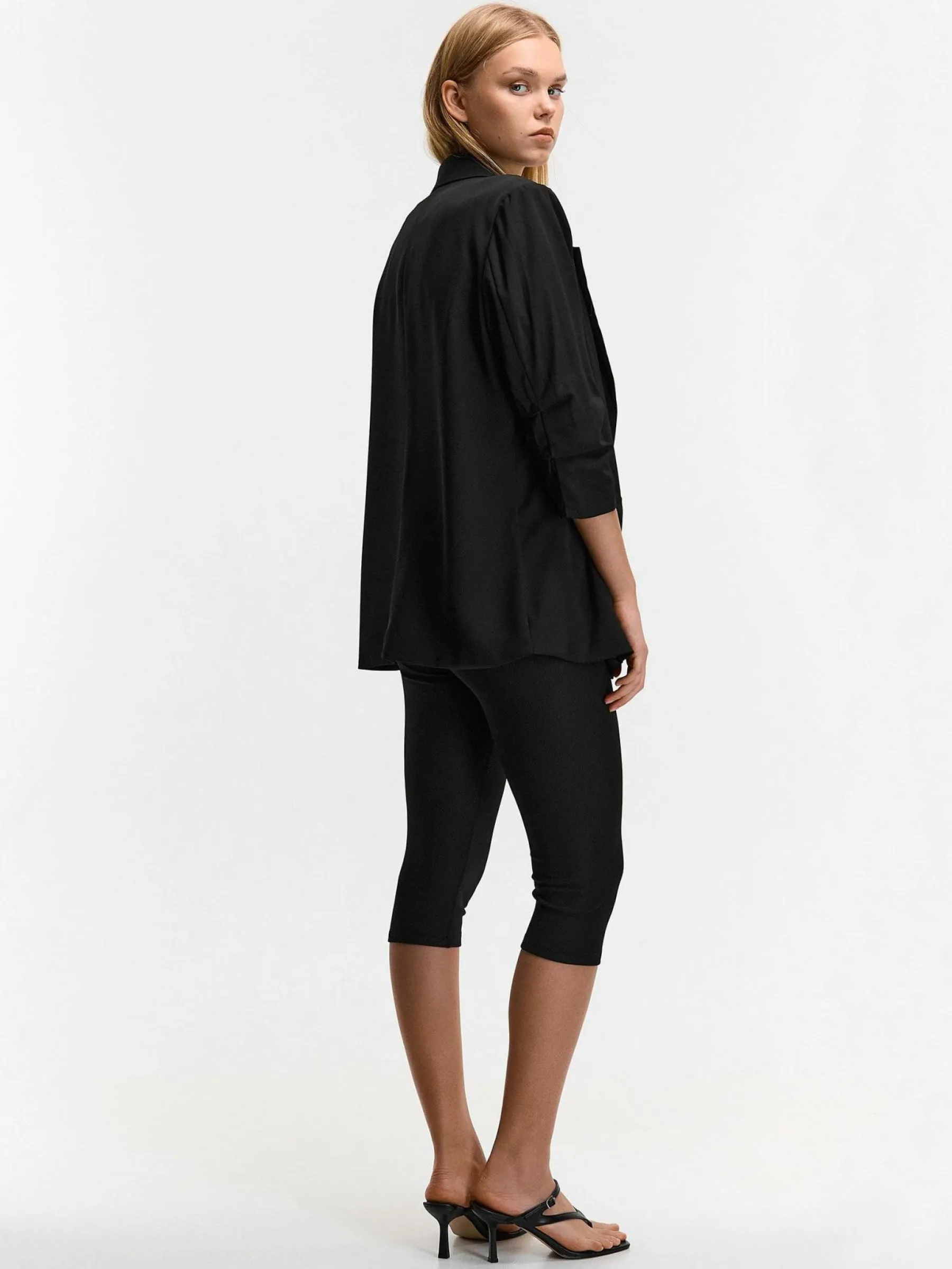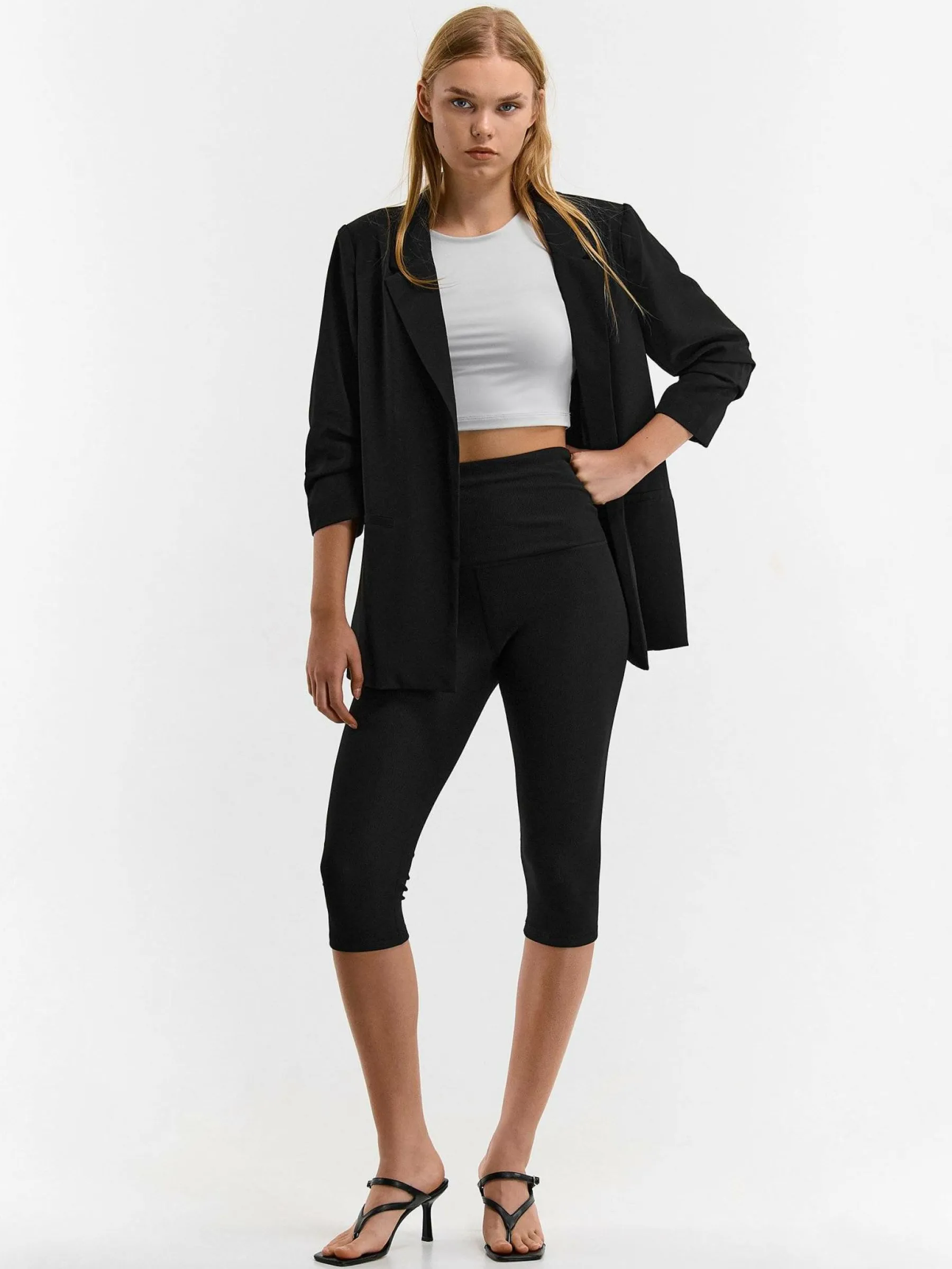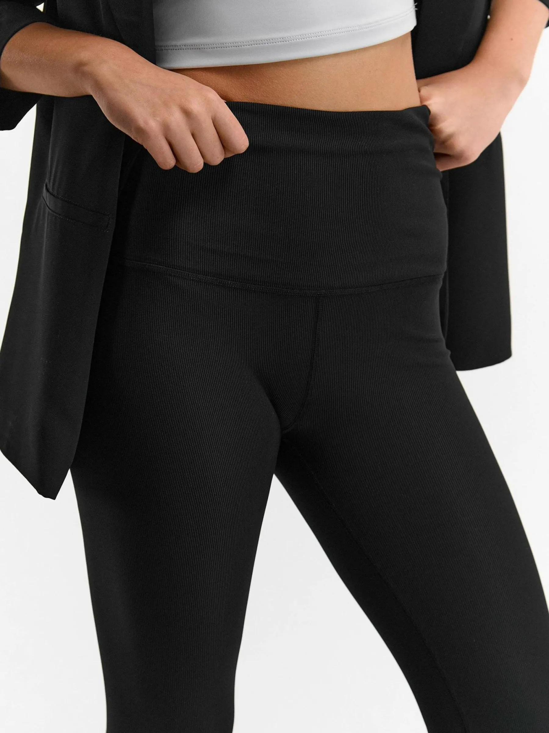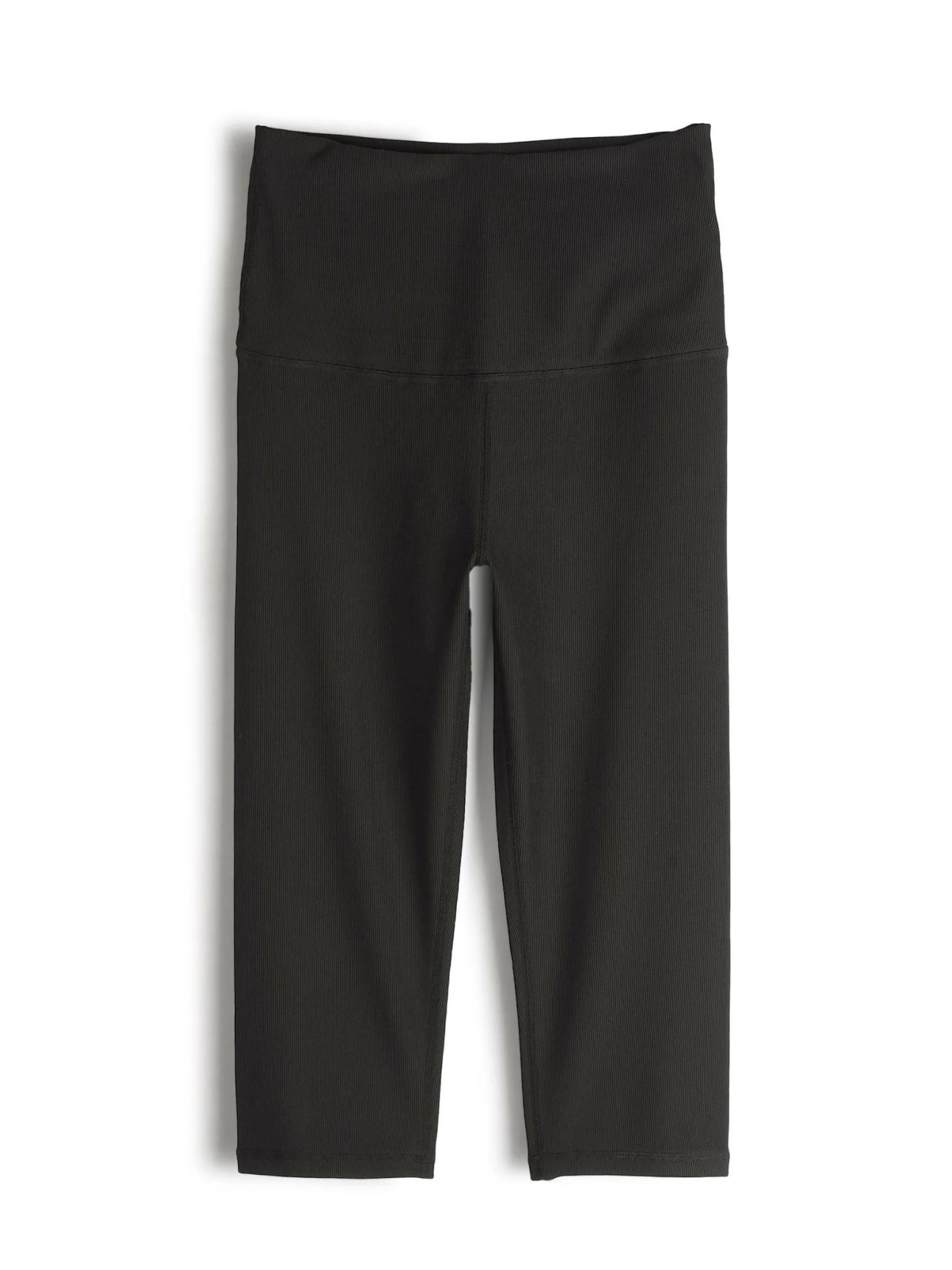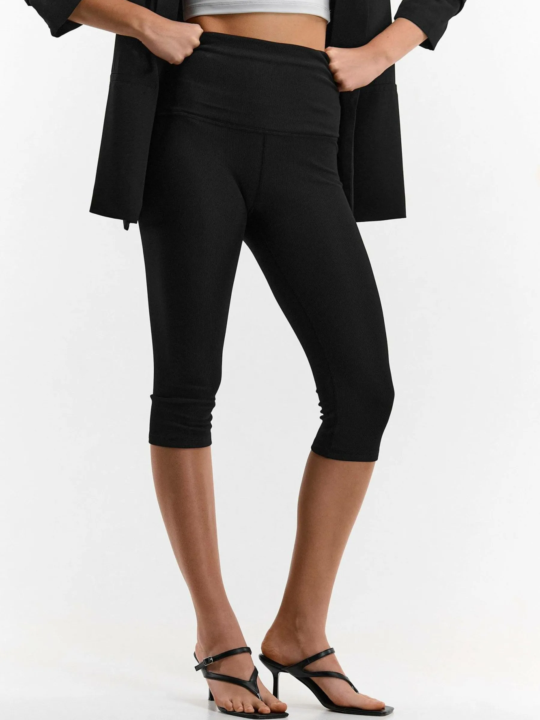Kolor: czarnyKrój: slimTyp: legginsyDługość: trzy czwartePattern style: pojedynczy kolor, żebrowanyMateriał: synte…