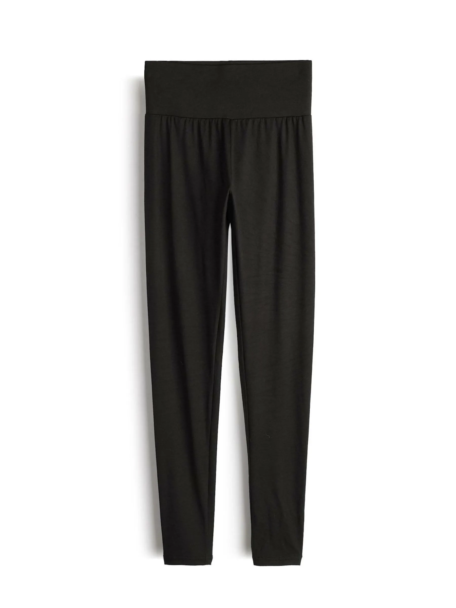 Kolor: czarnyKrój: slim, z wysokim stanemTyp: legginsyDługość: midiPattern style: pojedynczy kolorDetal: z elastyczn…