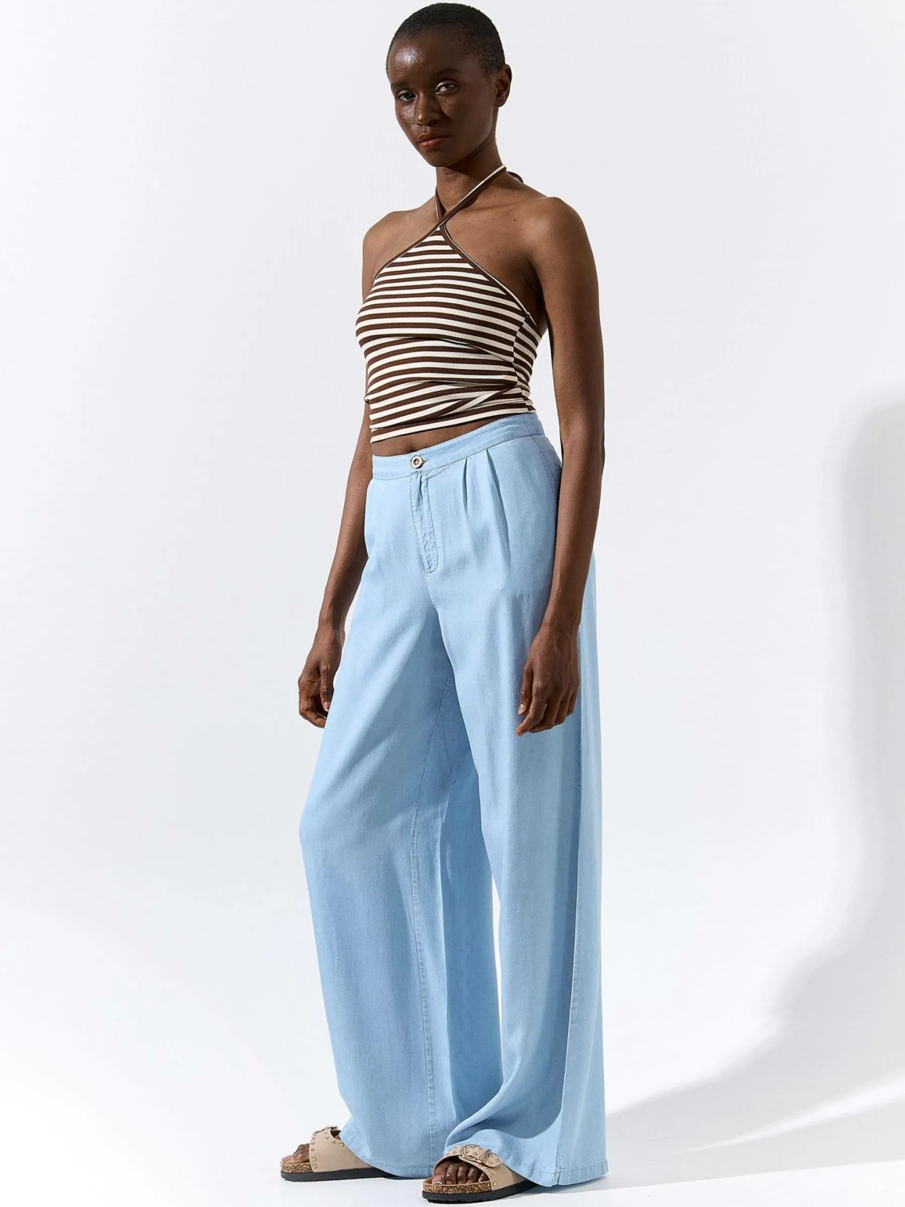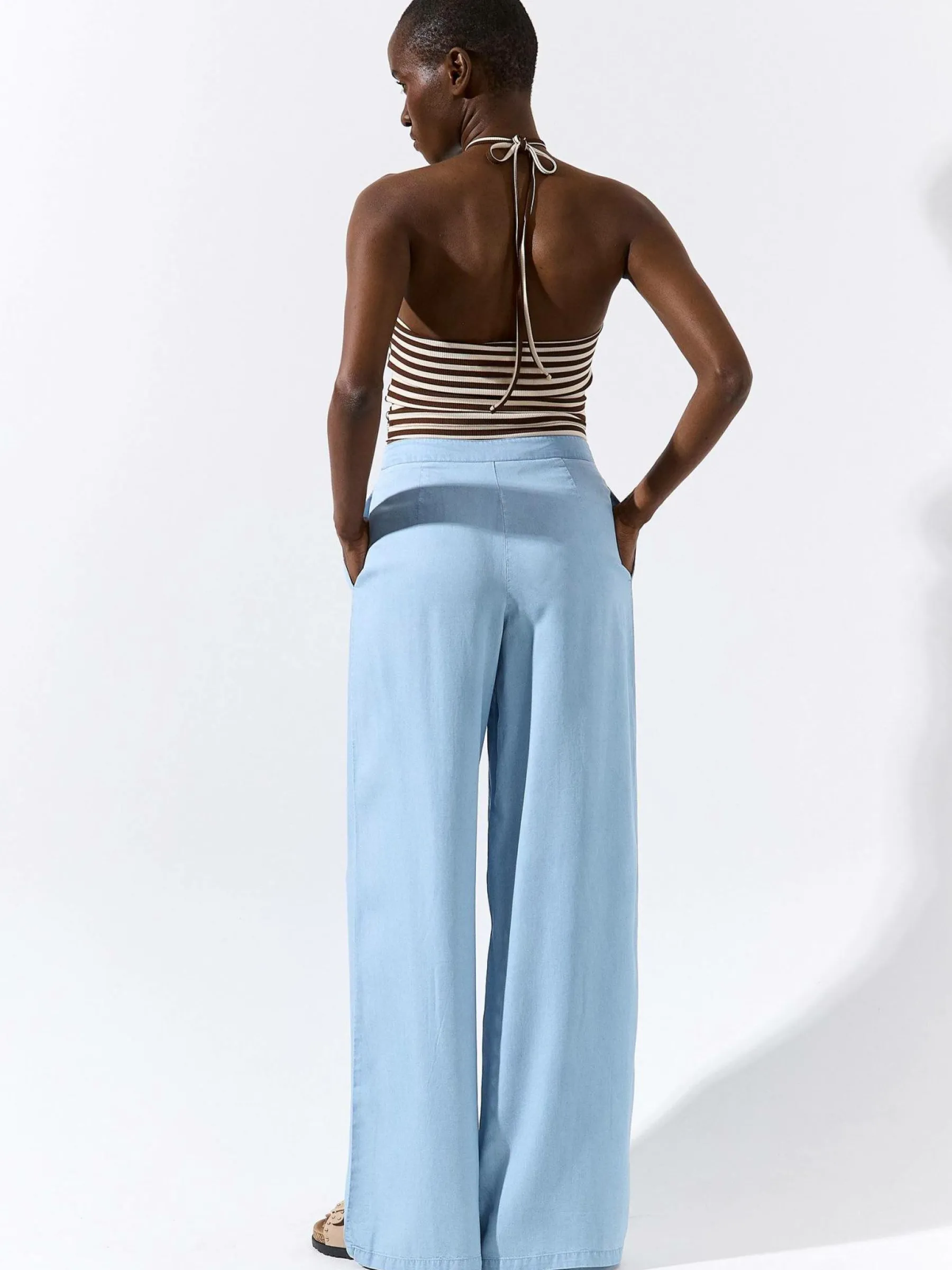 Kolor: niebieskiKrój: szerokieTyp: jeansDługość: dlugiePattern style: pojedynczy kolorDetal: na zamek, z kieszeniami…