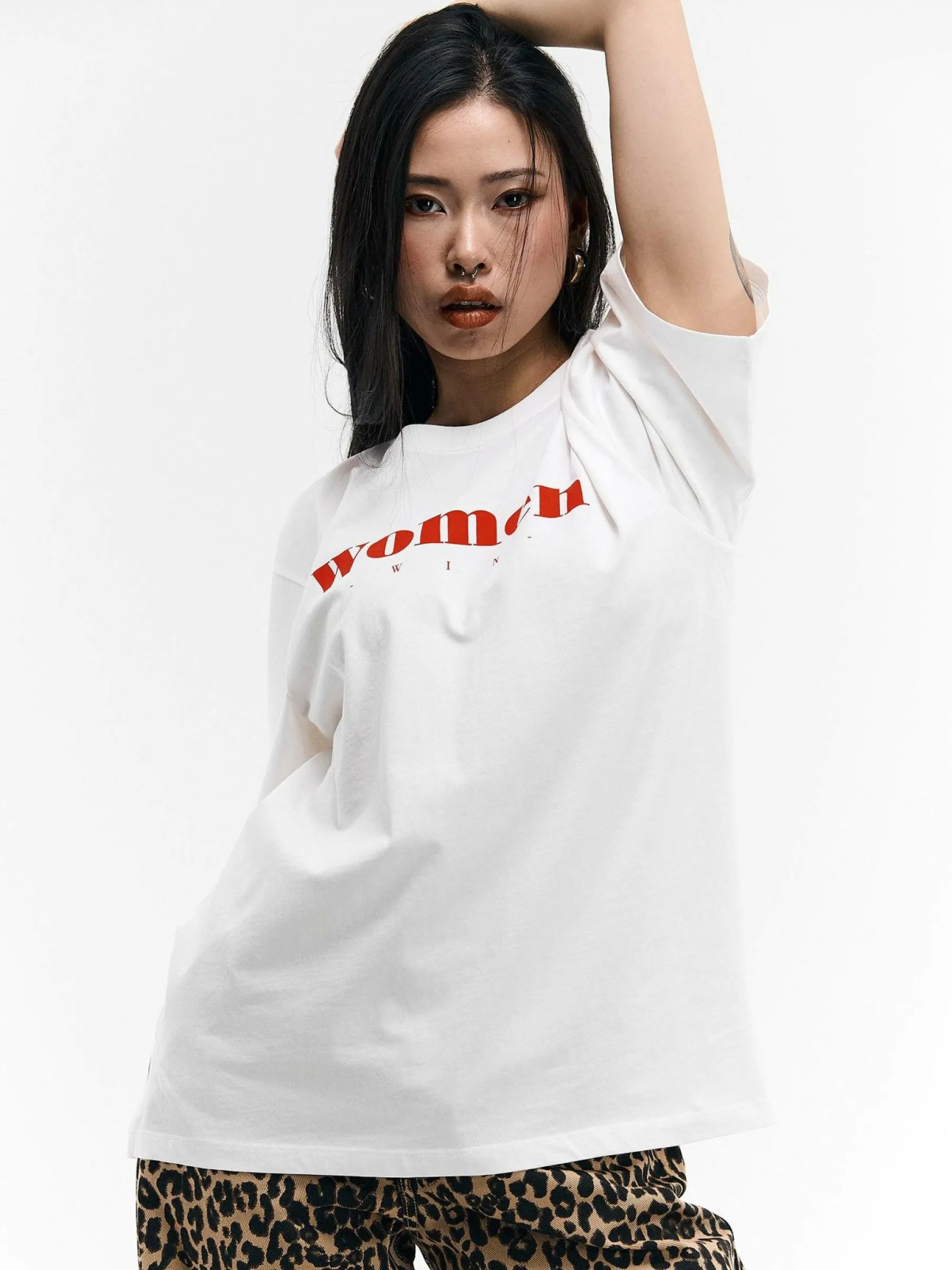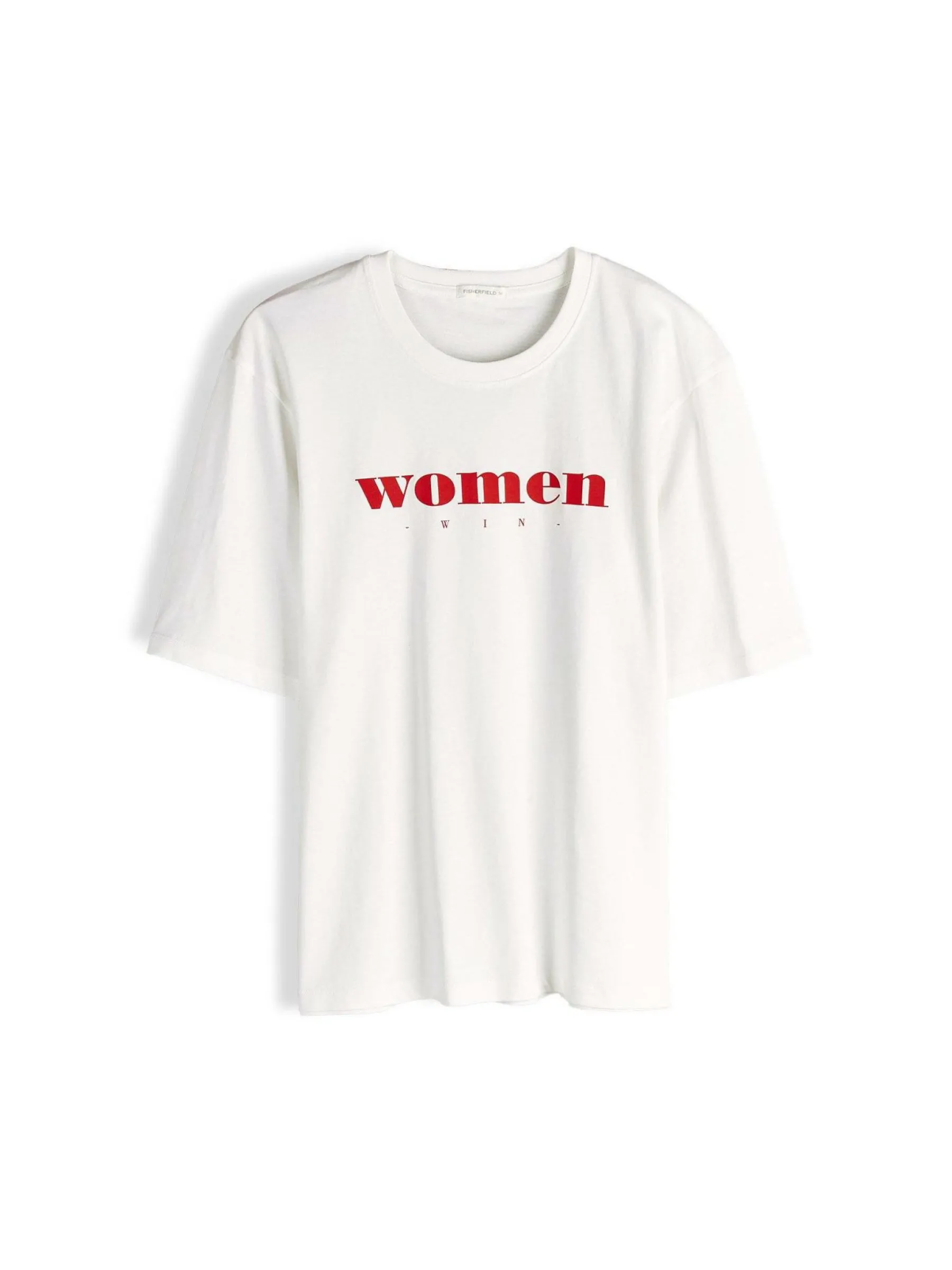 Kolor: białyKrój: oversizedTyp: koszulkaRekaw: krótki rękawDługość: krótkiPattern style: z napisemDetal: nad gł…