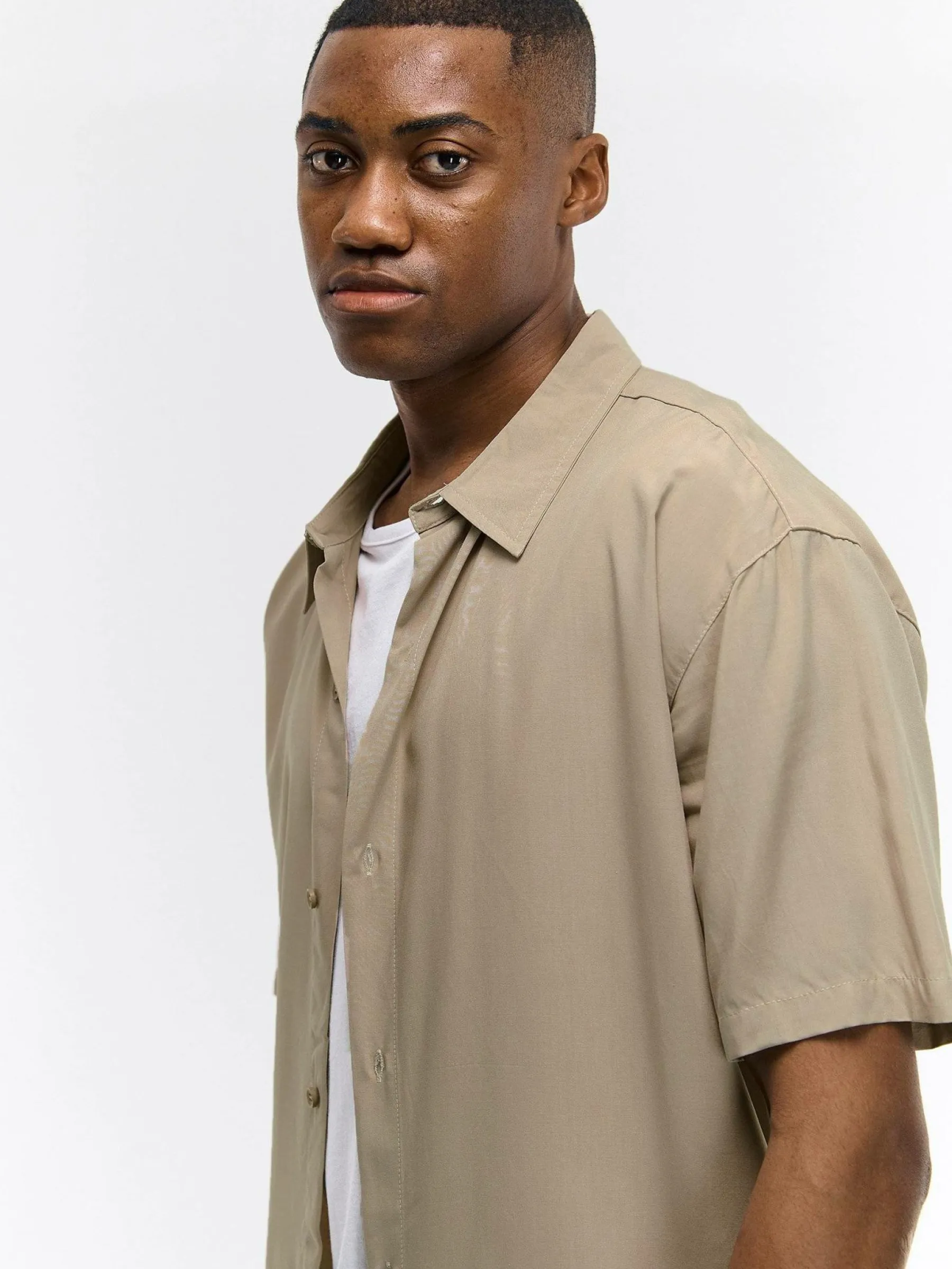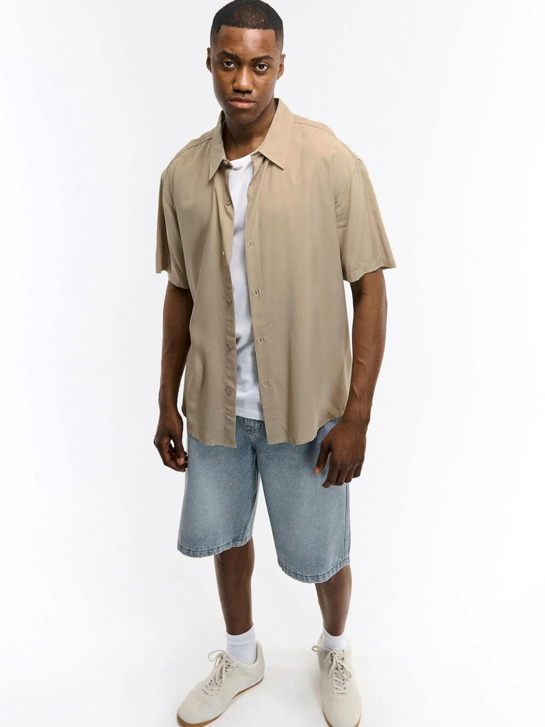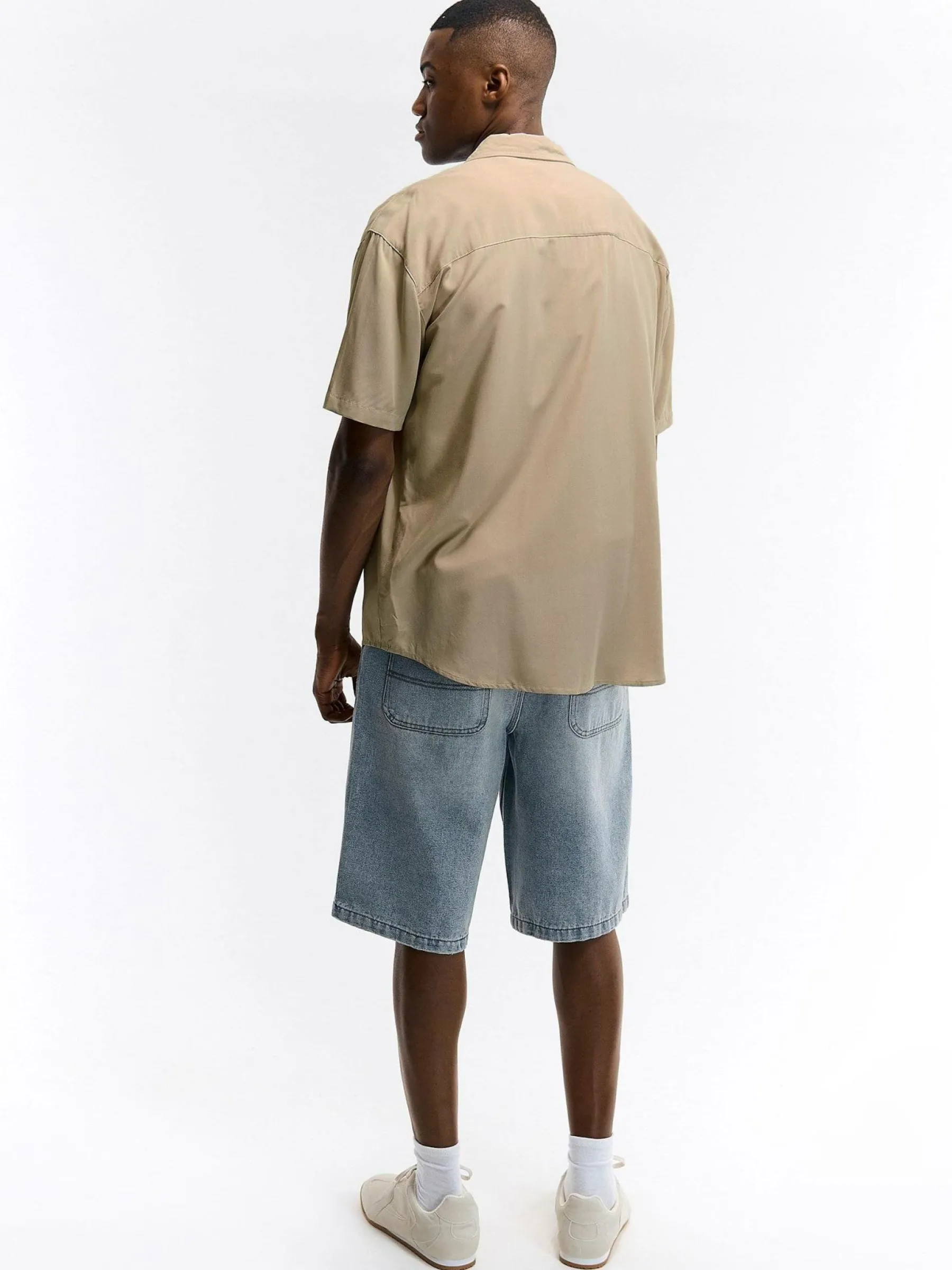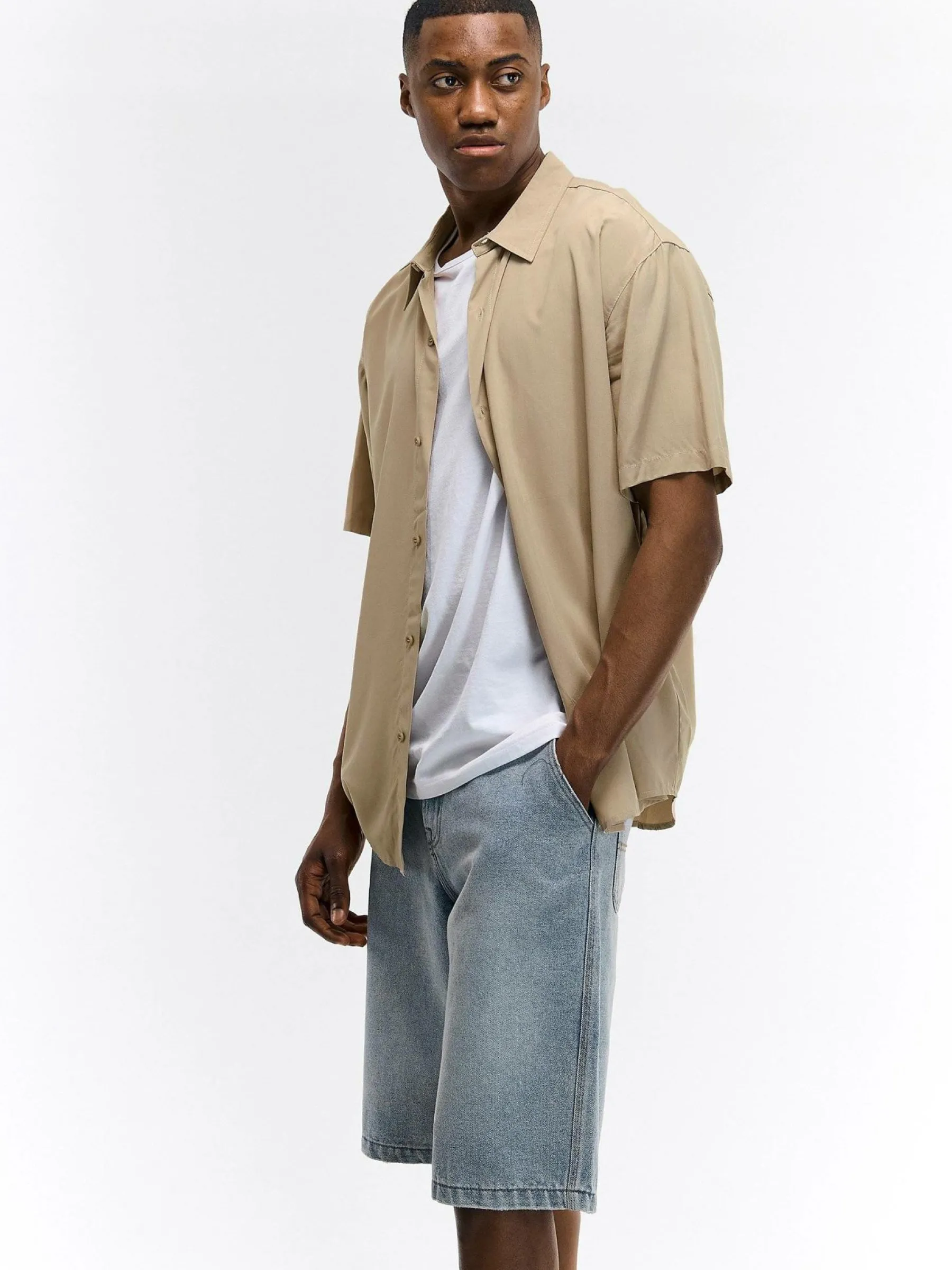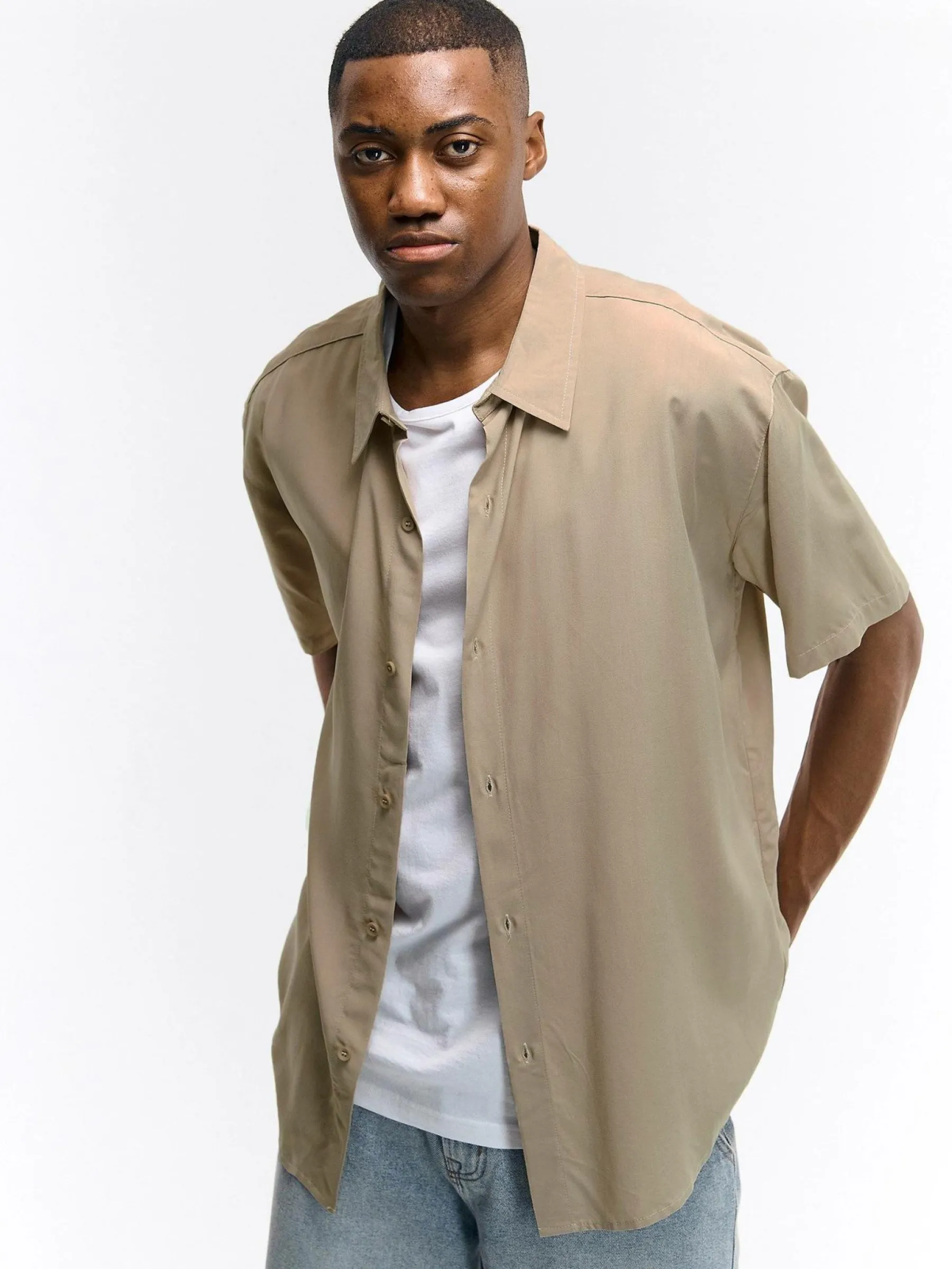 Kolor: beżowyKrój: podstawowyTyp: koszulaRekaw: krótki rękawPattern style: pojedynczy kolorDetal: na guzikiMateriał…