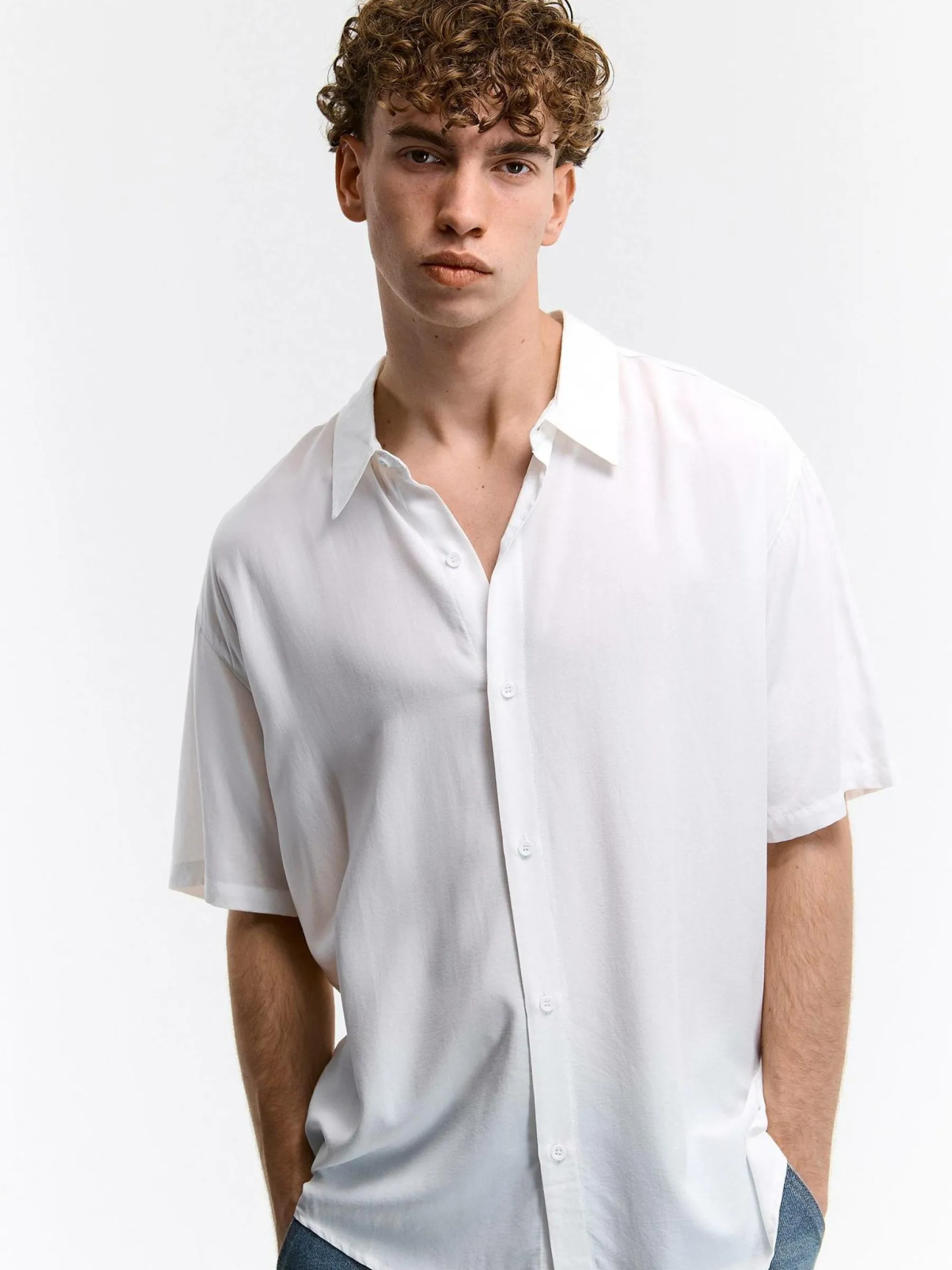 Kolor: beżowyKrój: podstawowyTyp: koszulaRekaw: krótki rękawPattern style: pojedynczy kolorDetal: na guzikiMateriał…