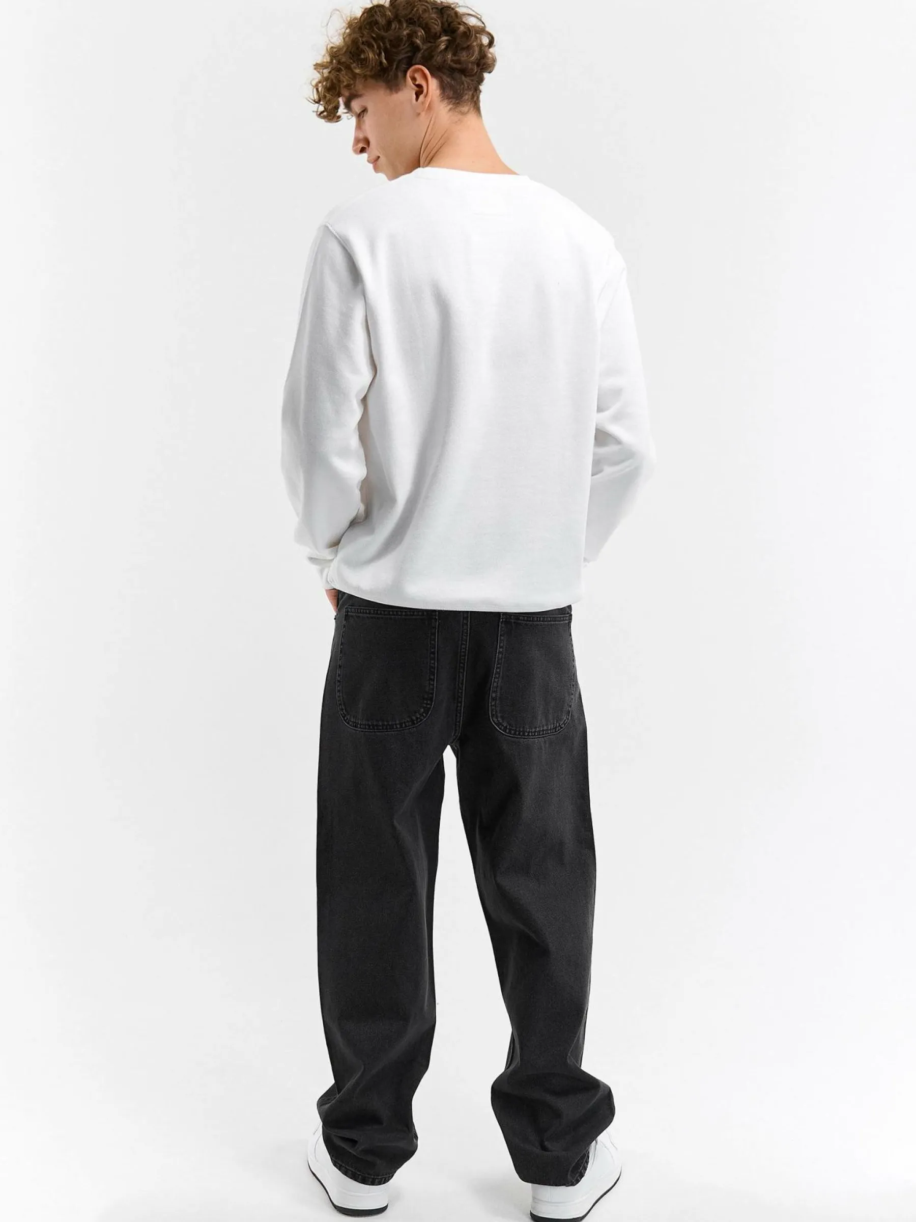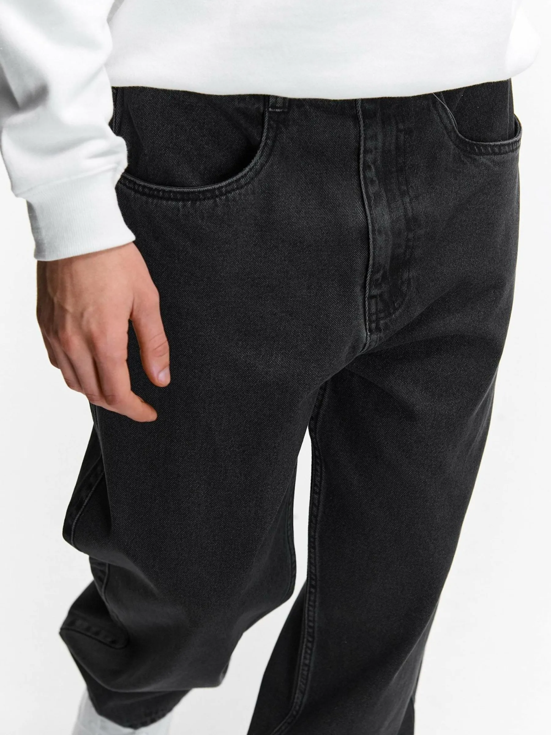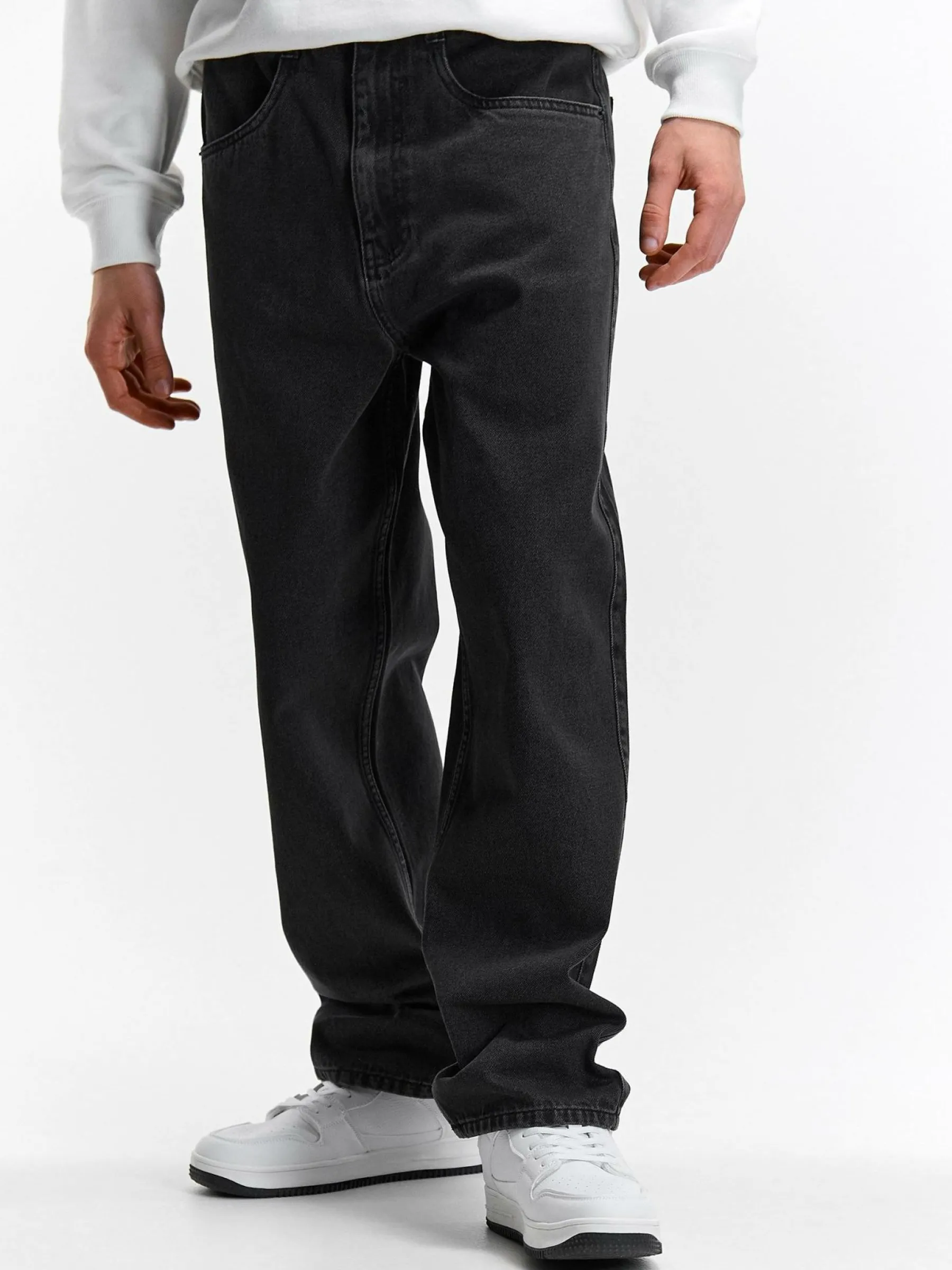 Kolor: czarnyKrój: slouchyTyp: jeansDługość: dlugiePattern style: pojedynczy kolorDetal: na zamek, z kieszeniamiMate…