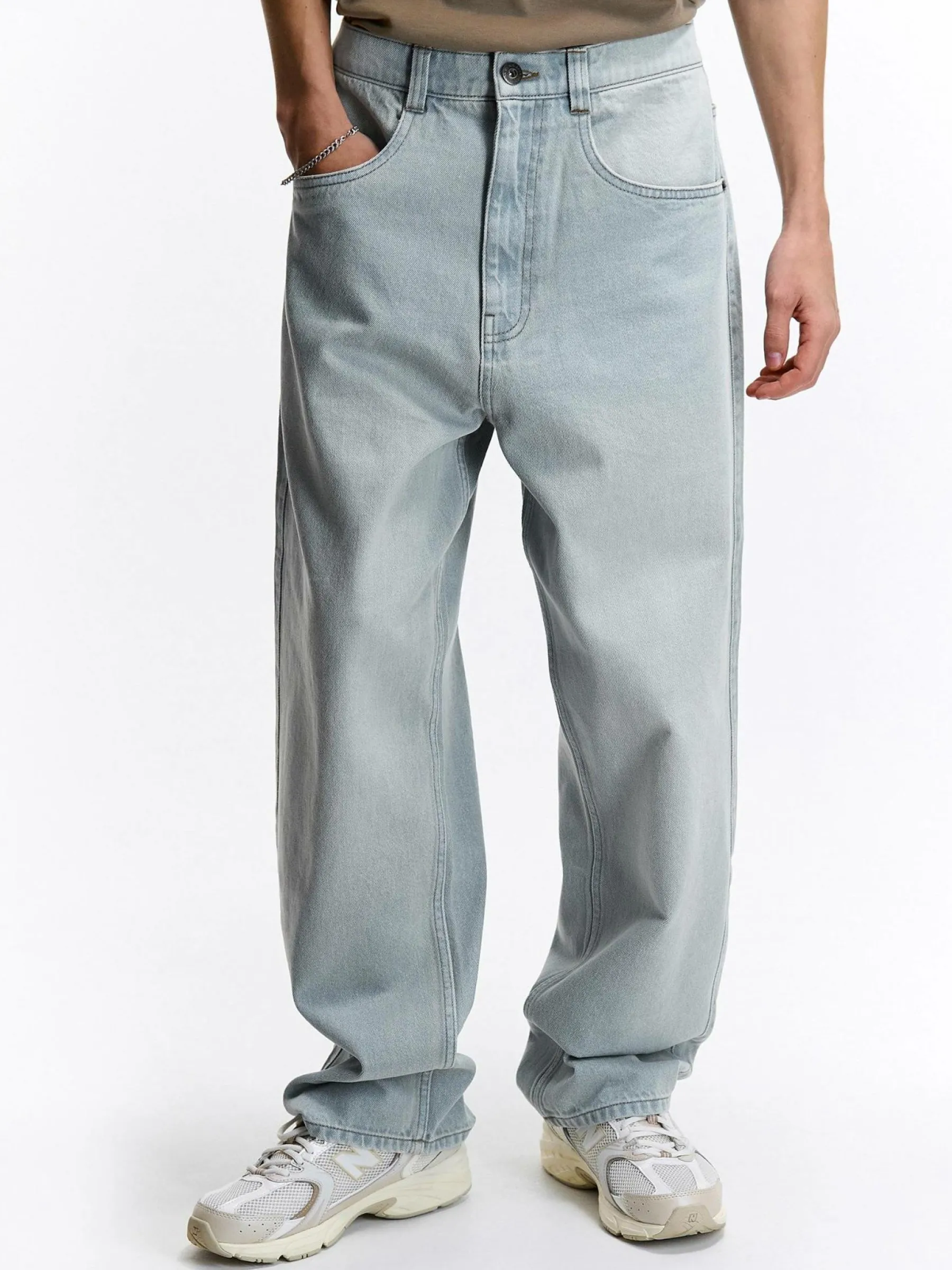 Kolor: niebieskiKrój: slouchyTyp: jeansDługość: dlugiePattern style: pojedynczy kolorDetal: na zamek, z kieszeniamiM…