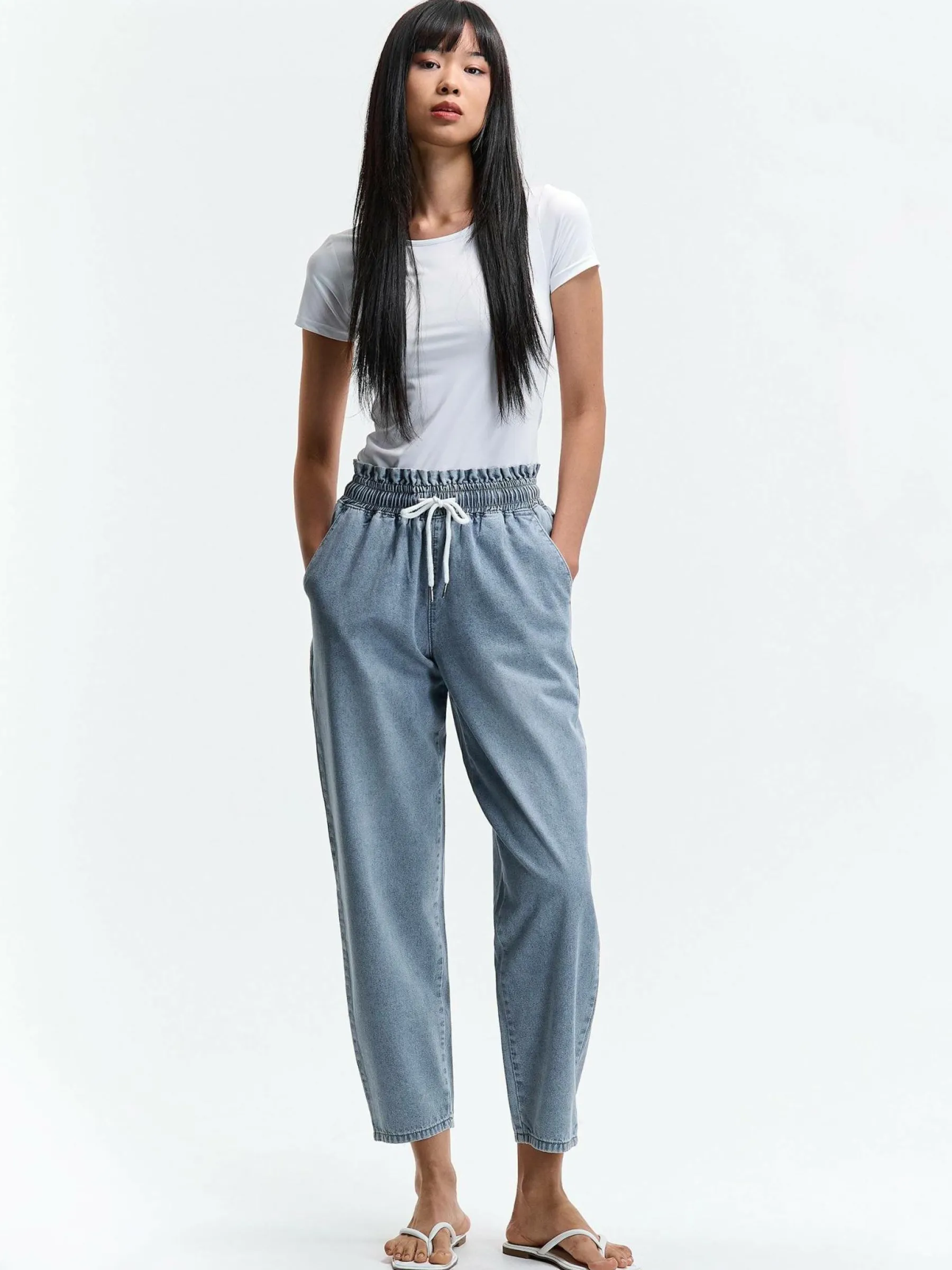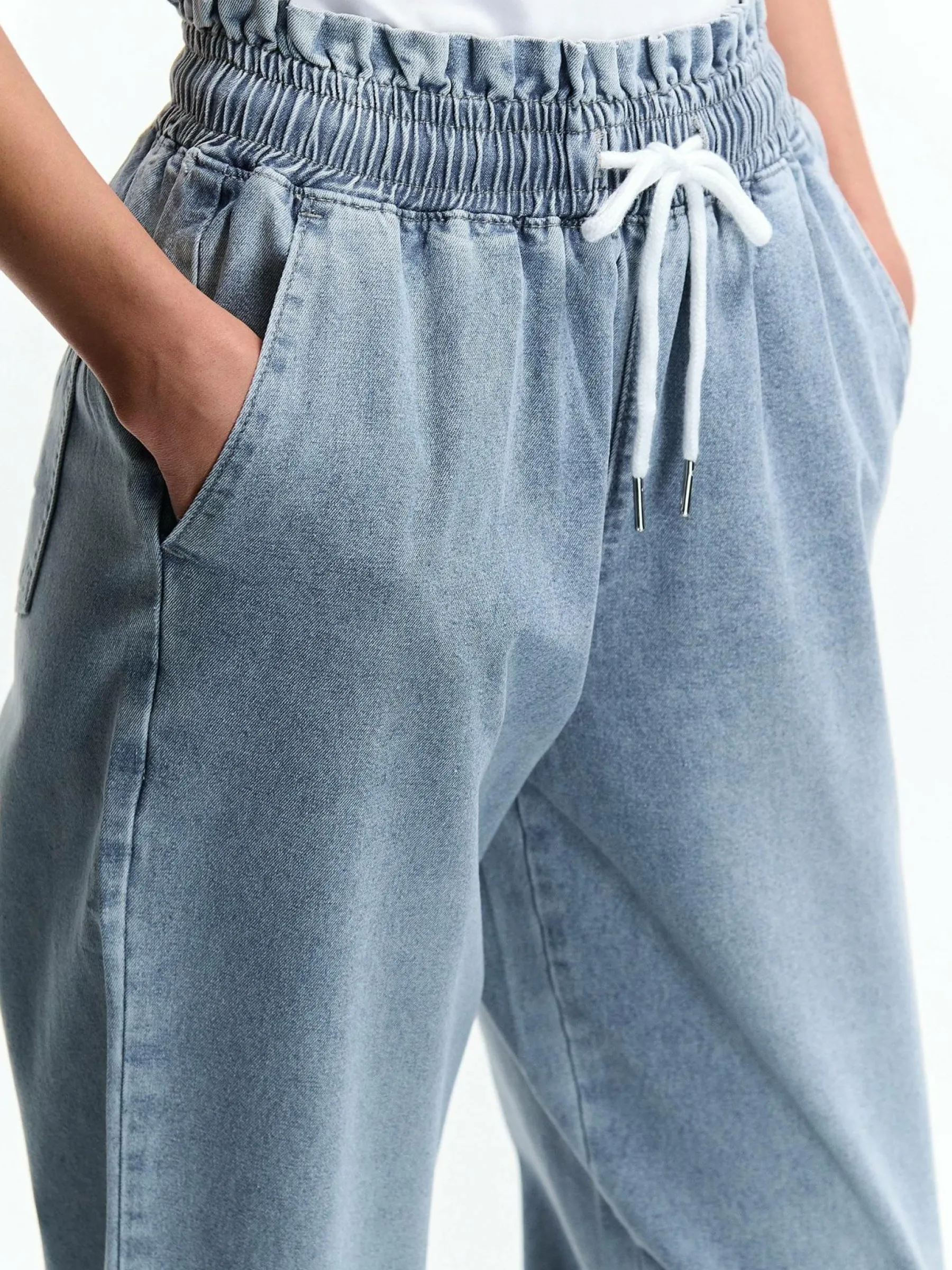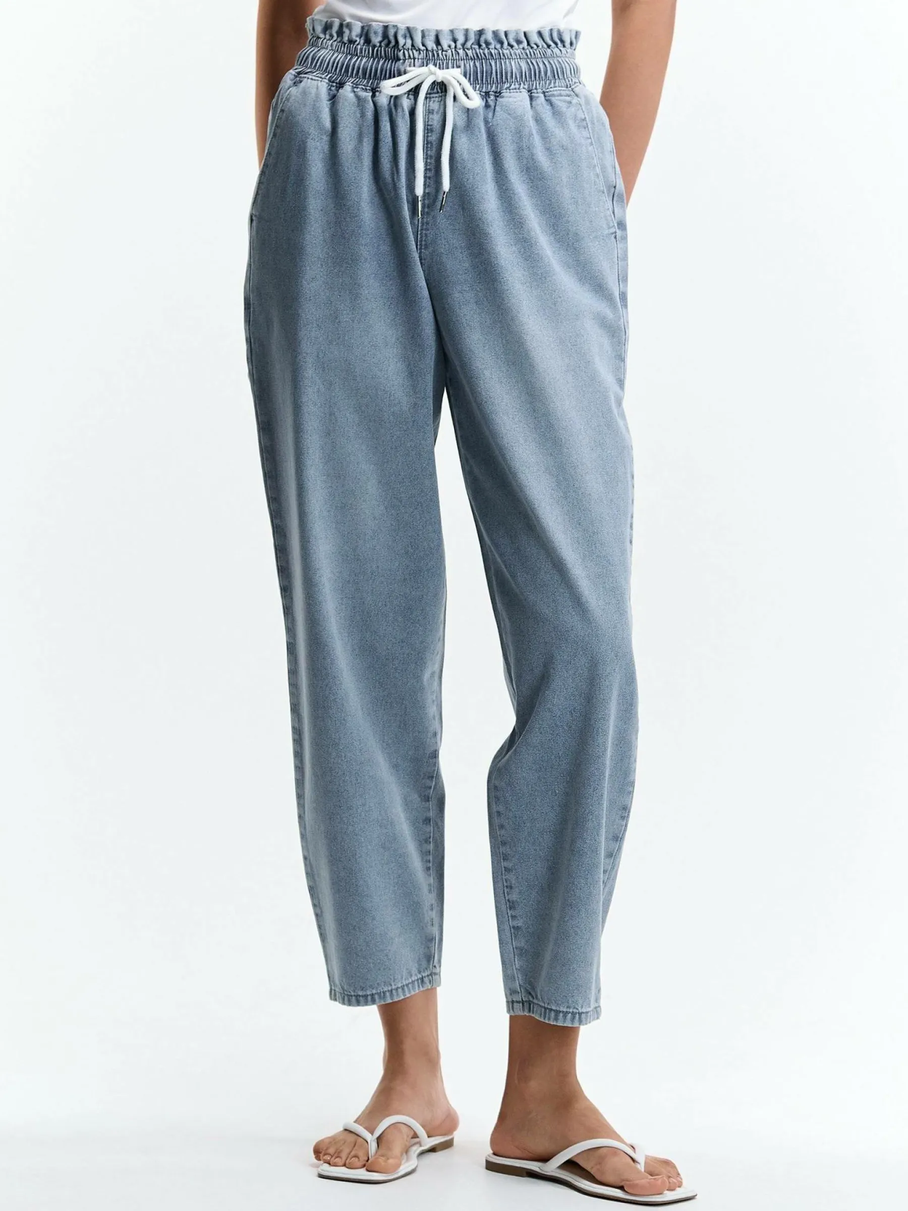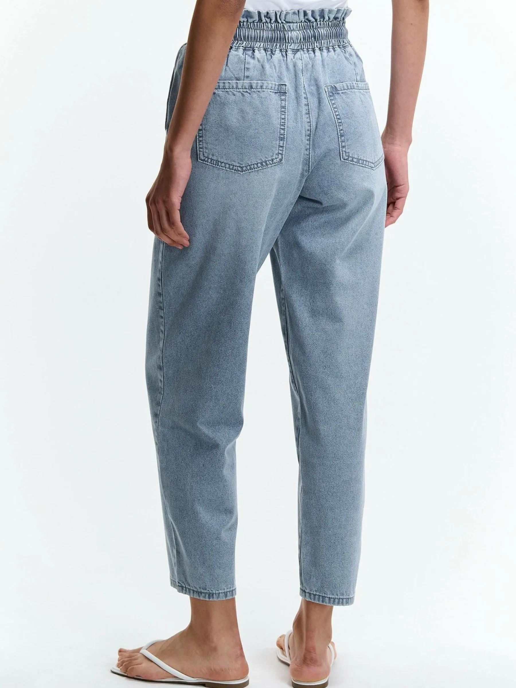 Kolor: niebieskiKrój: paperbagTyp: jeansDługość: dlugiePattern style: pojedynczy kolorMateriał: dżinsowePłeć: ko…