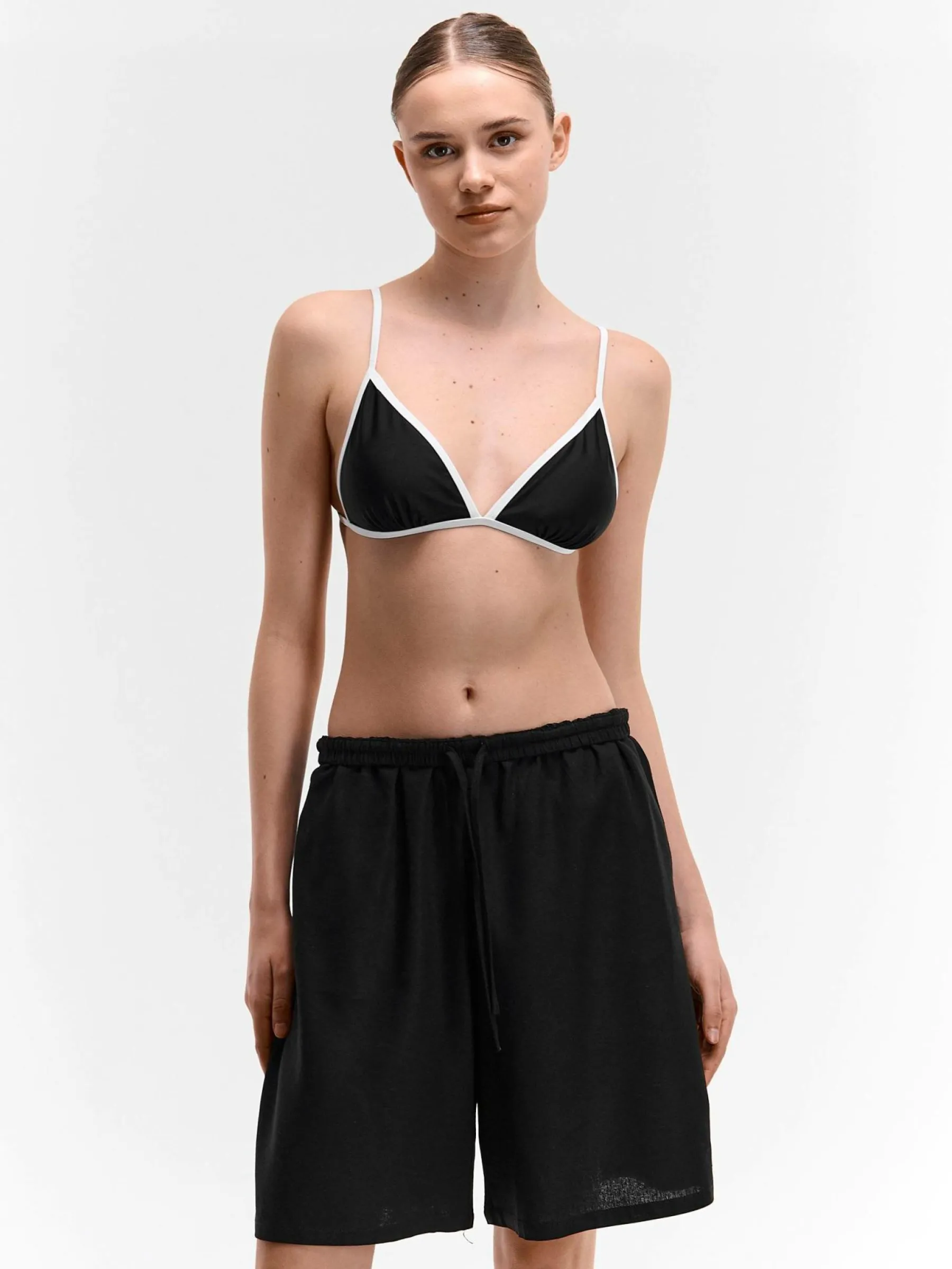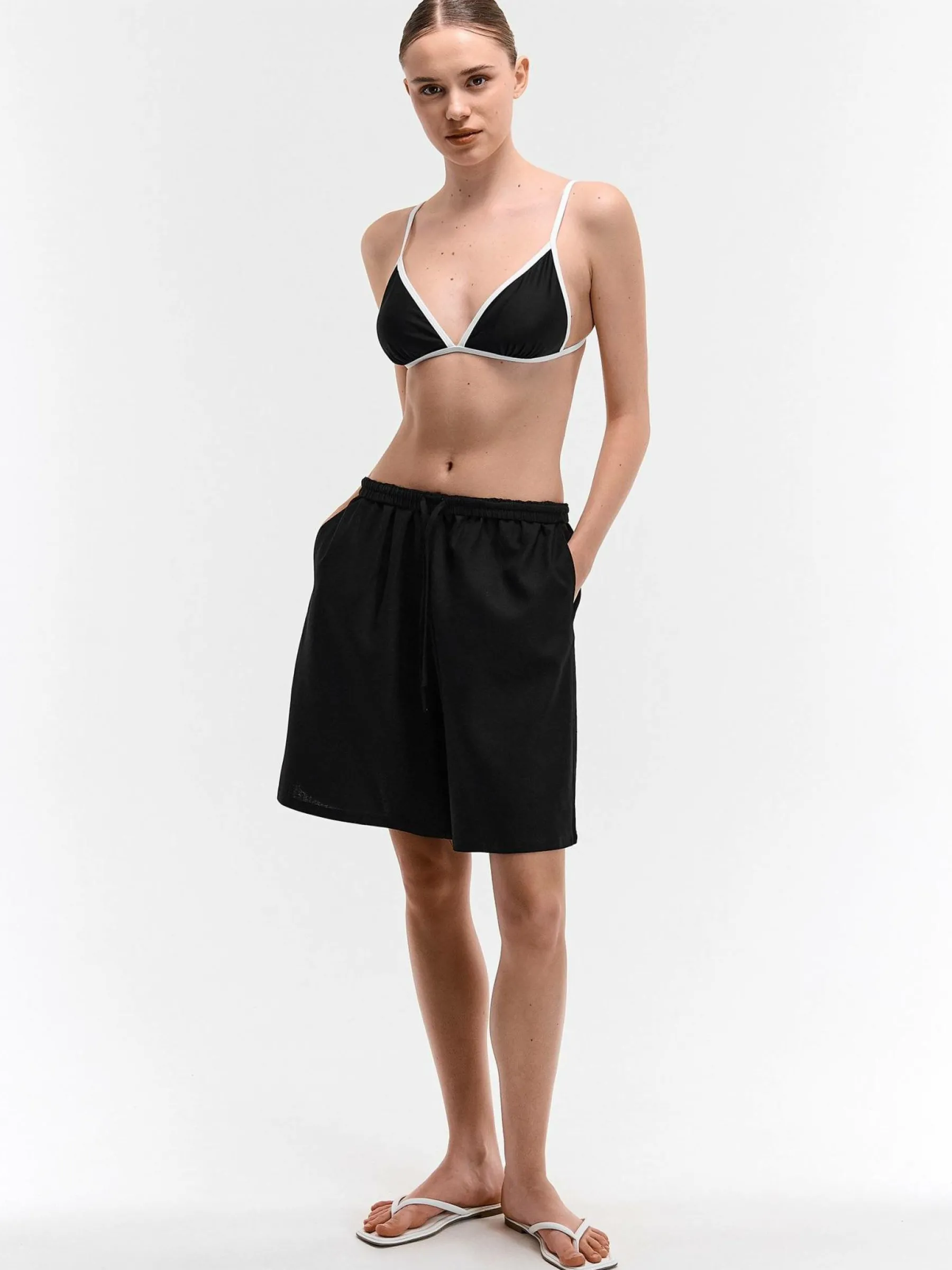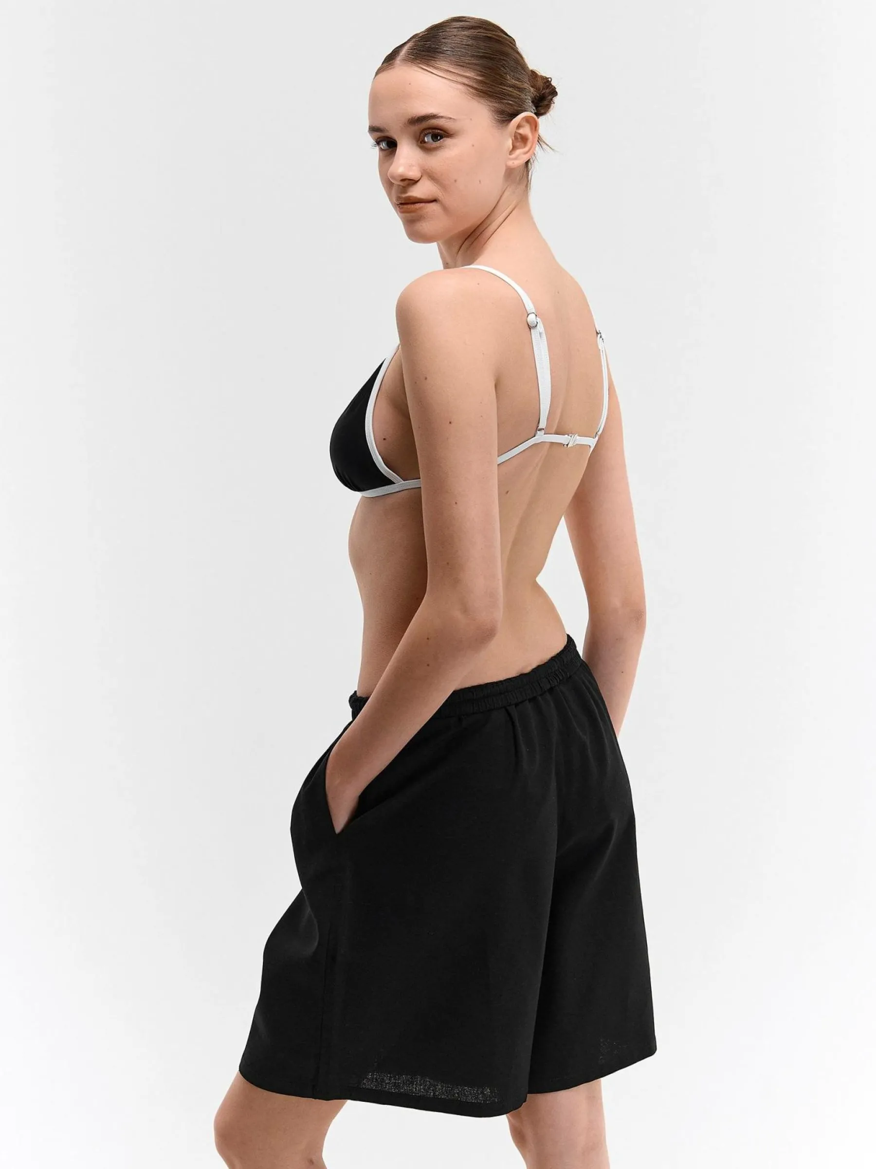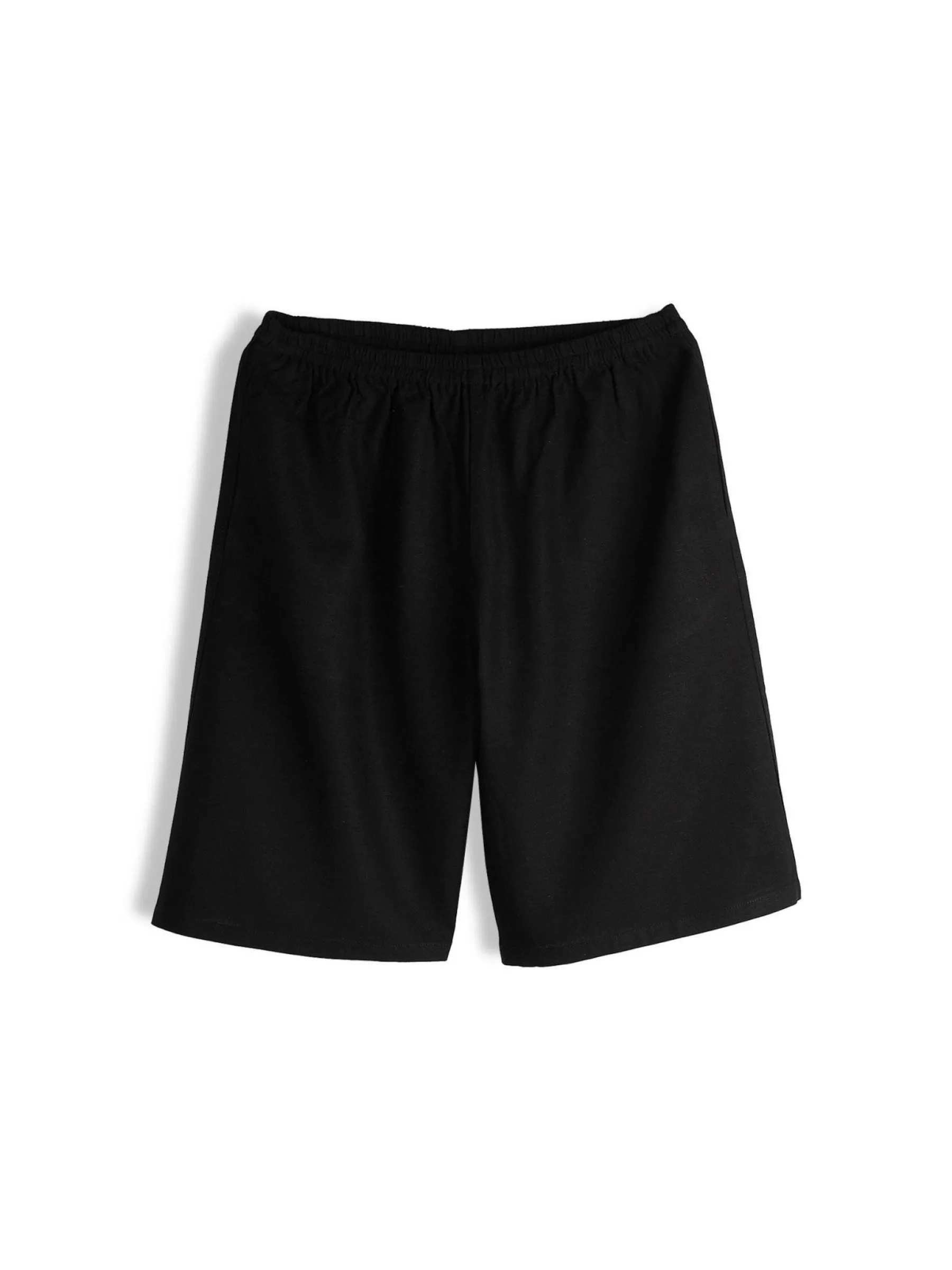 Kolor: czarnyKrój: straightTyp: spodenkiDługość: krótkiPattern style: pojedynczy kolorDetal: z elastyczną opaskąM…