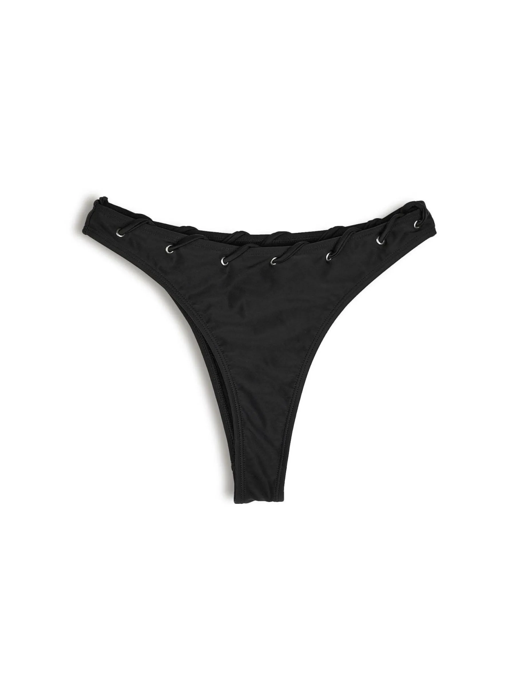 Kolor: czarnyKrój: bikiniTyp: dół bikiniPattern style: pojedynczy kolorMateriał: syntetycznePłeć: kobietyOkazja: s…