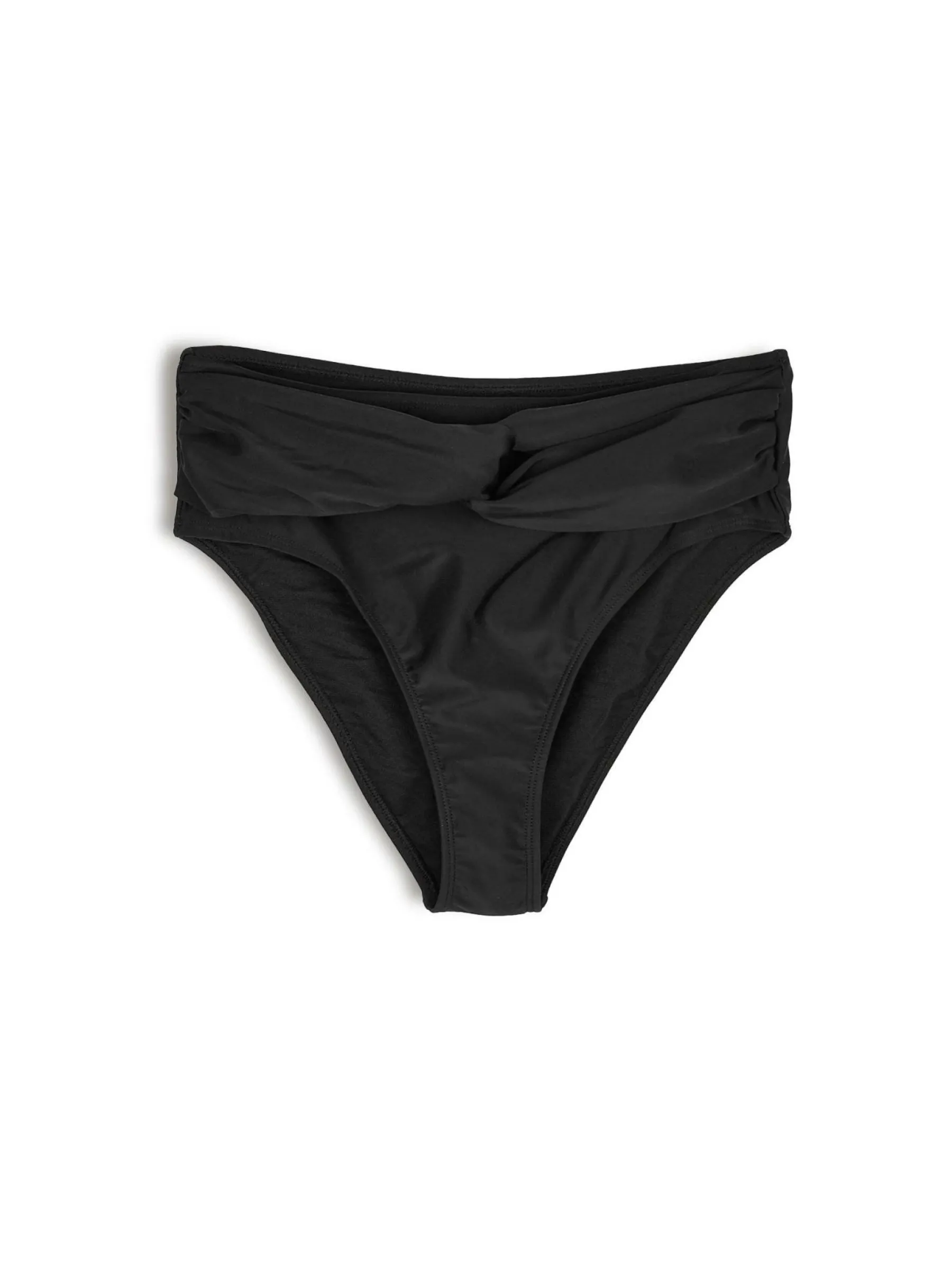 Kolor: czarnyKrój: bikini, z wysokim stanemTyp: dół bikiniPattern style: pojedynczy kolorDetal: z węzłemMateriał: …