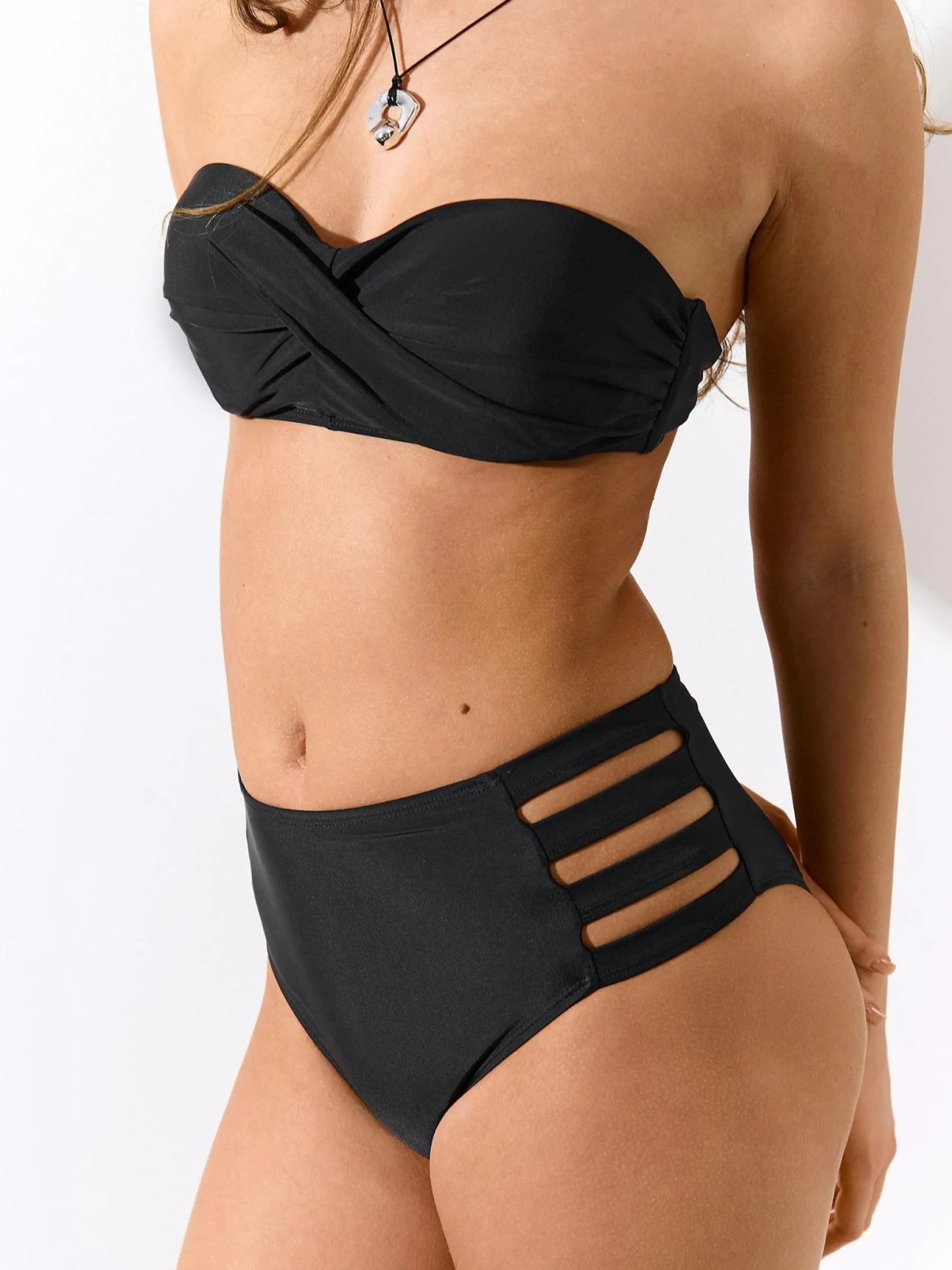 Kolor: czarnyKrój: z wysokim stanem, bikiniTyp: dół bikiniPattern style: pojedynczy kolorMateriał: syntetycznePłeć…