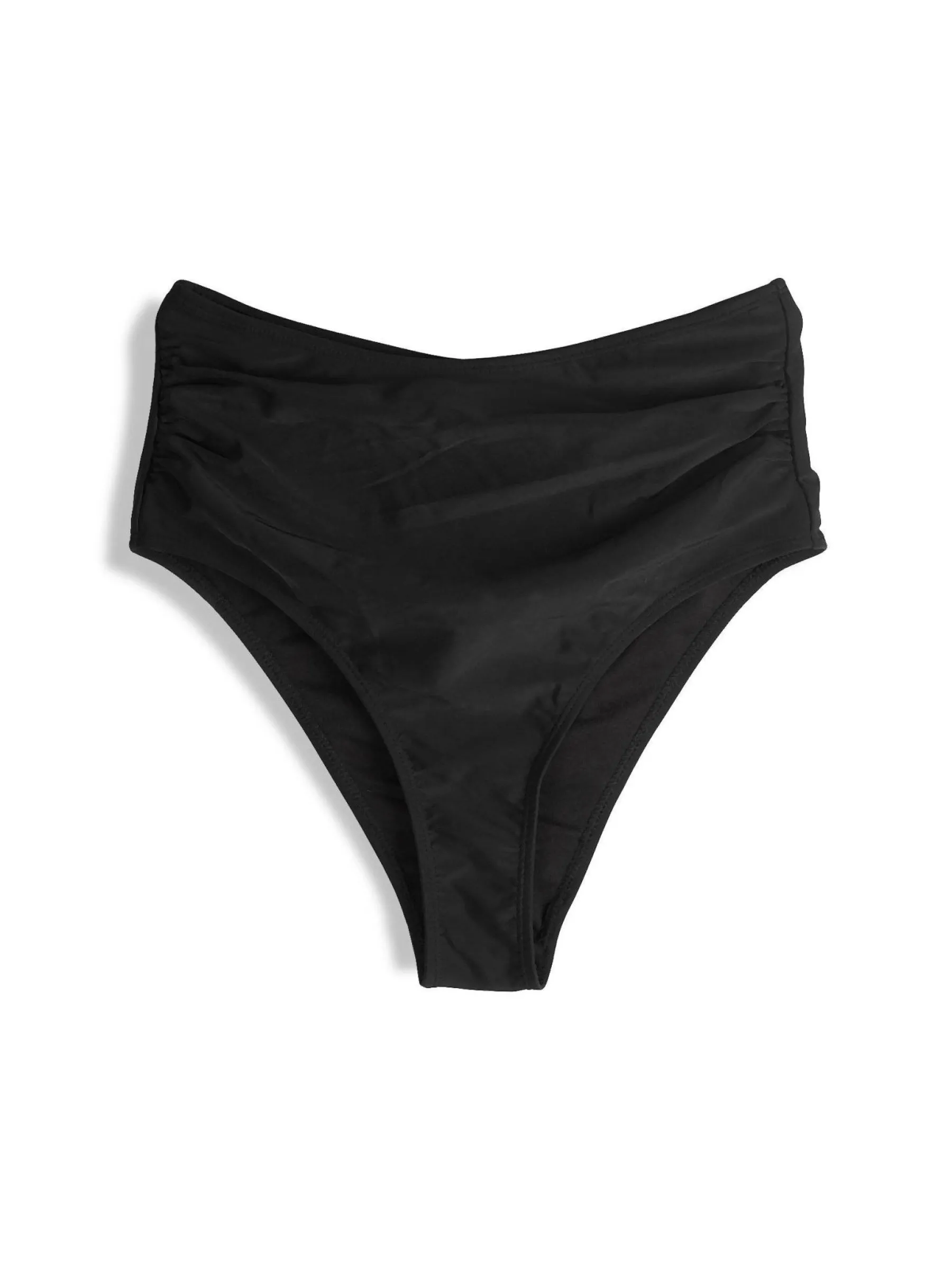 Kolor: czarnyKrój: z wysokim stanemTyp: dół bikiniPattern style: pojedynczy kolorDetal: z falbankamiMateriał: syntet…