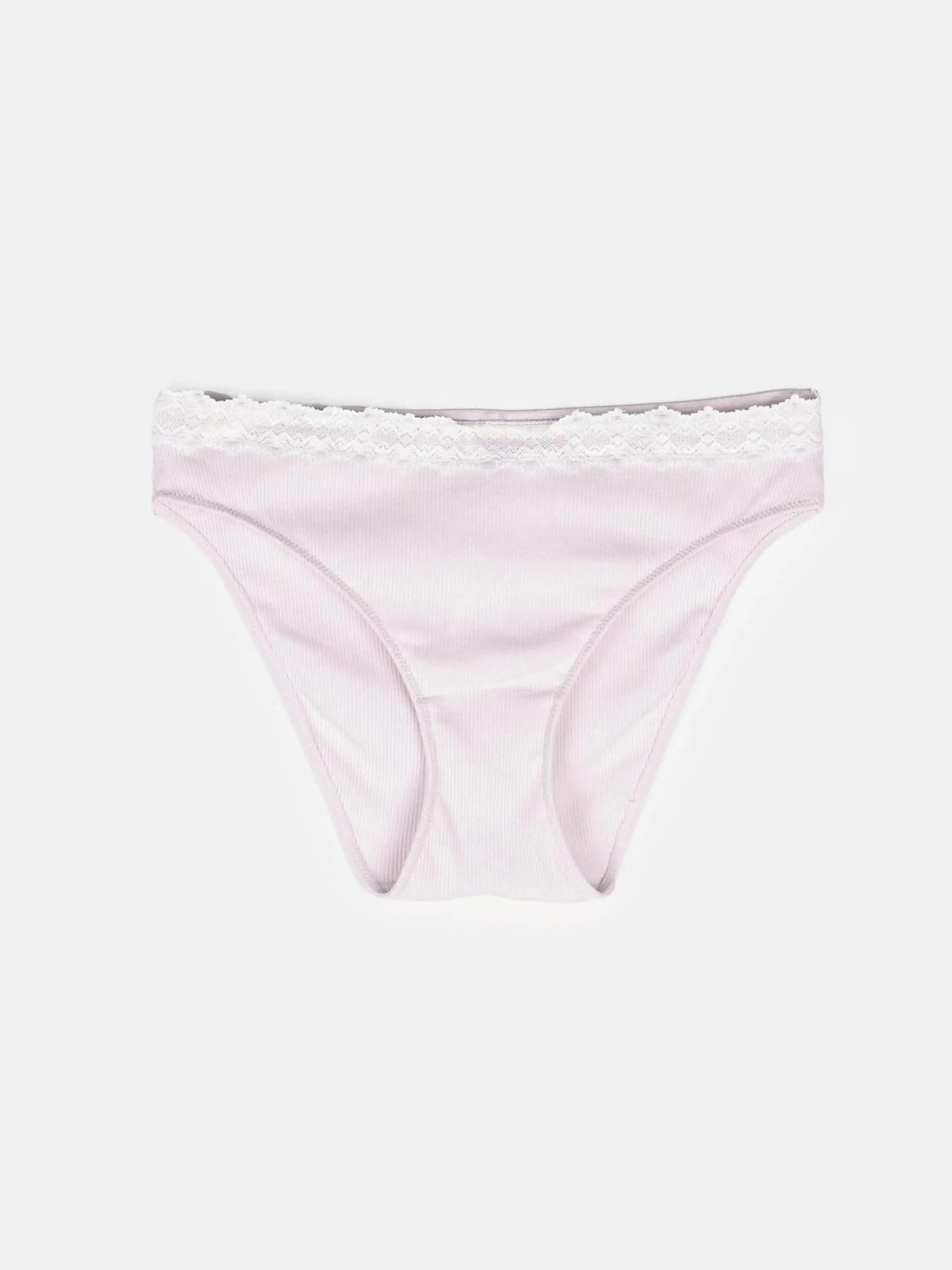 Kolor: różowyKrój: podstawowyTyp: majtkiPattern style: żebrowany, pojedynczy kolorDetal: z koronkąMateriał: baweł…