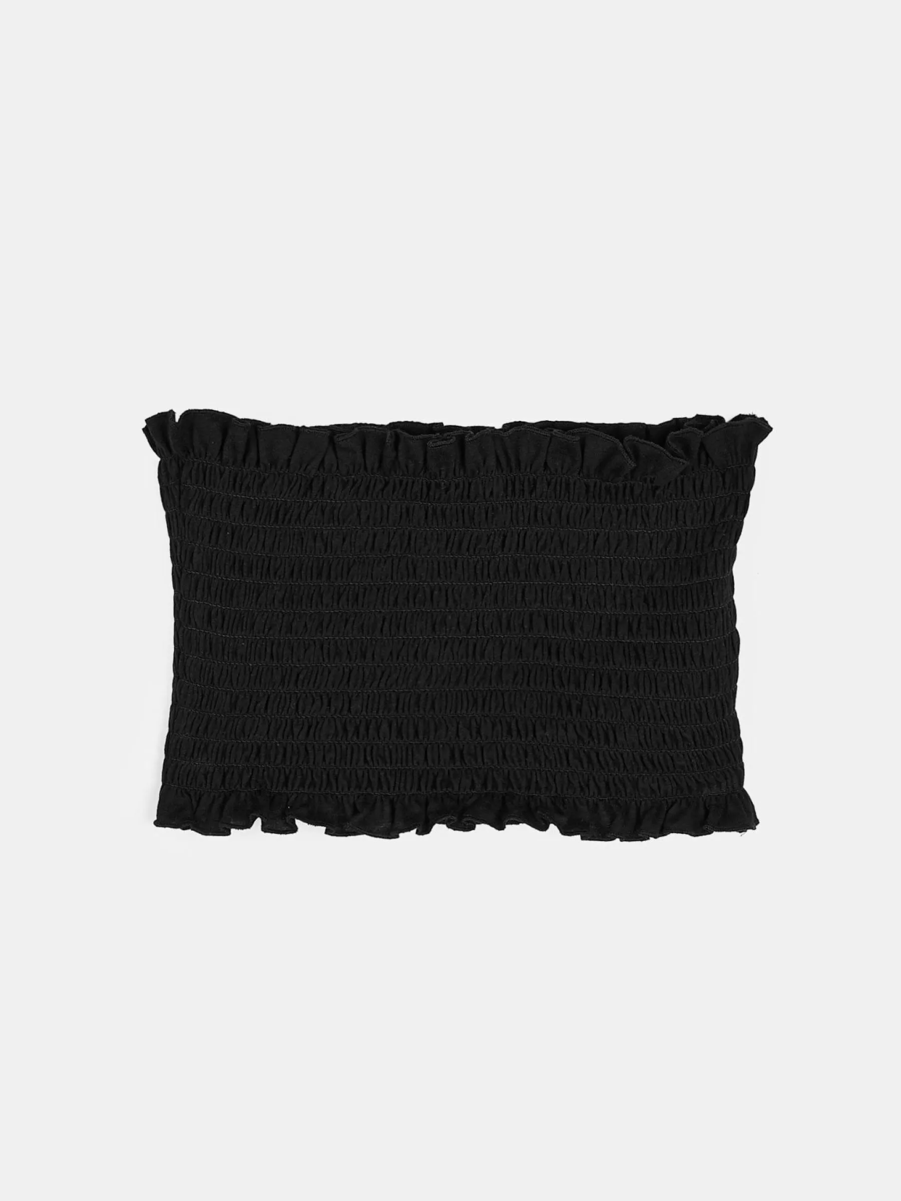 Kolor: czarnyKrój: z marszczeniemTyp: topRekaw: bez rękawówDługość: krótki topPattern style: pojedynczy kolorDeta…