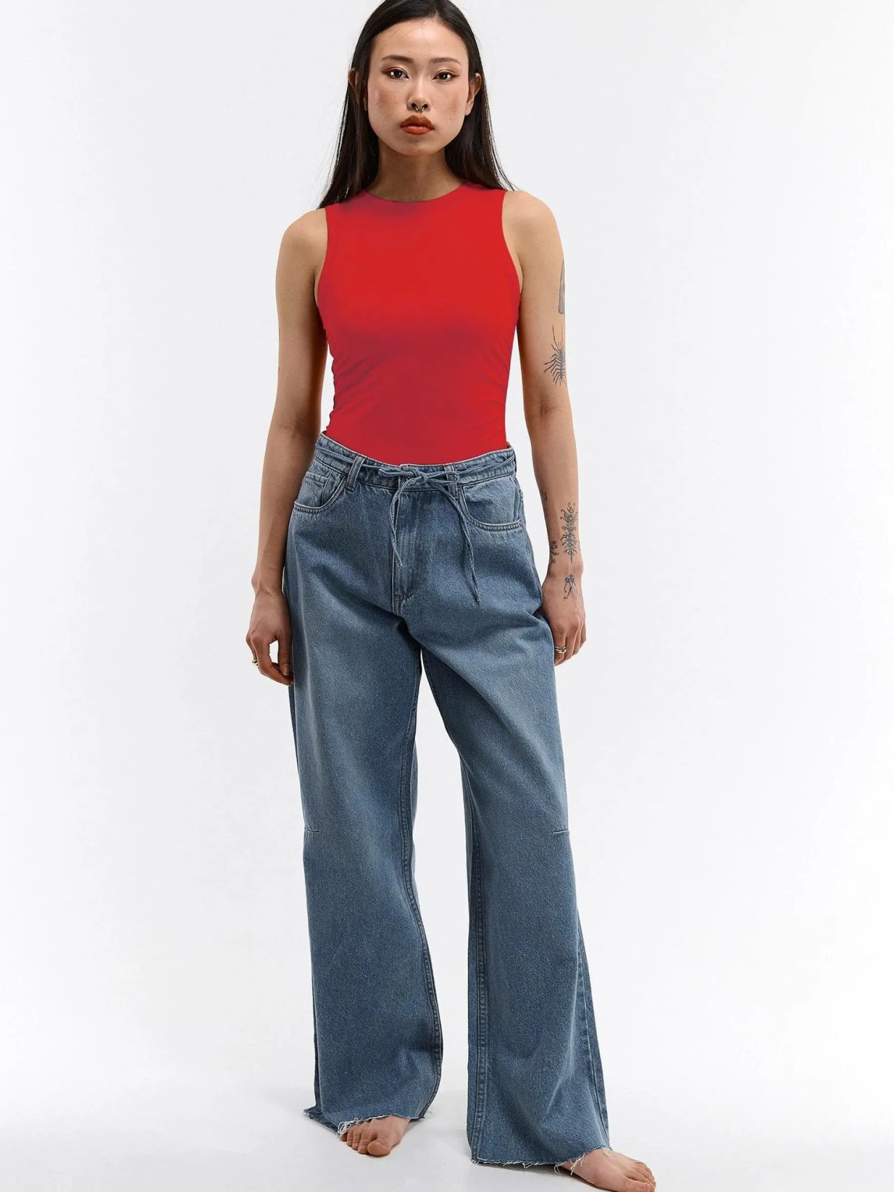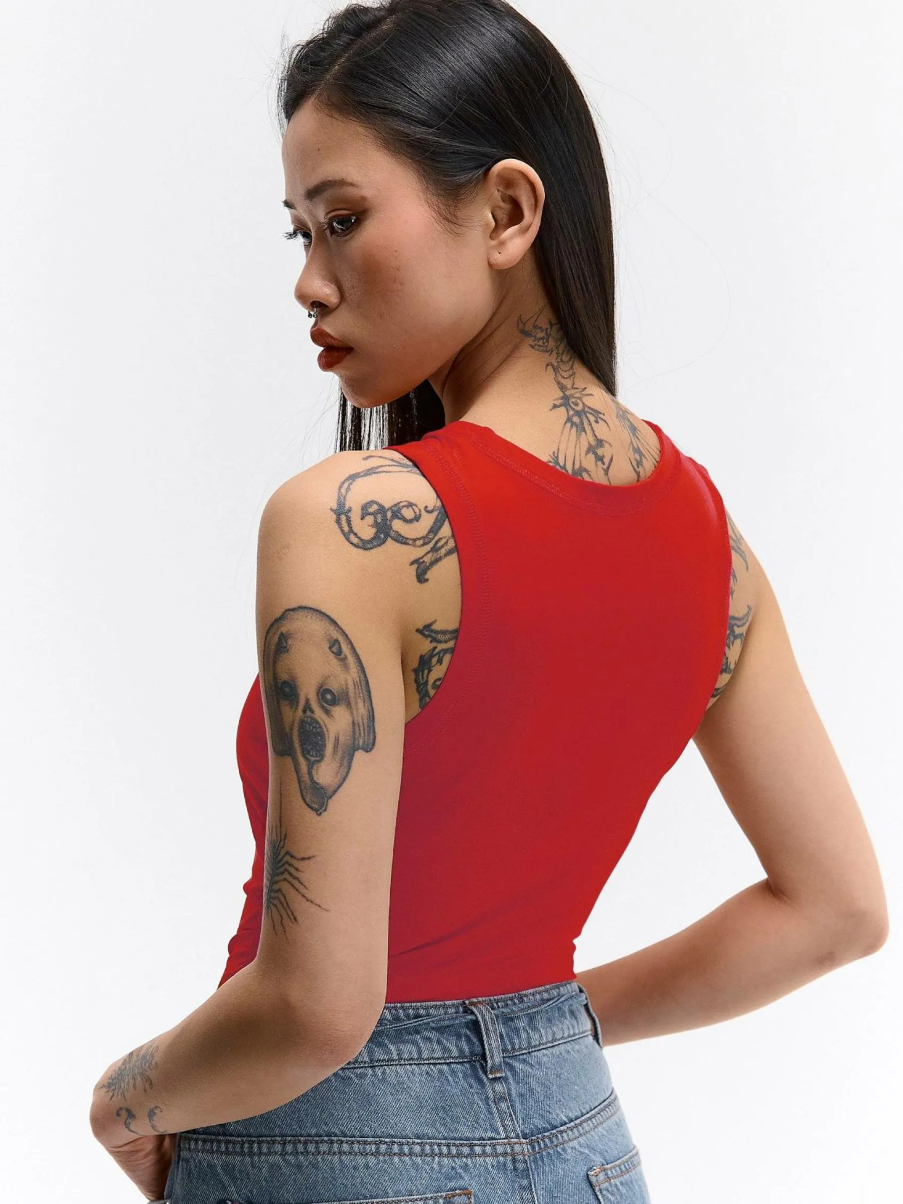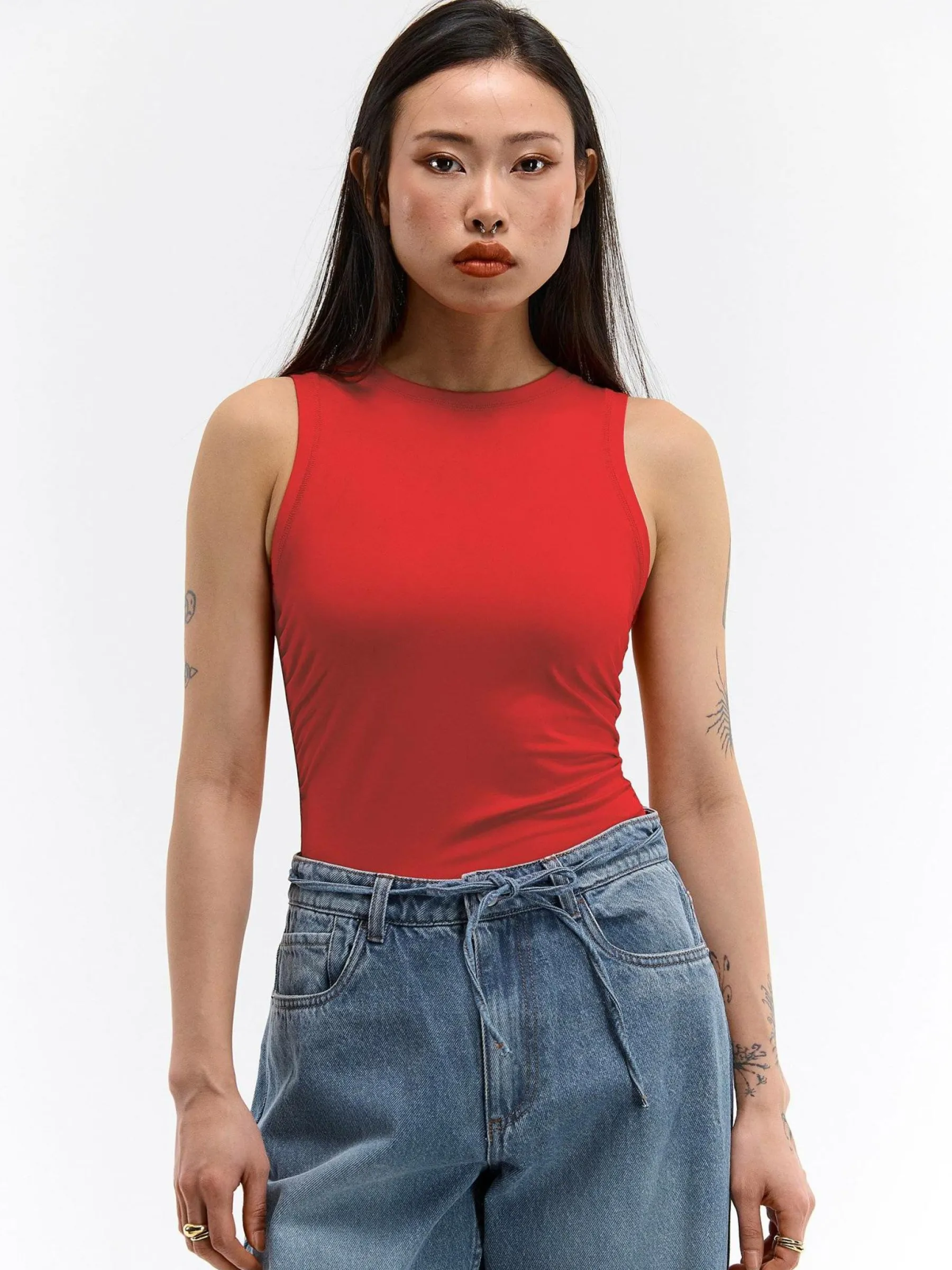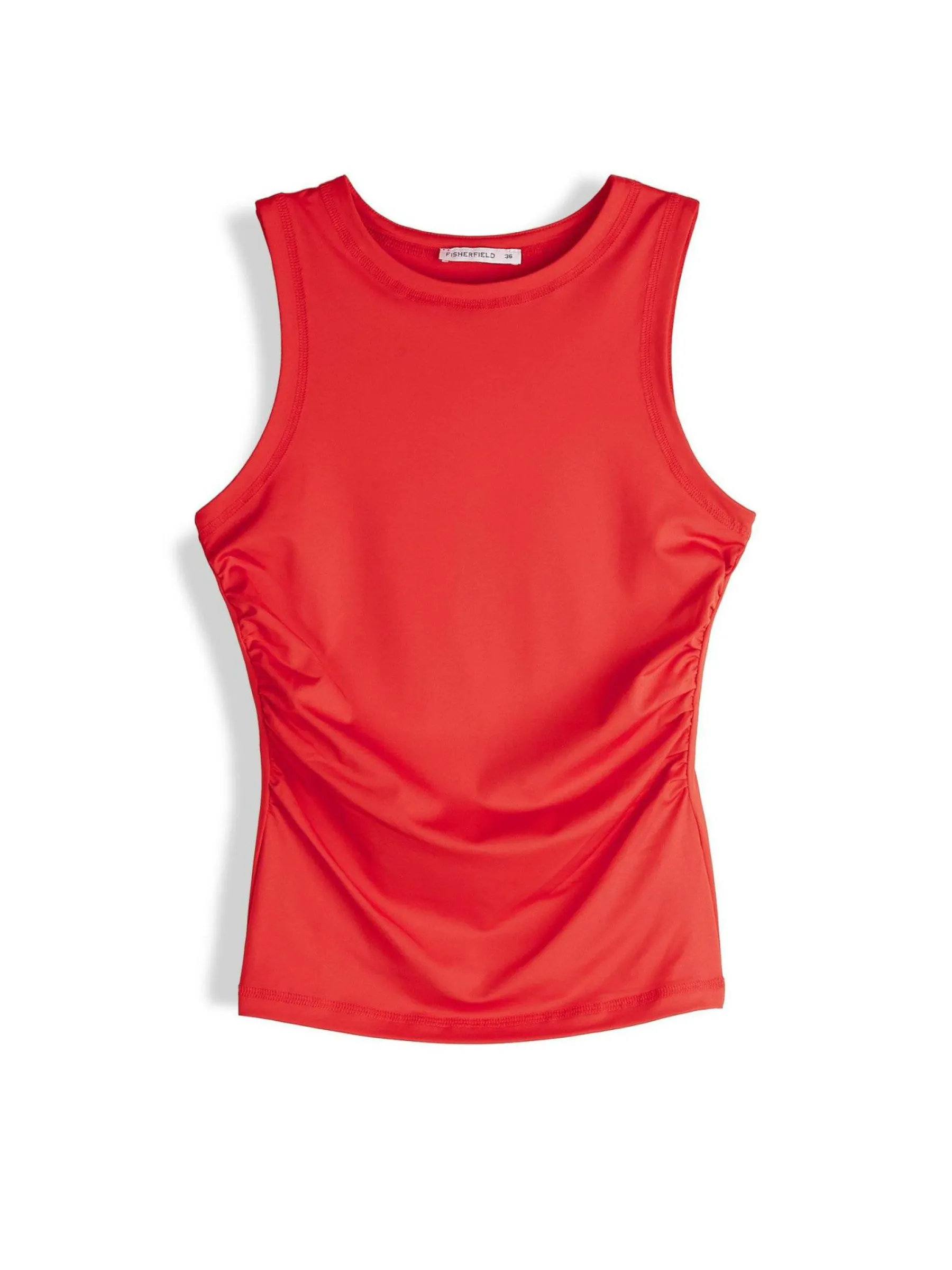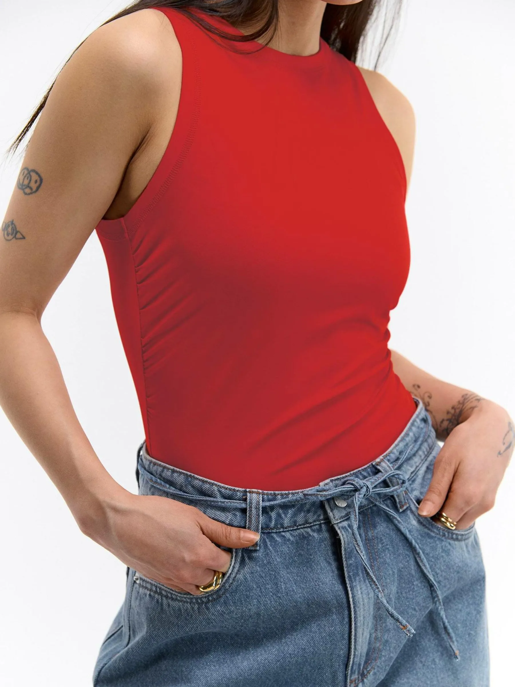 Kolor: czerwonyKrój: z marszczeniemTyp: podkoszulekRekaw: bez rękawówDługość: krótkiPattern style: pojedynczy kol…