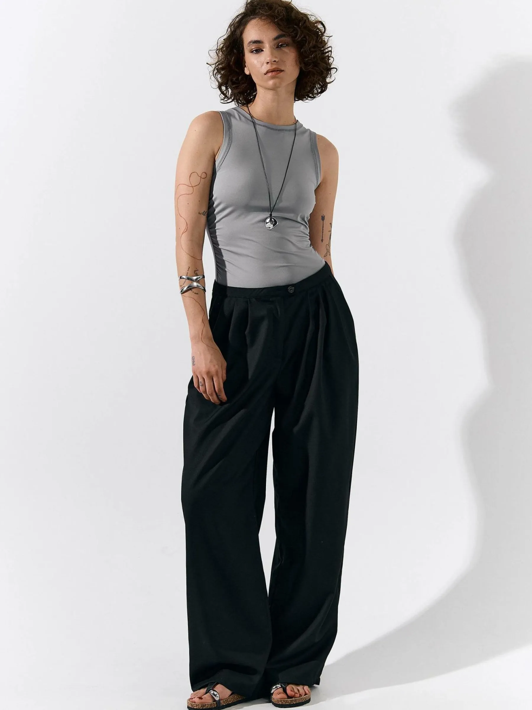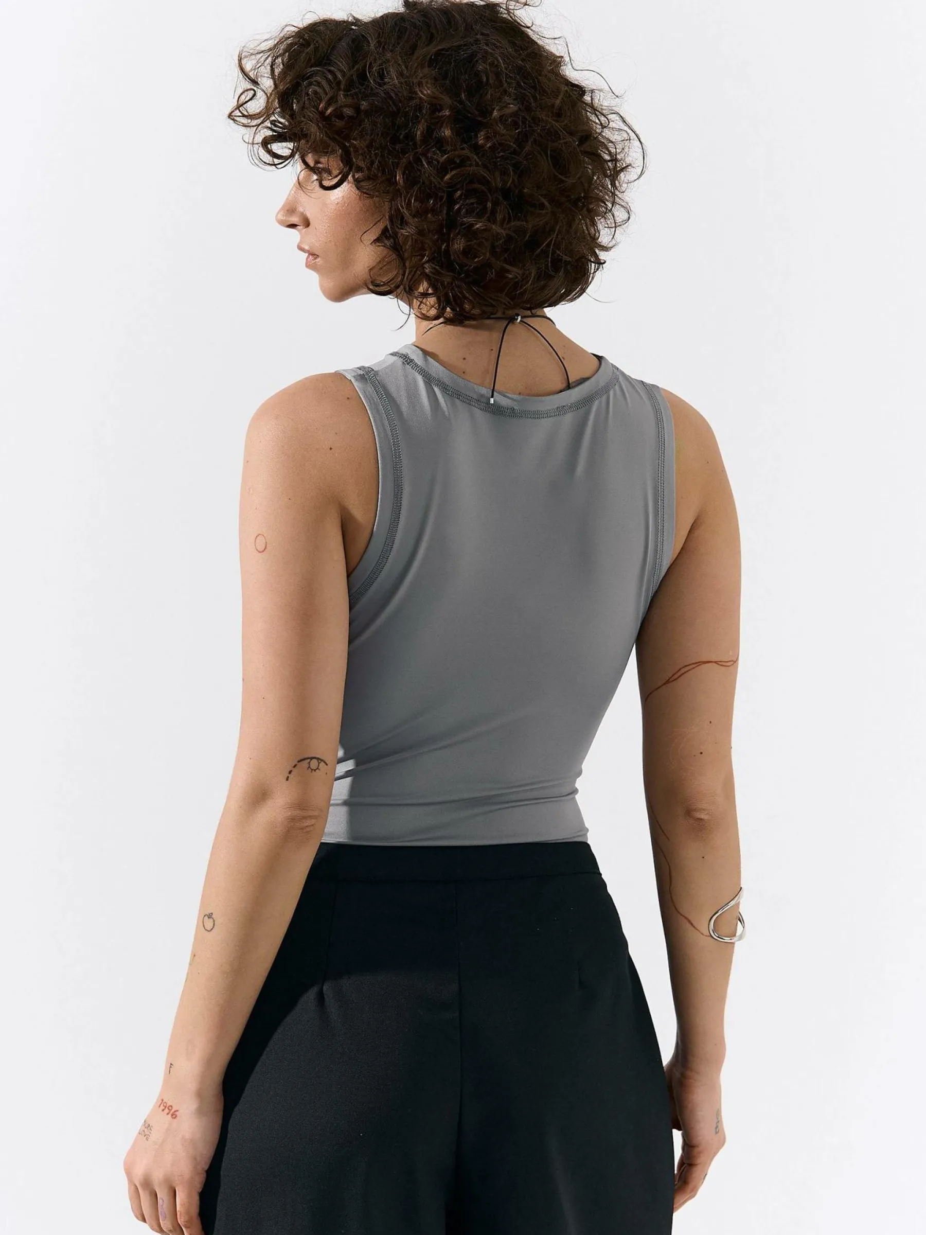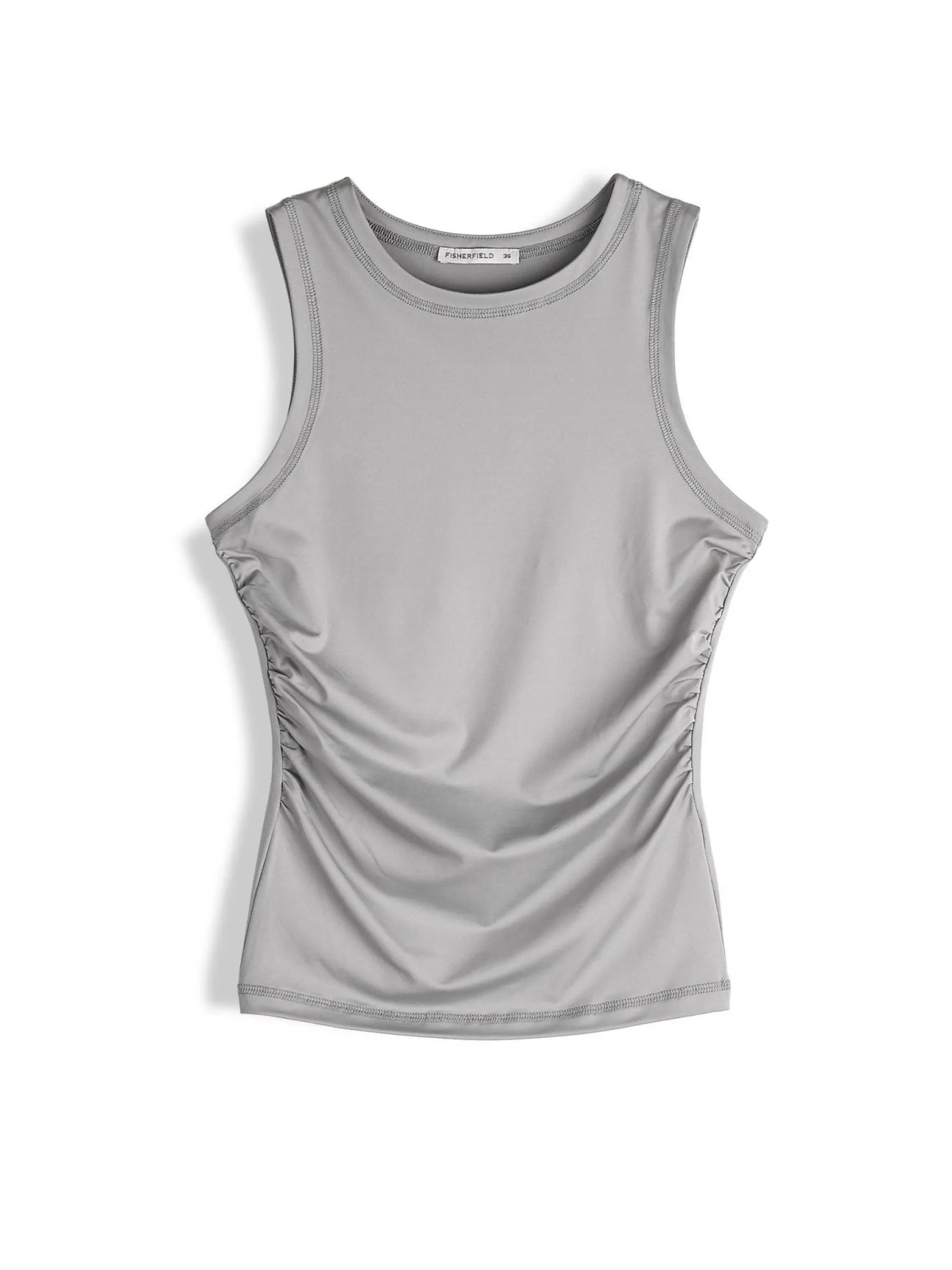 Kolor: szaryKrój: z marszczeniemTyp: podkoszulekRekaw: bez rękawówDługość: krótkiPattern style: pojedynczy kolorD…