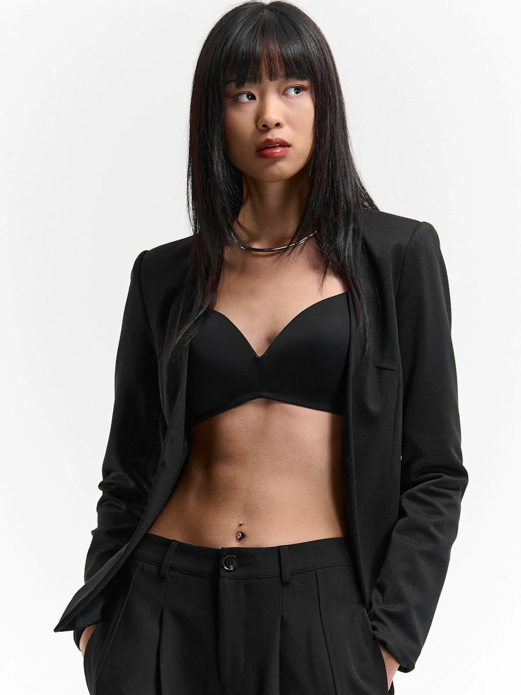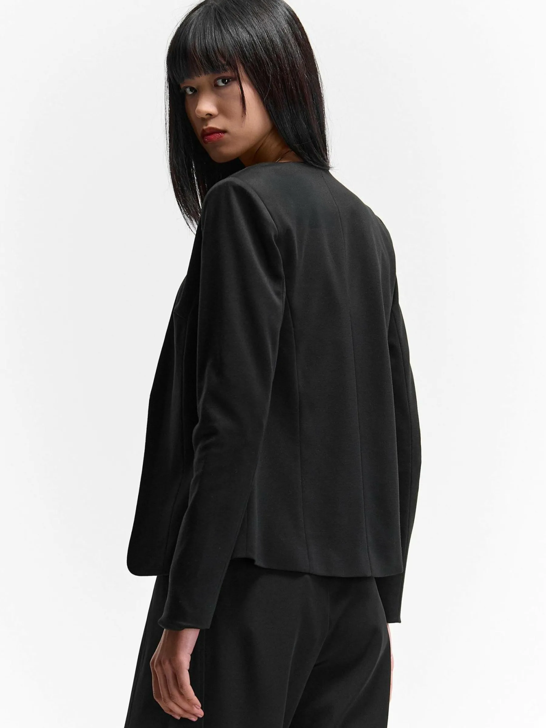 Kolor: czarnyKrój: regularTyp: blezerRekaw: długi rękawDługość: krótkiPattern style: pojedynczy kolorDetal: na ha…
