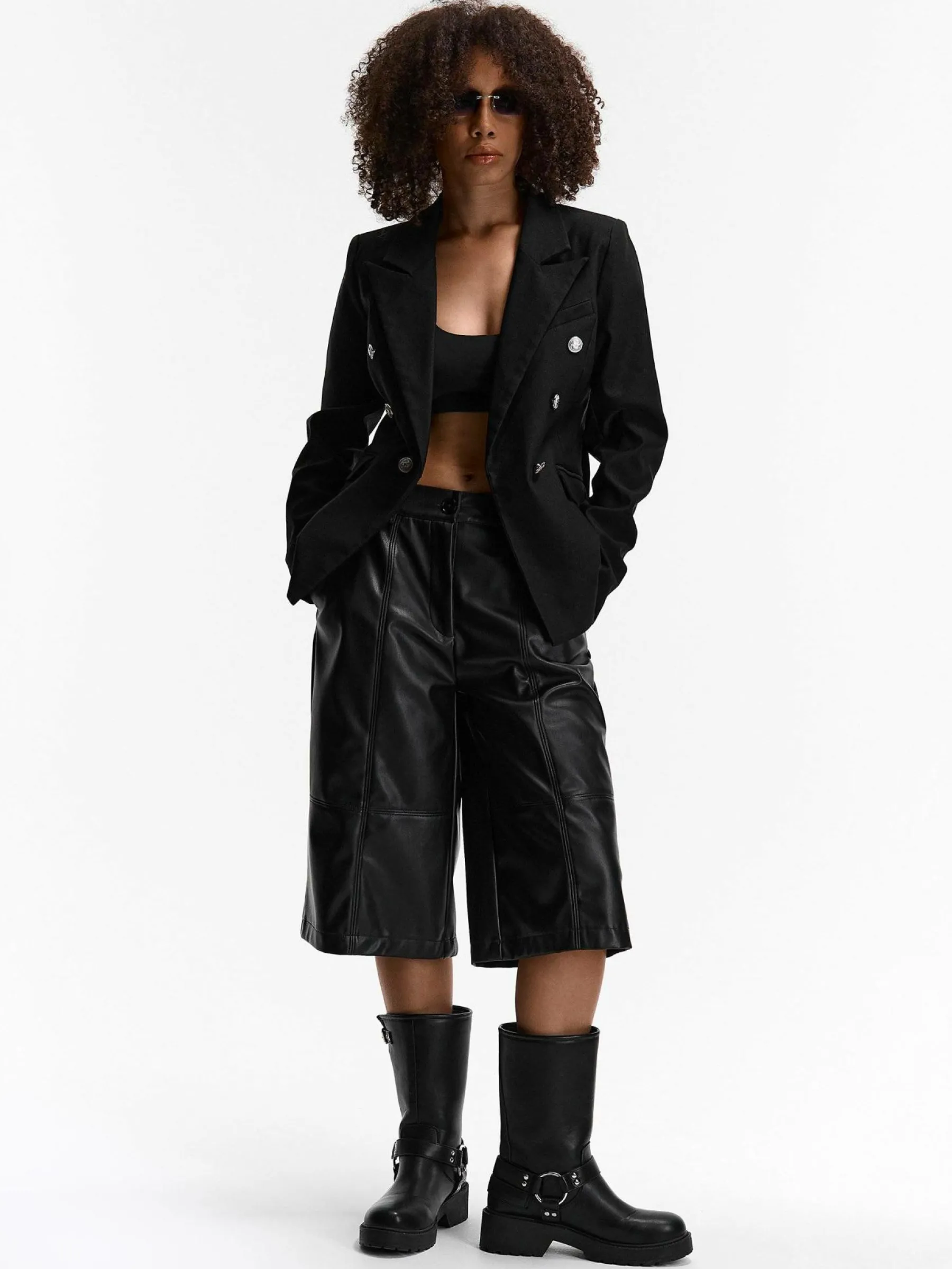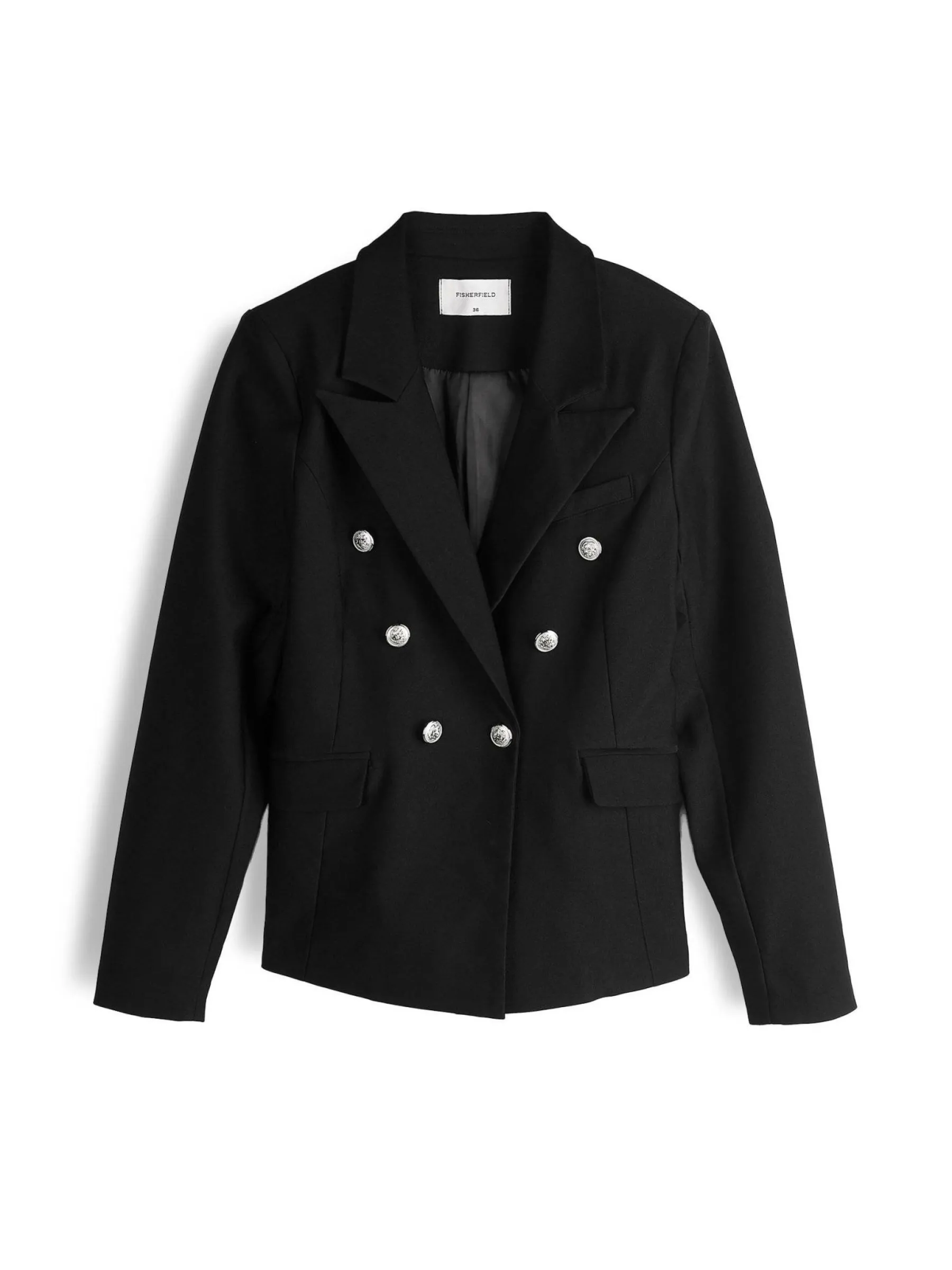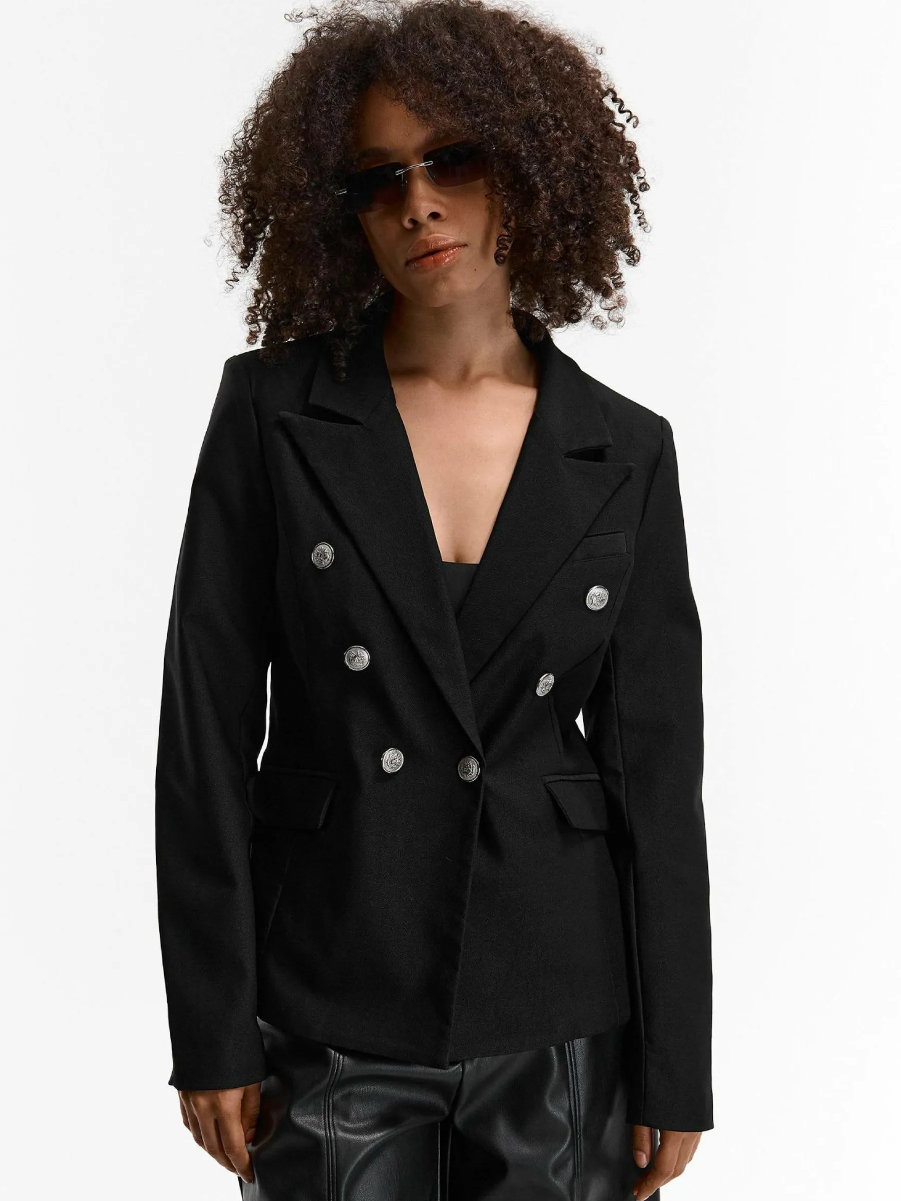 Kolor: czarnyKrój: regularTyp: marynarkaRekaw: długi rękawDługość: krótkiPattern style: pojedynczy kolorDetal: na…