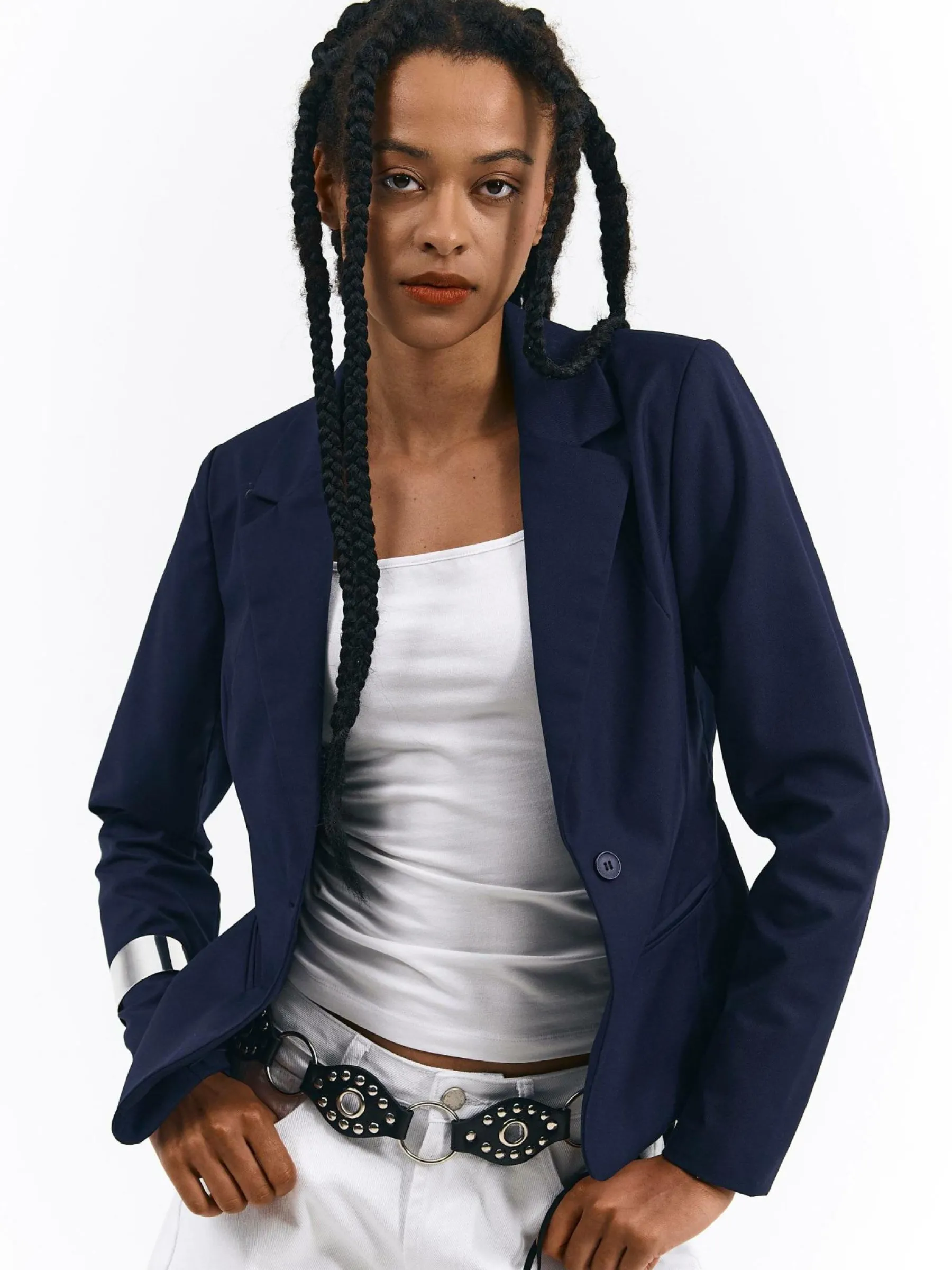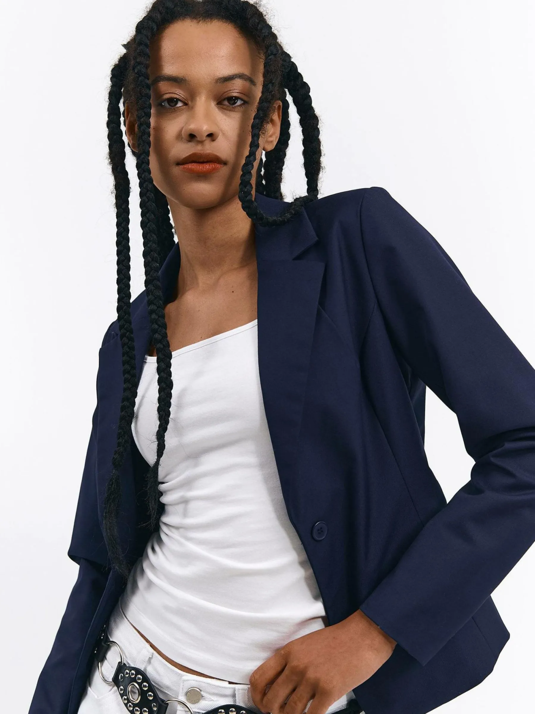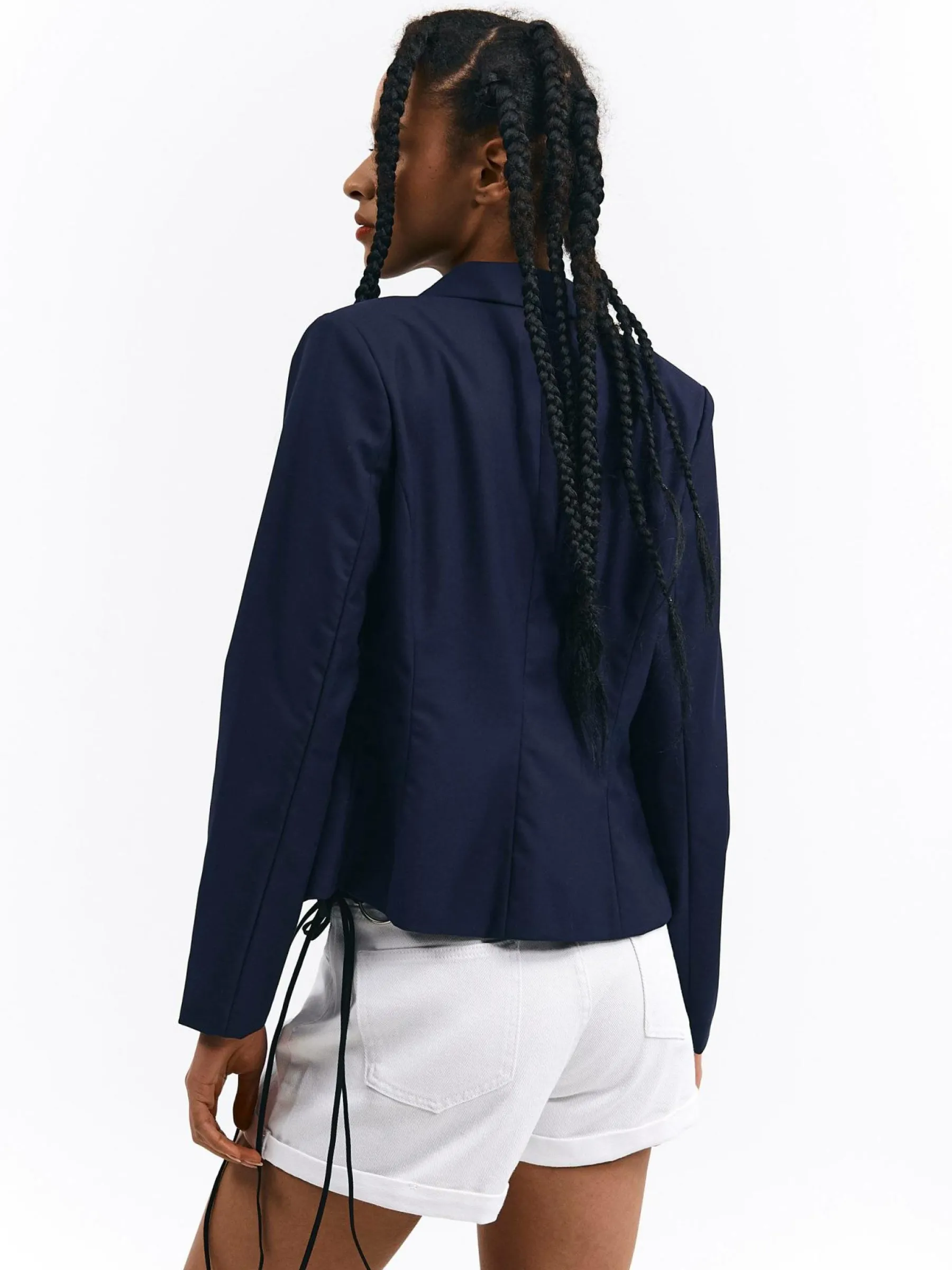 Kolor: granatowyKrój: podstawowyTyp: blezerRekaw: długi rękawDługość: krótkiPattern style: pojedynczy kolorDetal:…