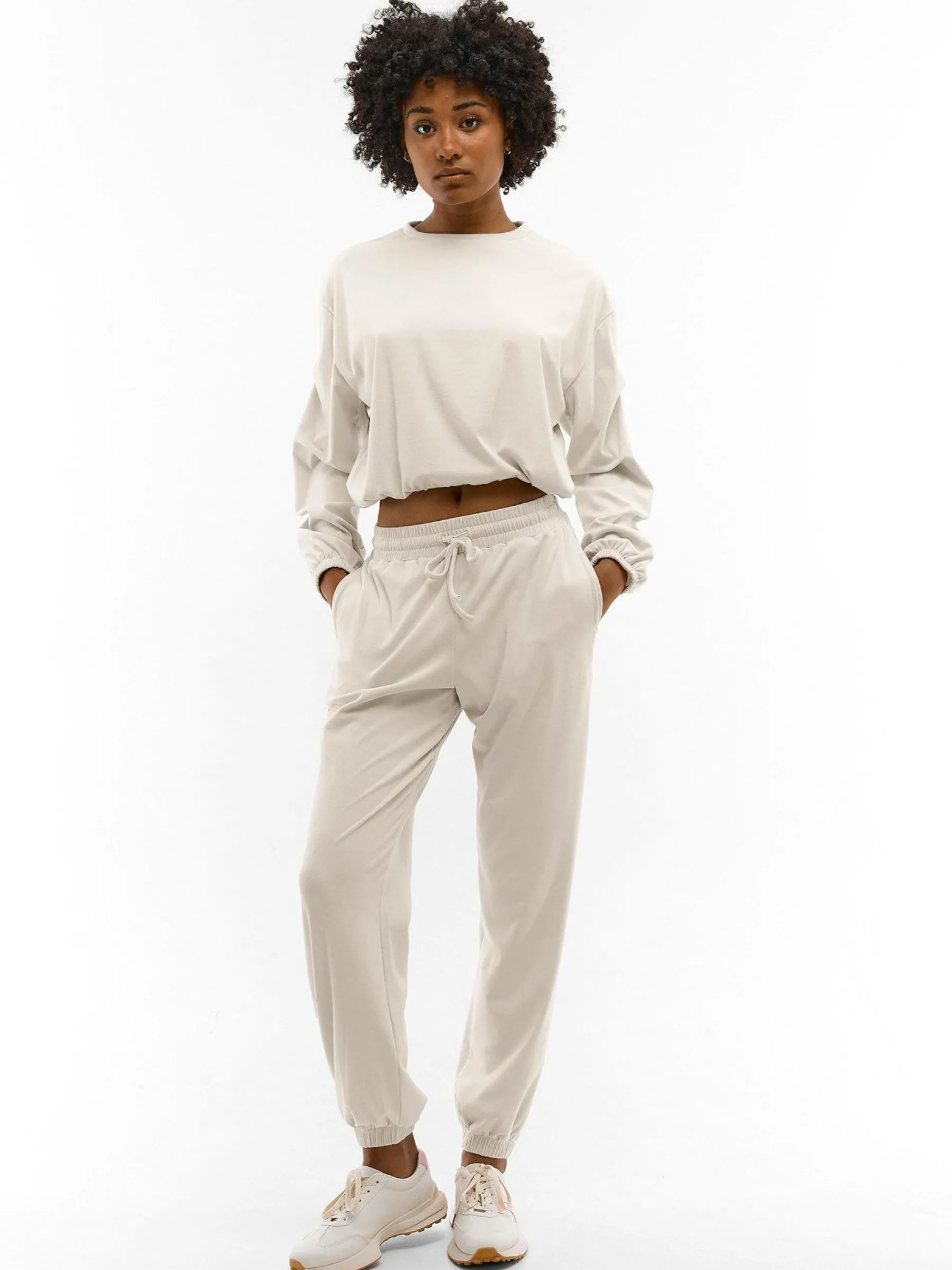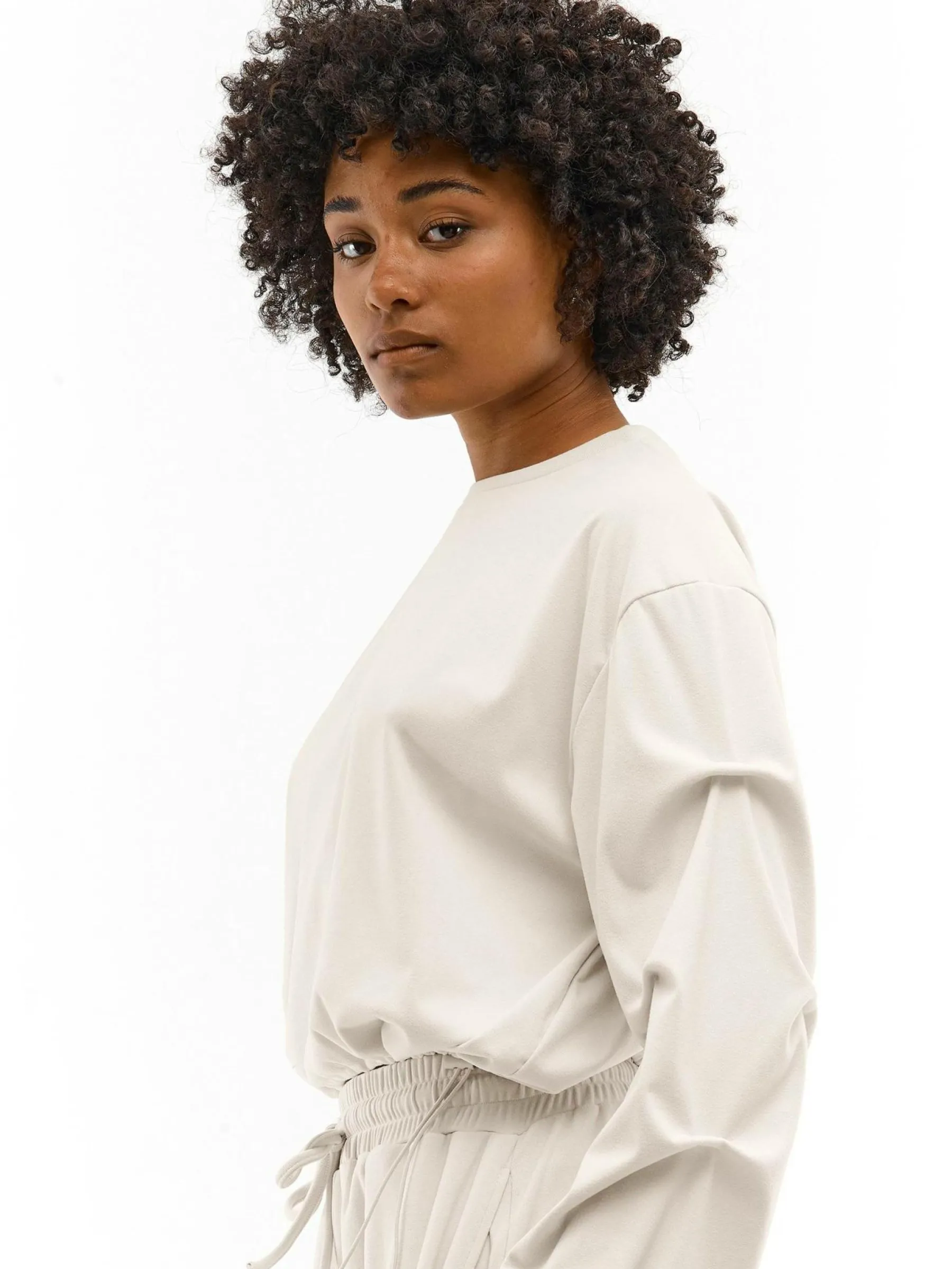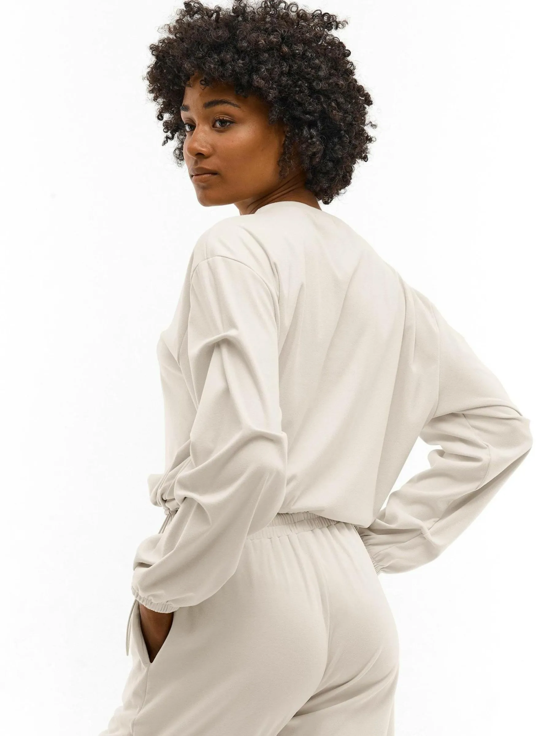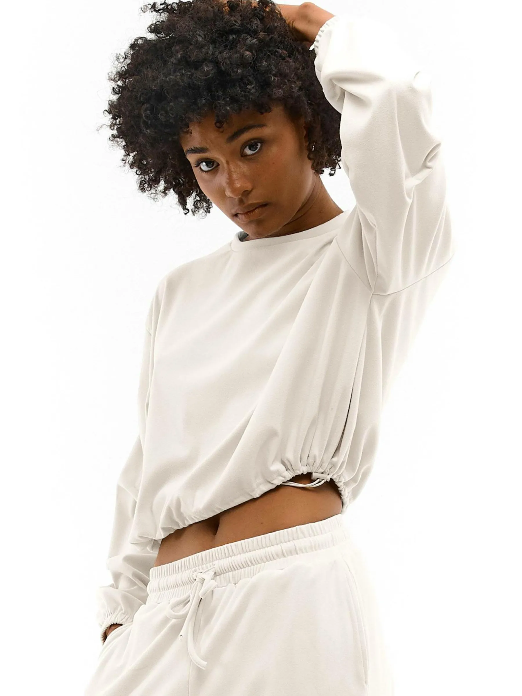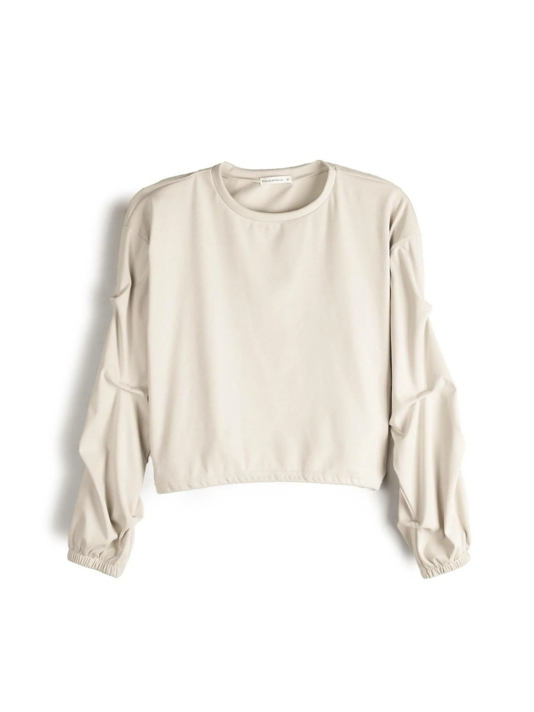 Kolor: beżowyKrój: z marszczeniemTyp: bluzaRekaw: długi rękawDługość: krótkiPattern style: pojedynczy kolorDetal…