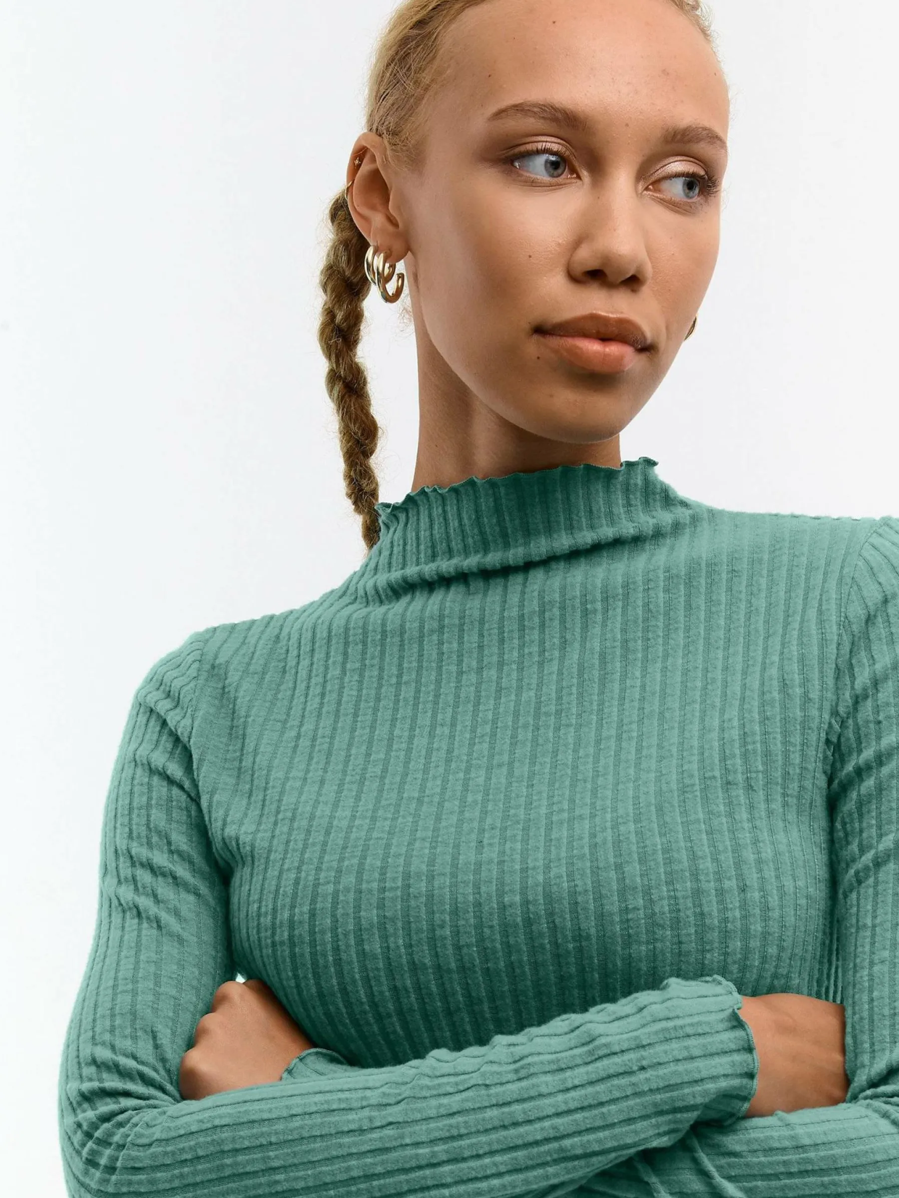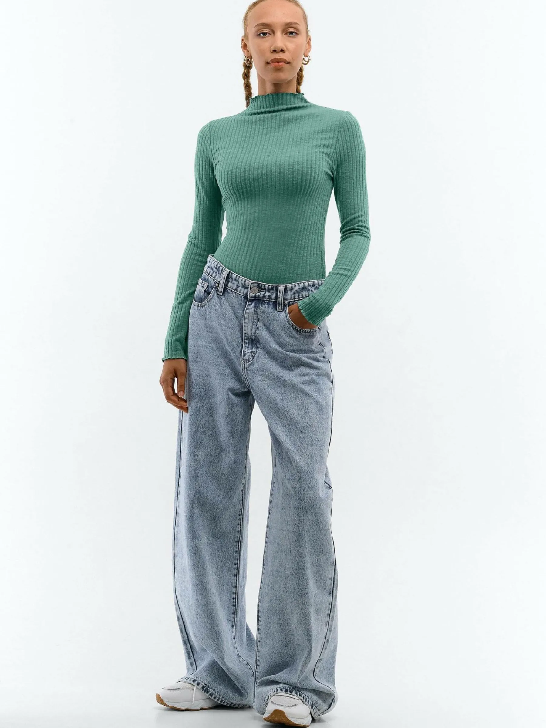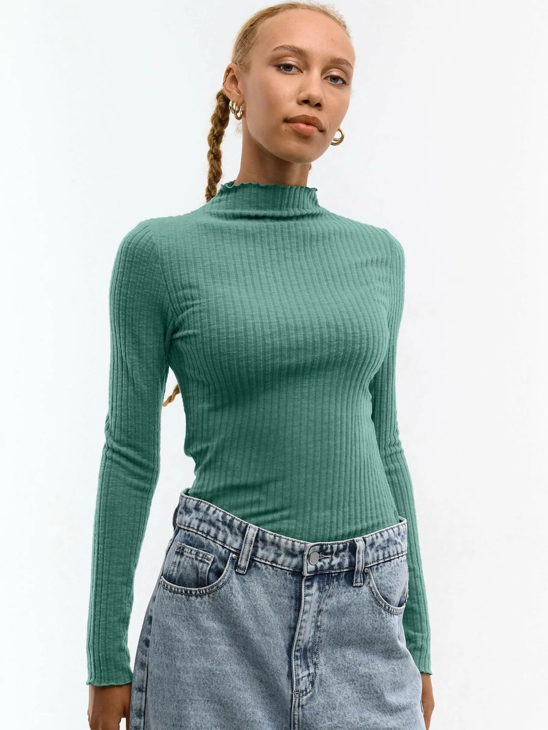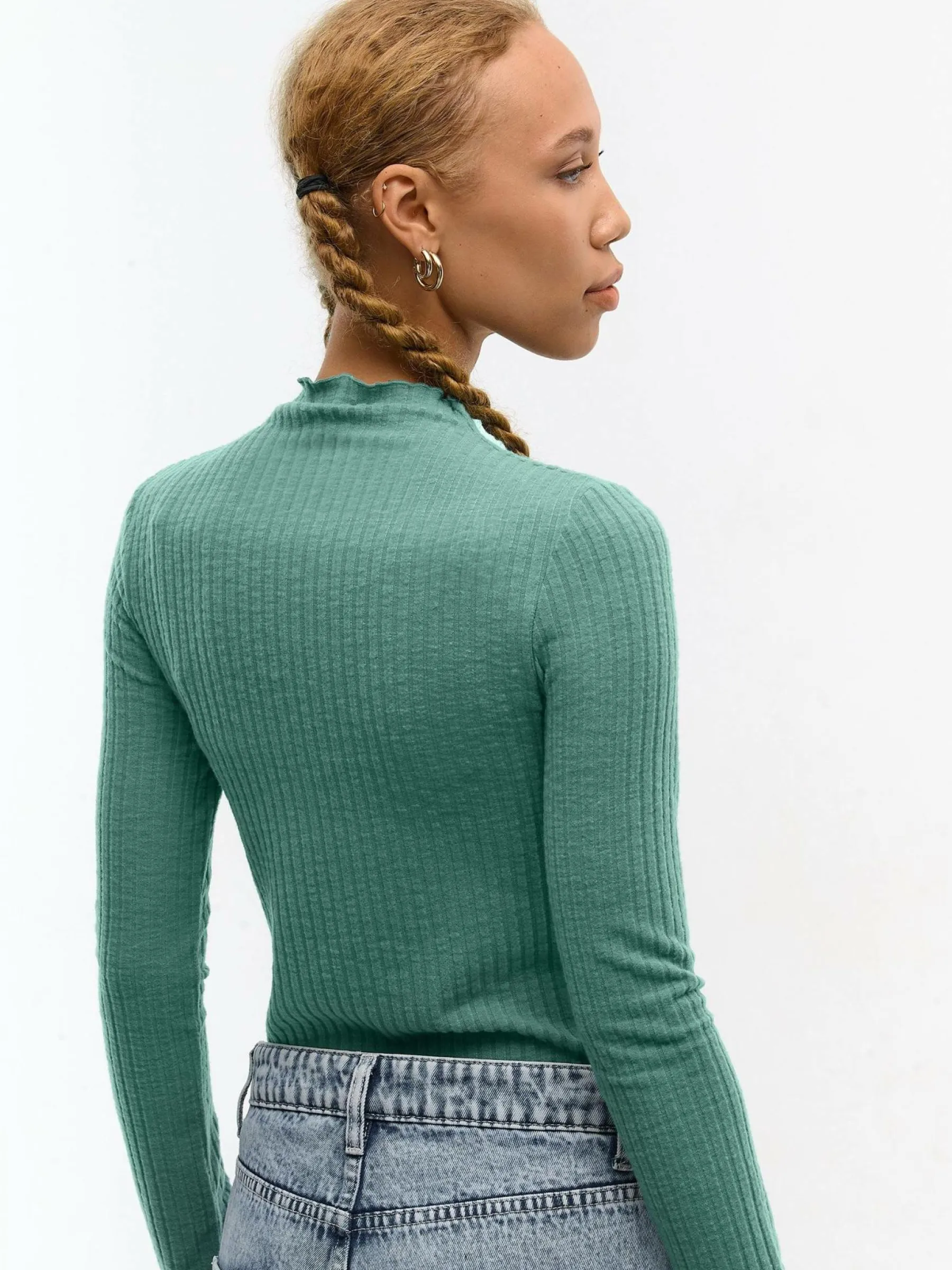 Kolor: zielonyKrój: regularTyp: golfRekaw: długi rękawDługość: krótkiPattern style: pojedynczy kolor, żebrowanyD…