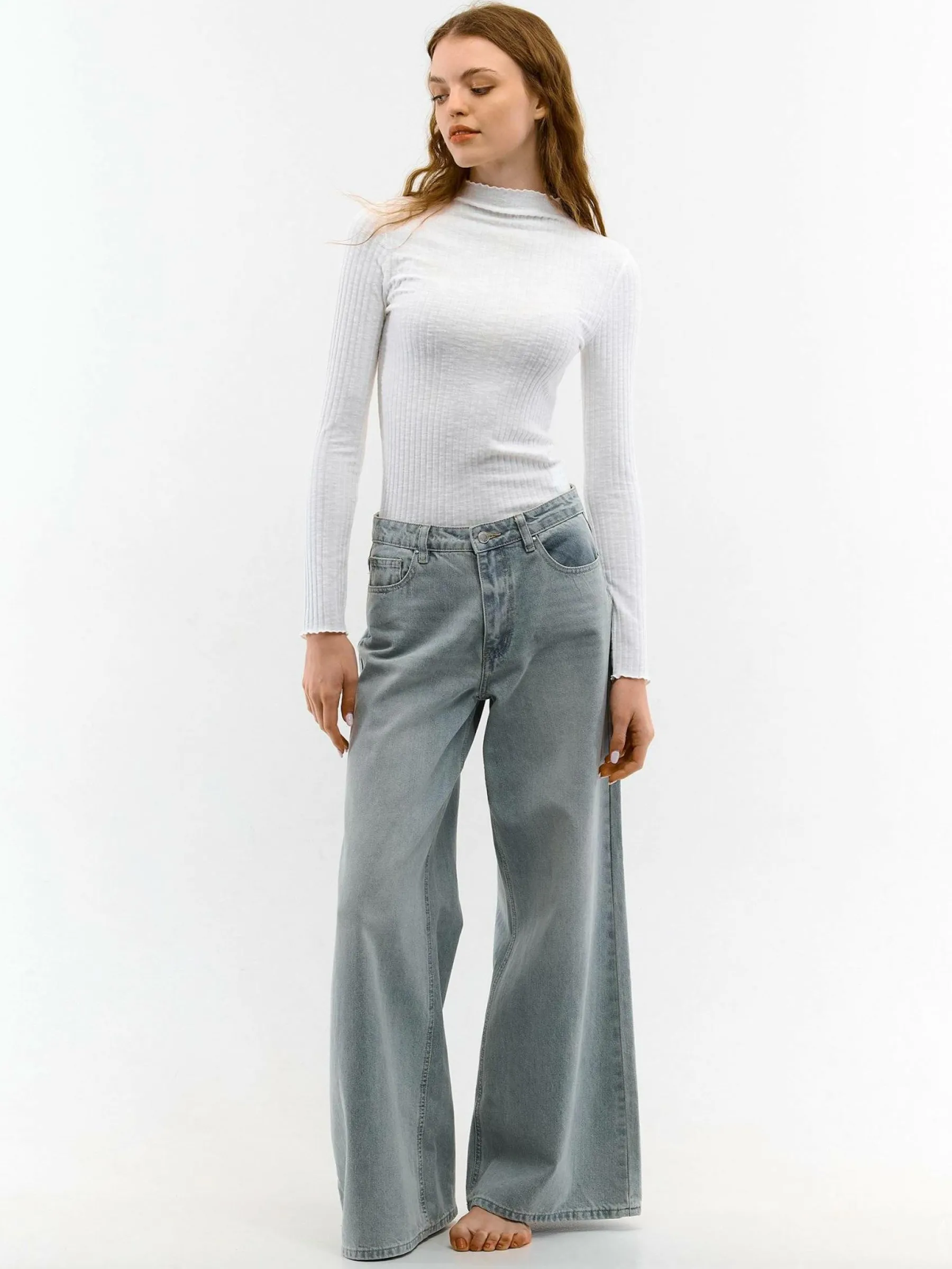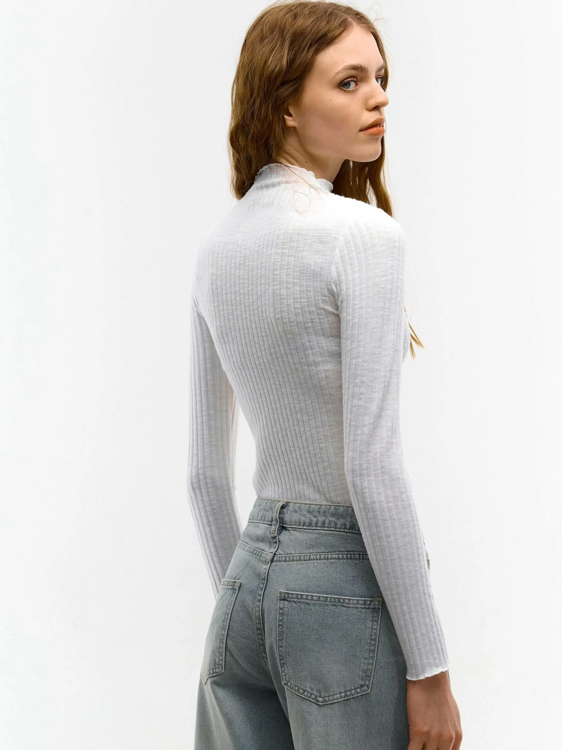 Kolor: białyKrój: regularTyp: golfRekaw: długi rękawDługość: krótkiPattern style: pojedynczy kolor, żebrowanyDe…
