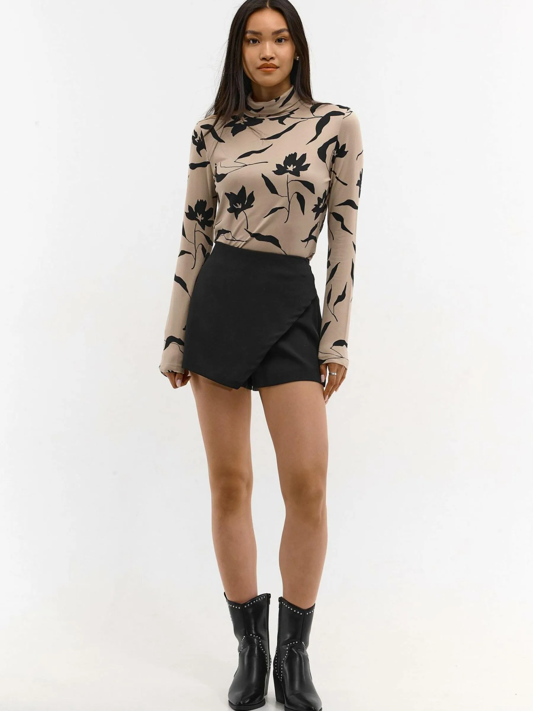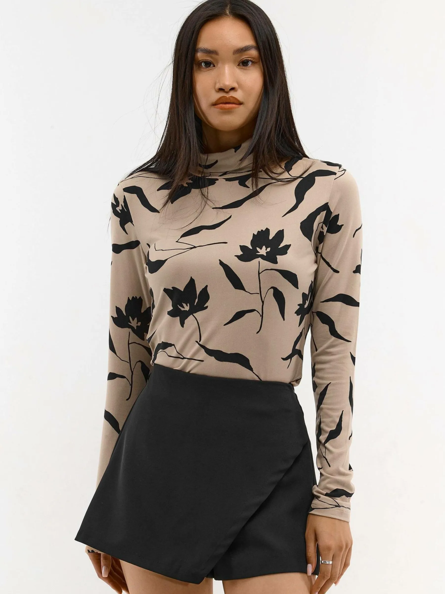 Kolor: beżowy, brązowyKrój: regularTyp: golfRekaw: długi rękawDługość: krótkiPattern style: z nadrukiem, kwiato…