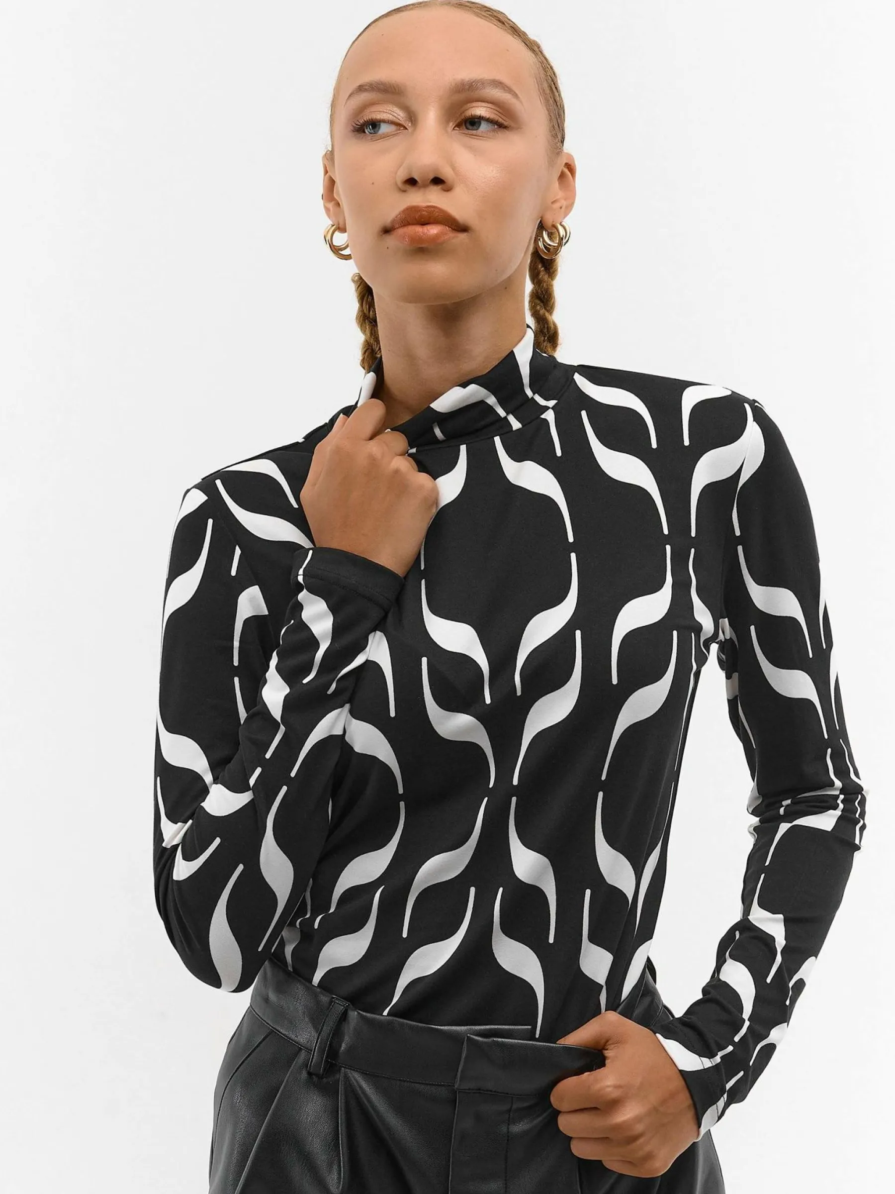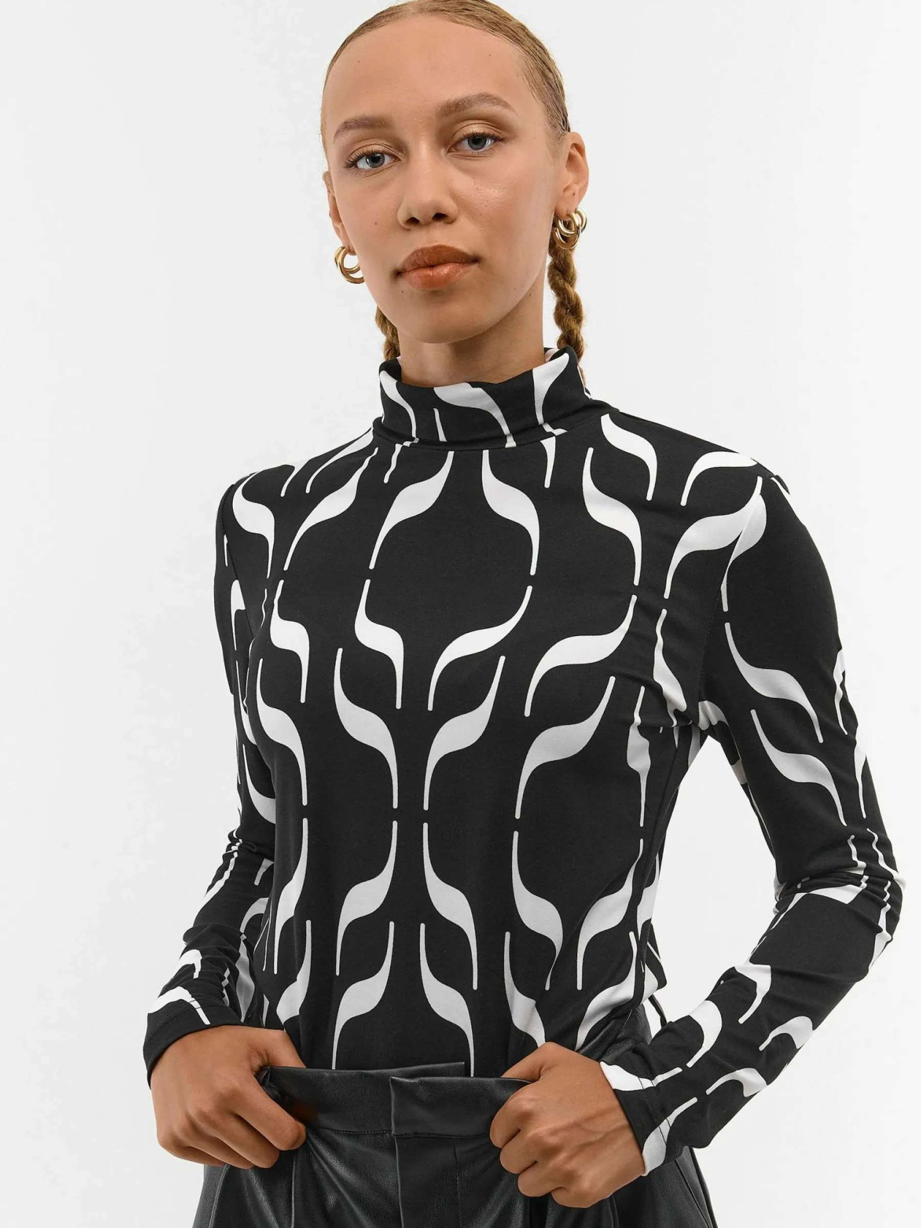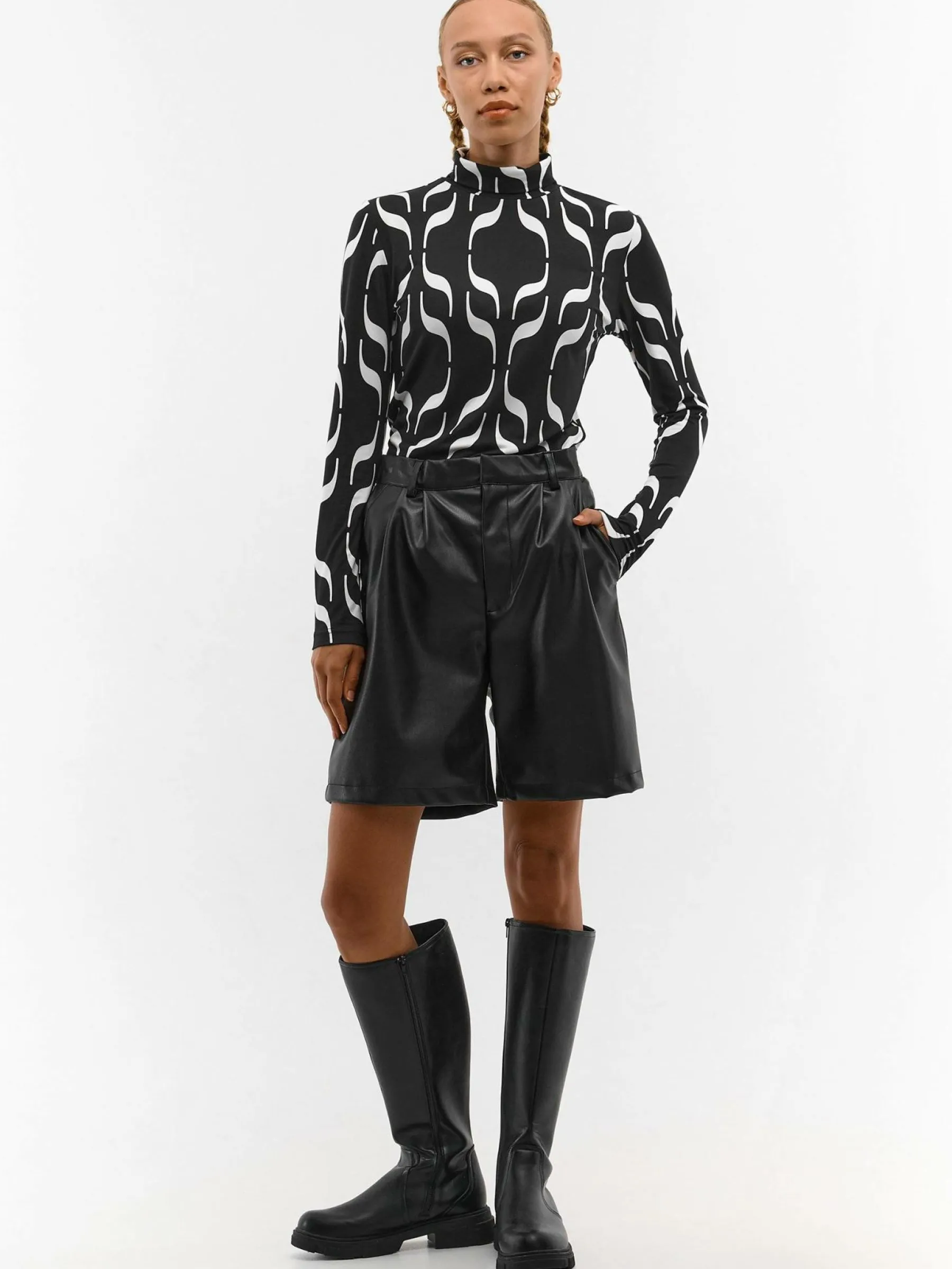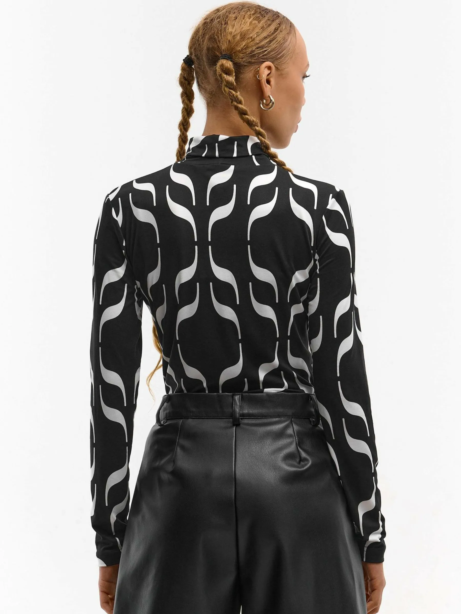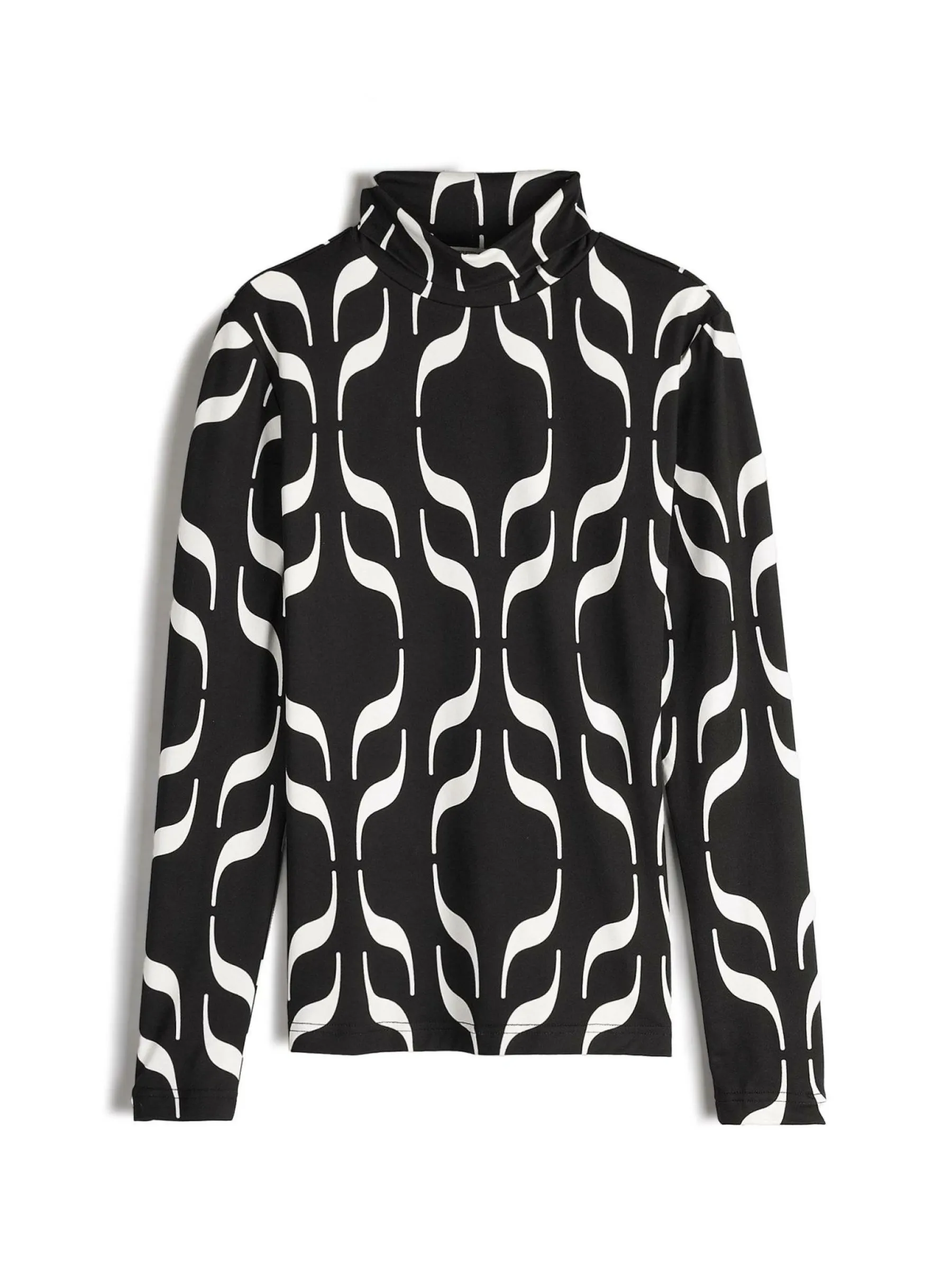 Kolor: czarnyKrój: regularTyp: golfRekaw: długi rękawDługość: krótkiPattern style: z nadrukiem, geometrycznyDetal…