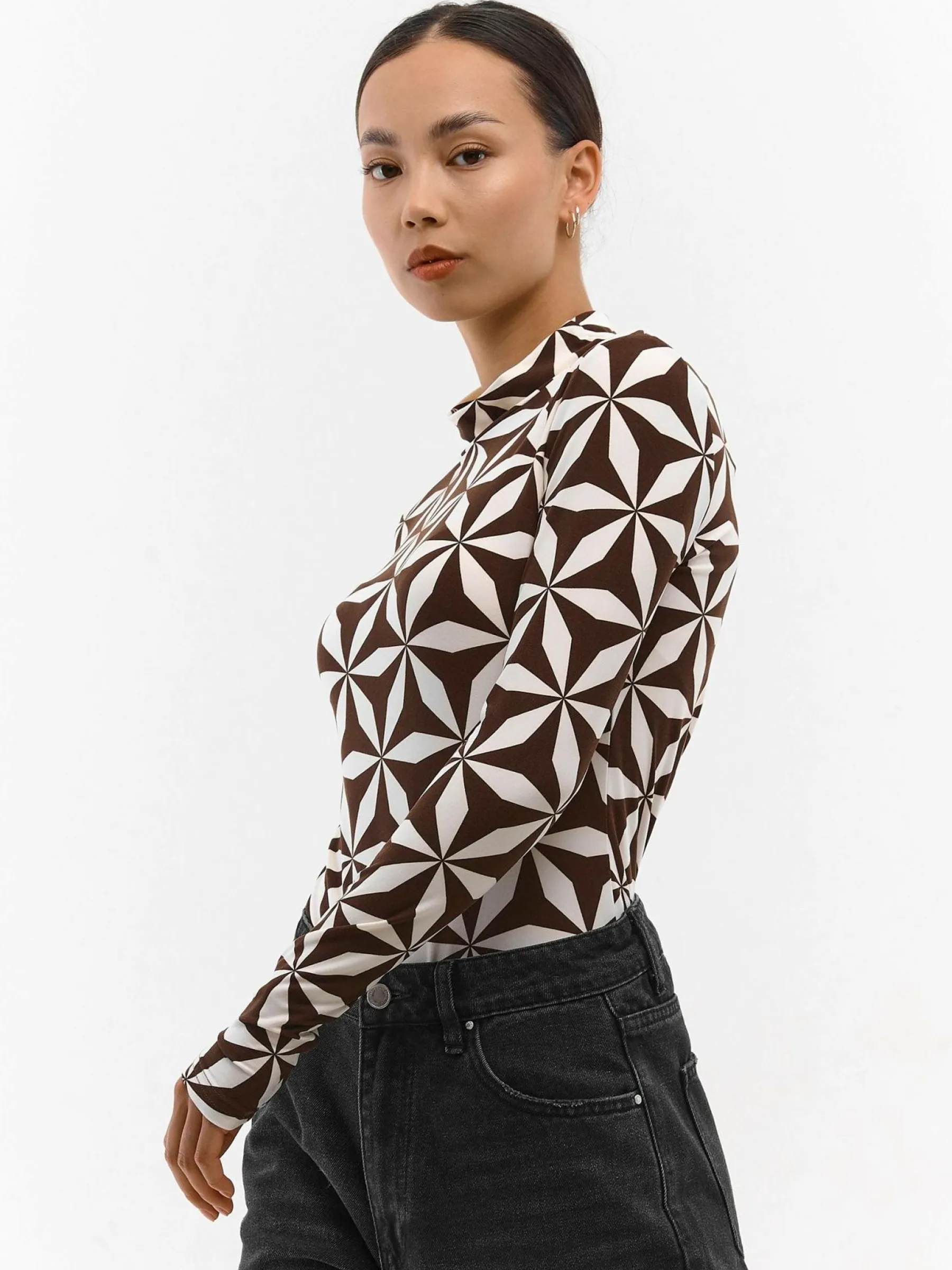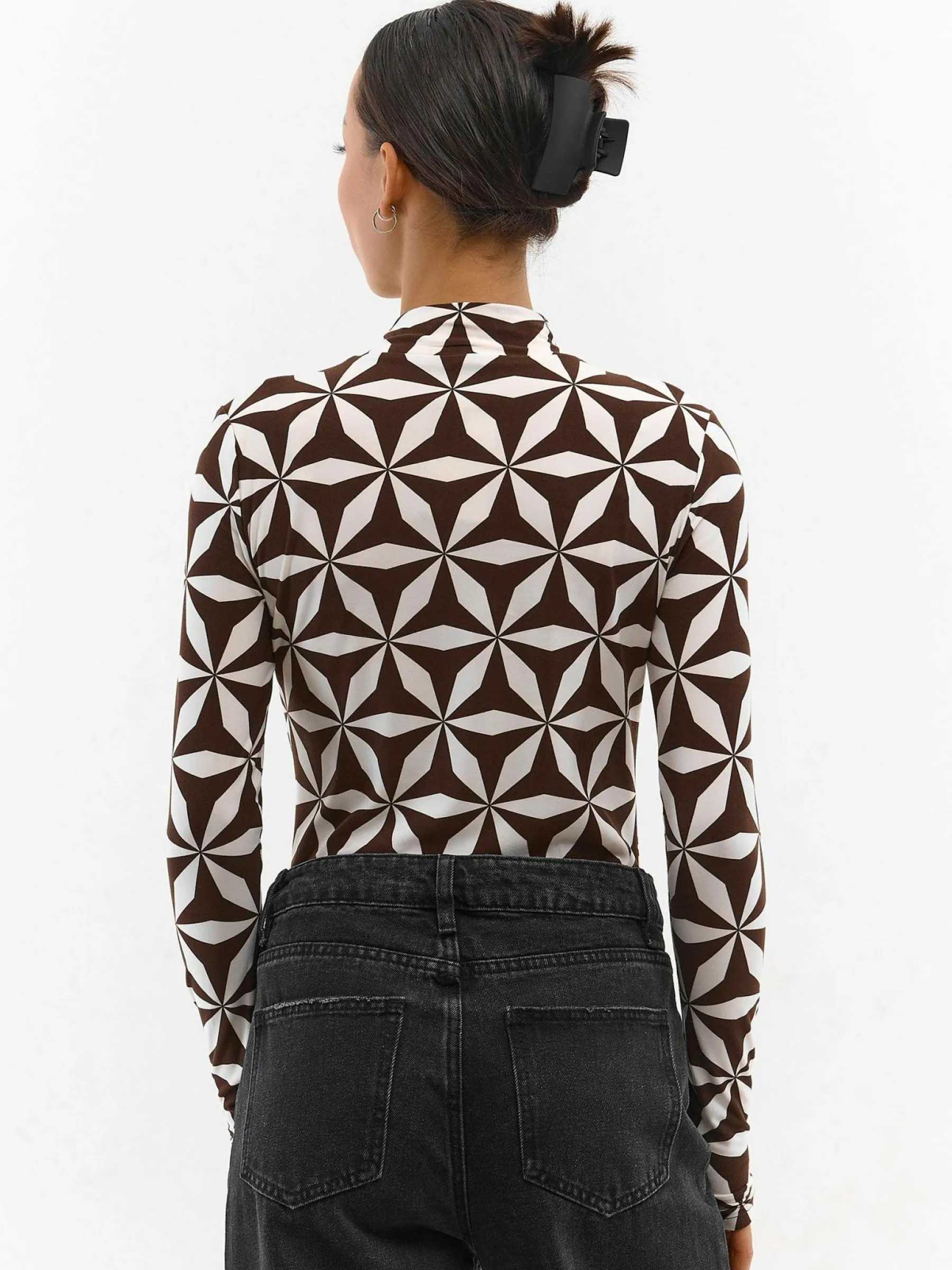 Kolor: białyKrój: regularTyp: golfRekaw: długi rękawDługość: krótkiPattern style: z nadrukiem, geometrycznyDetal…