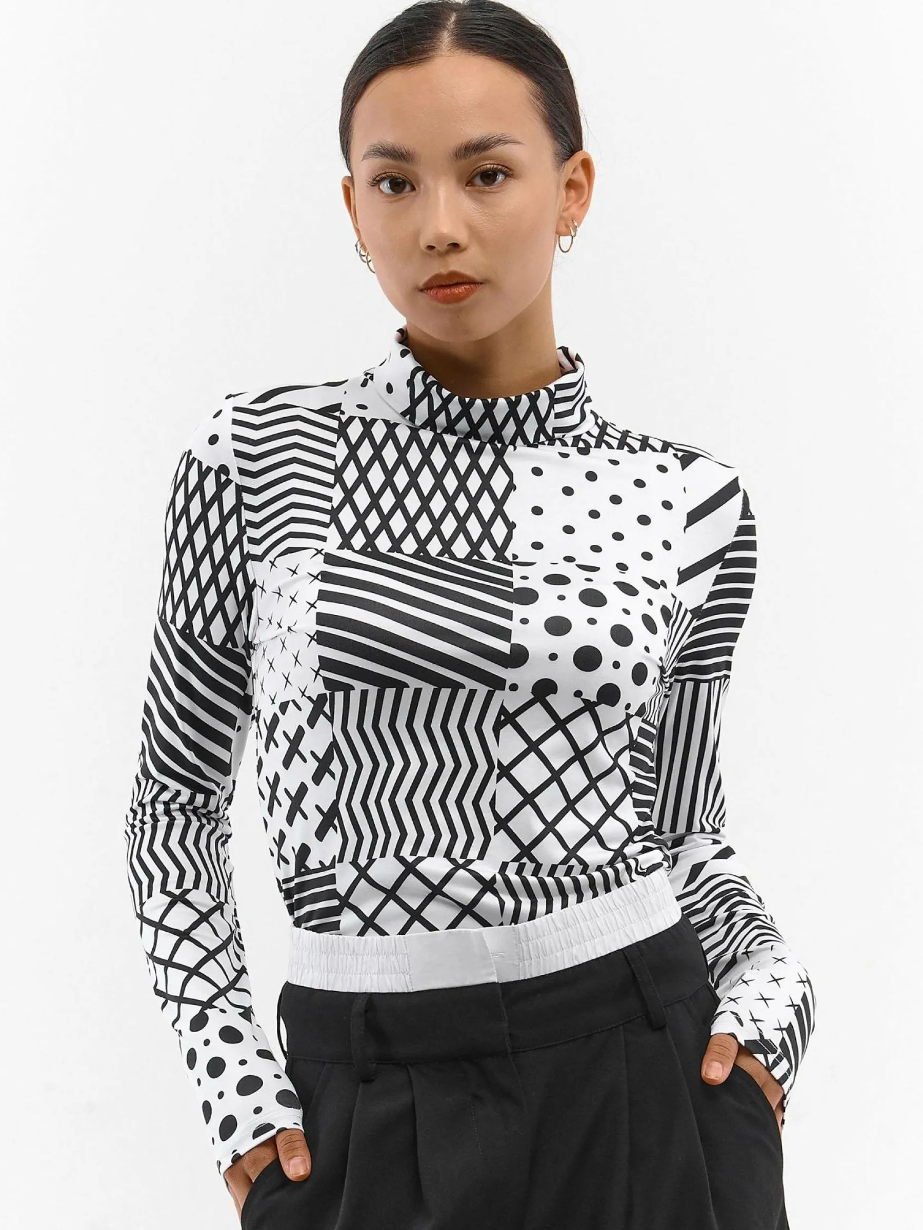 Kolor: białyKrój: regularTyp: golfRekaw: długi rękawDługość: krótkiPattern style: z nadrukiemDetal: nad głowąM…