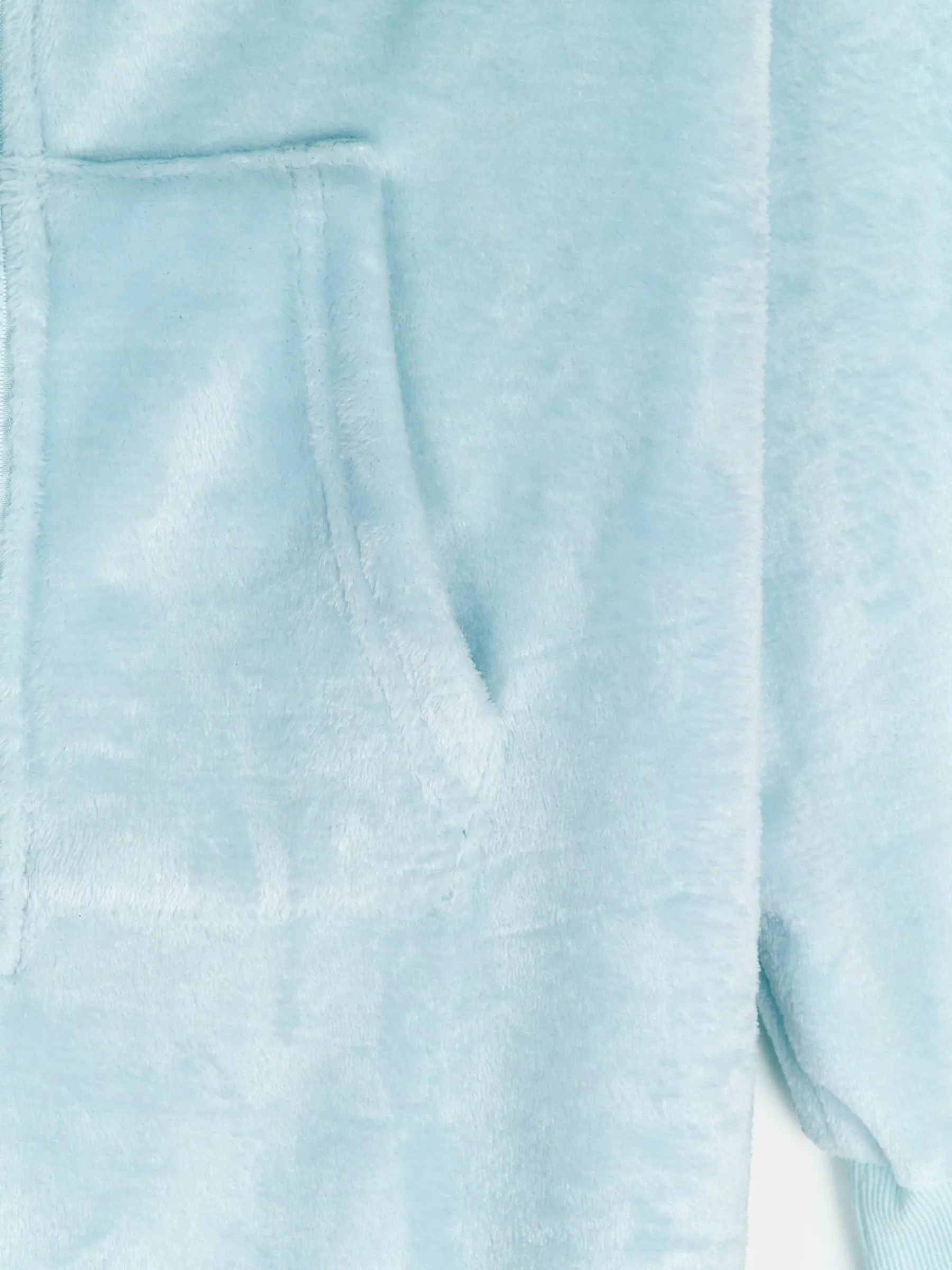 Kolor: szary, niebieskiKrój: podstawowyTyp: kombinezonDługość: dlugiePattern style: pojedynczy kolorMateriał: welur…