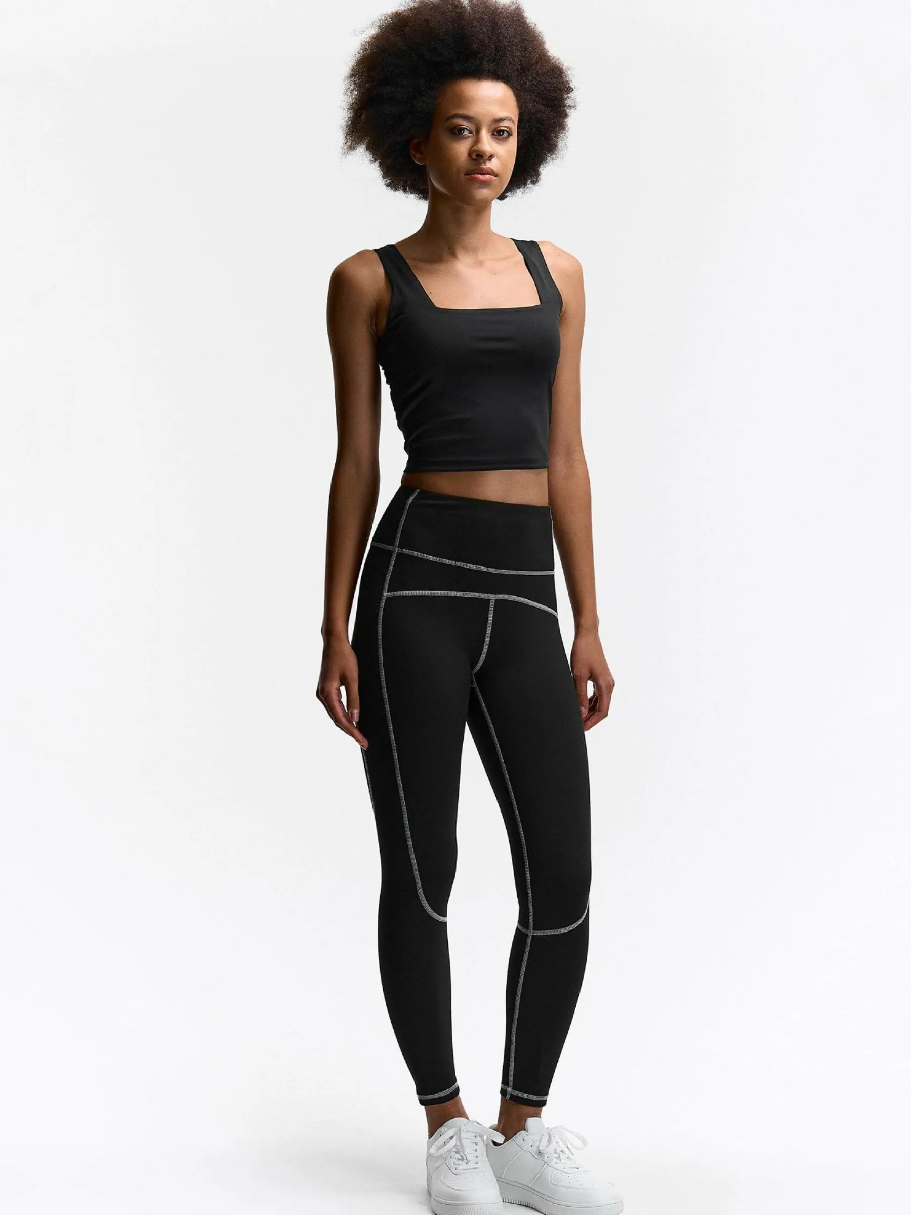 Kolor: czarnyKrój: z wysokim stanem, slimTyp: legginsyDługość: dlugiePattern style: pojedynczy kolorDetal: z elastyc…